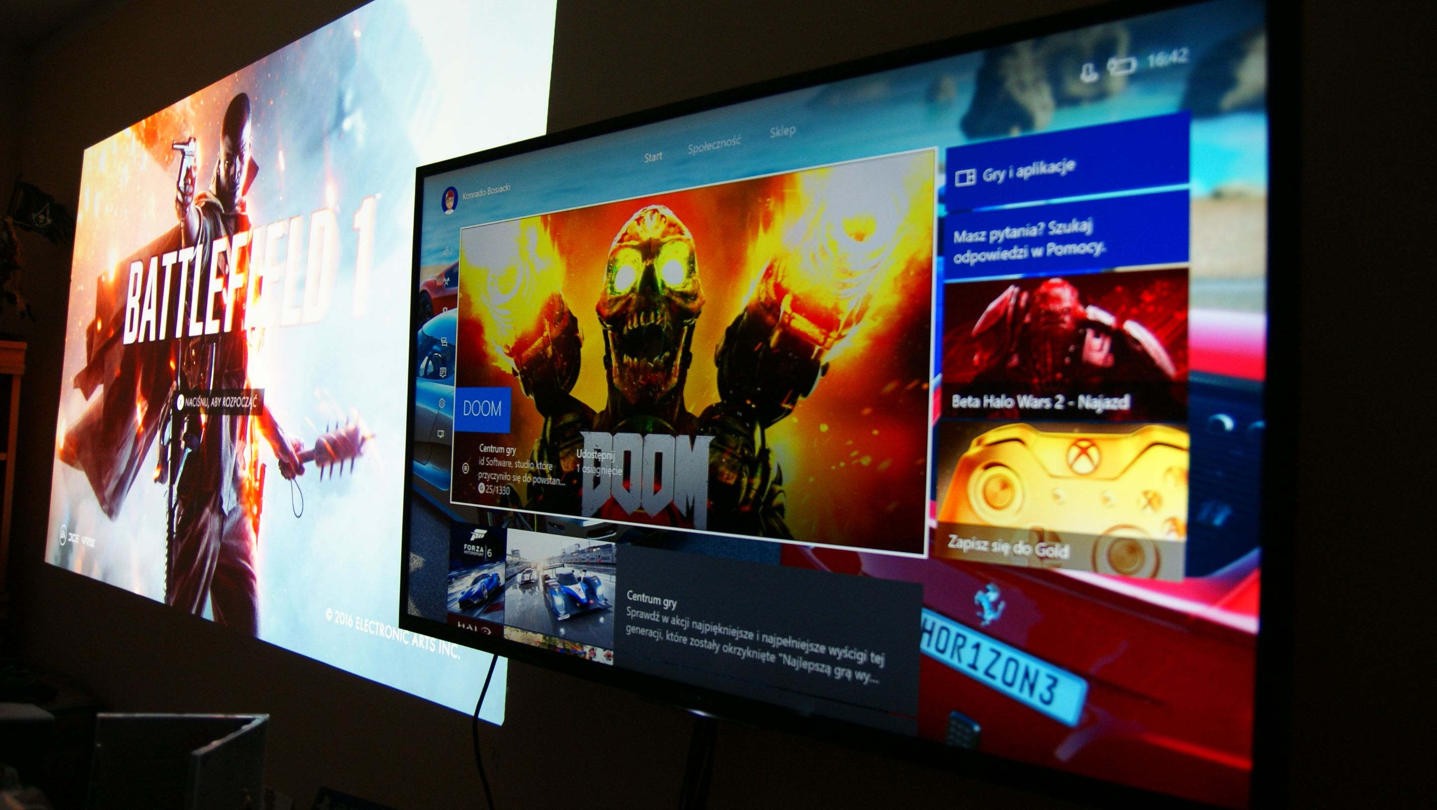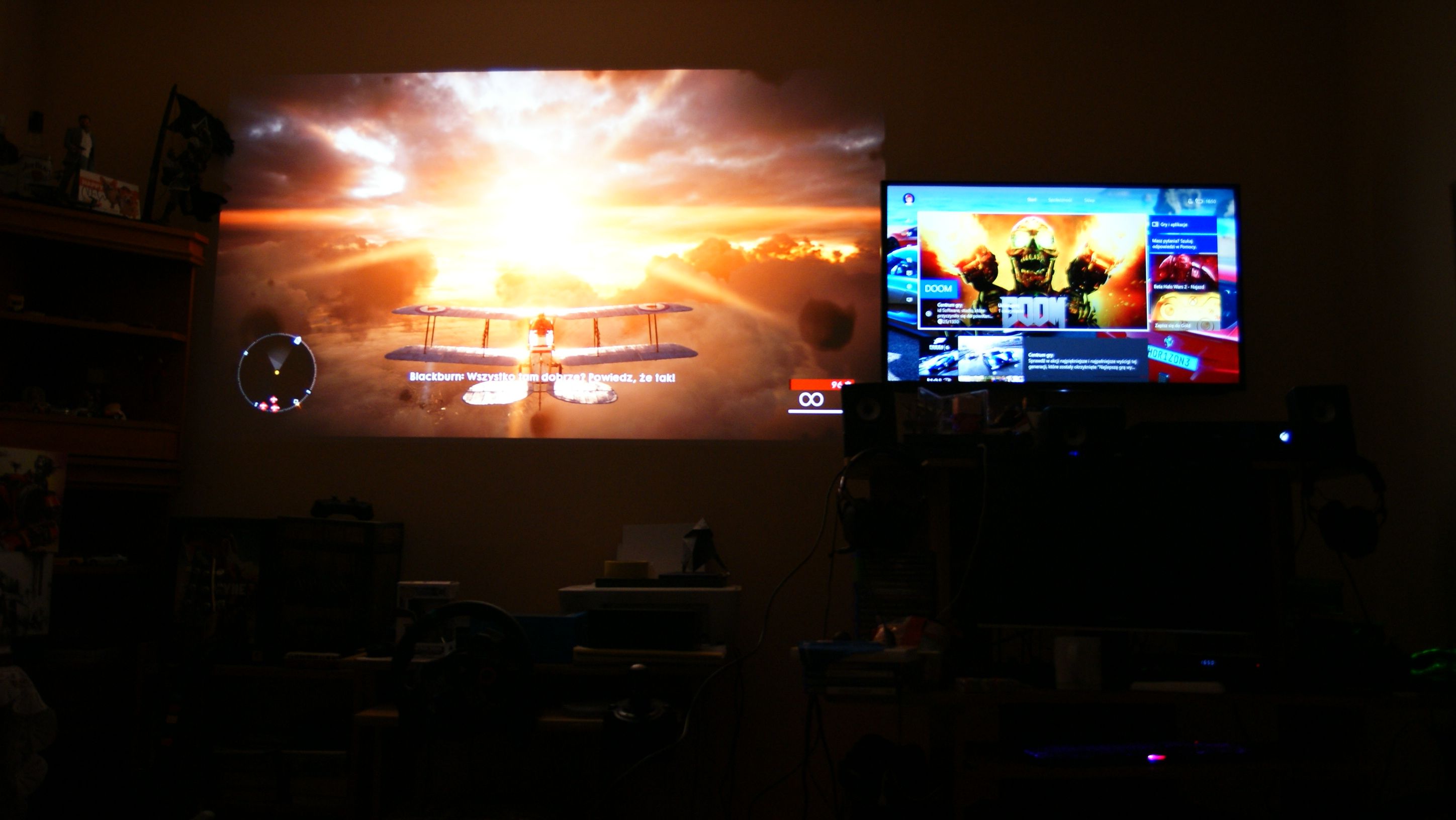 Właśnie rozgrywka. Bardzo się balem, że mimo trybu gier projektor może i tak cierpieć na wysoki input lag. Pierwsze, co odpaliłem na PS4 to mój ulubiony Overwatch. Najpierw mecz treningowy z botami, potem normalną już rywalizacje sieciową. Nie ma absolutnie żadnych opóźnień, gra się komfortowo, rozgrywka jest płynna i można śmiało grać w dynamiczne FPSy. W sieci znalazłem informacje, że ten projektor ma input lag lekko powyżej 30 ms – to fantastyczny wynik, którym nie mogą dzisiaj pochwalić się nawet drogie telewizory. Następnie odpaliłem Battlefield 1 i Diablo 3, także grało się przyjemnie, szczególnie w BF1, który oferuje fantastyczną oprawę graficzną. Na Xboxie One testowałem Forza Horizon 3. W tych dynamicznych wyścigach także nie dostrzegłem żadnych problemów z płynnością rozgrywki. Przemierzenie dróg Australii na stu calowym ekranie było samą przyjemnością. Nie zauważyłem żadnego smużenia, odwzorowanie ruchu na wyświetlanym ekranie jest bardzo dobre.