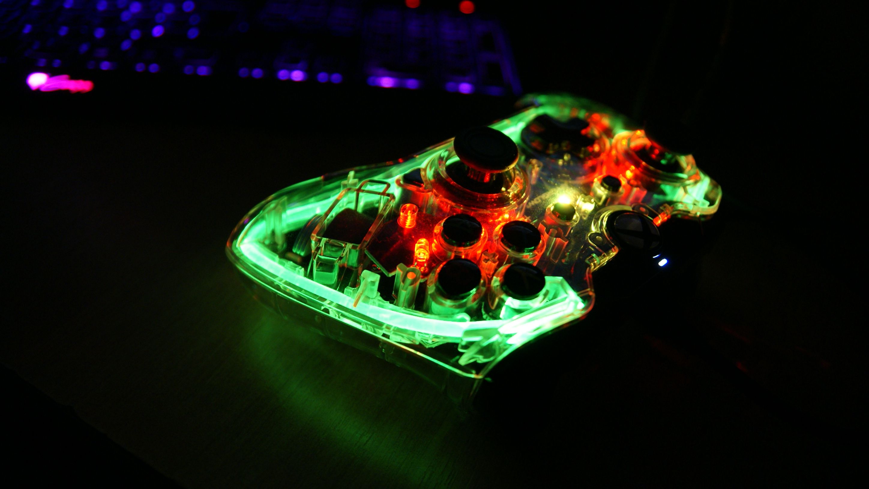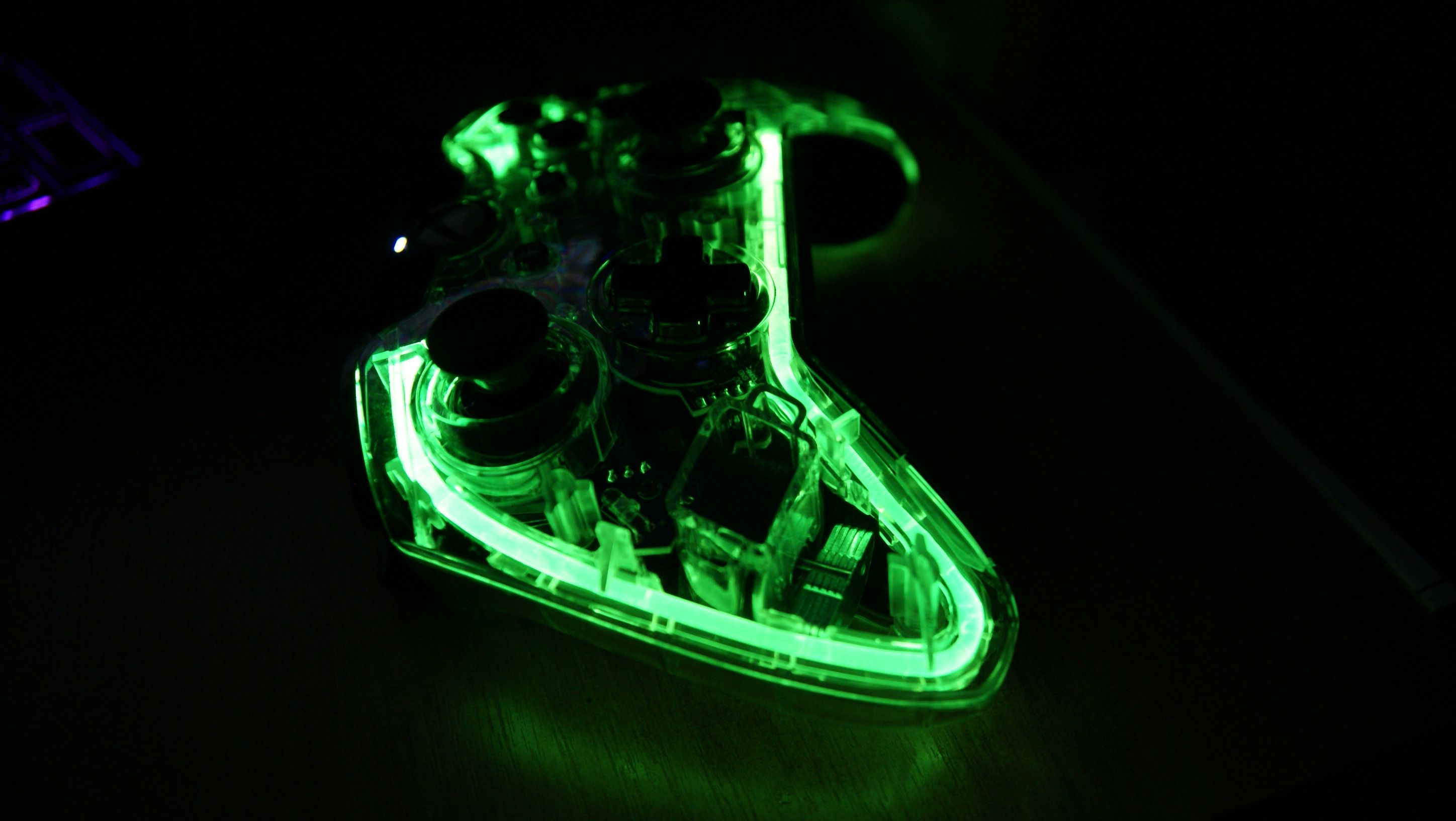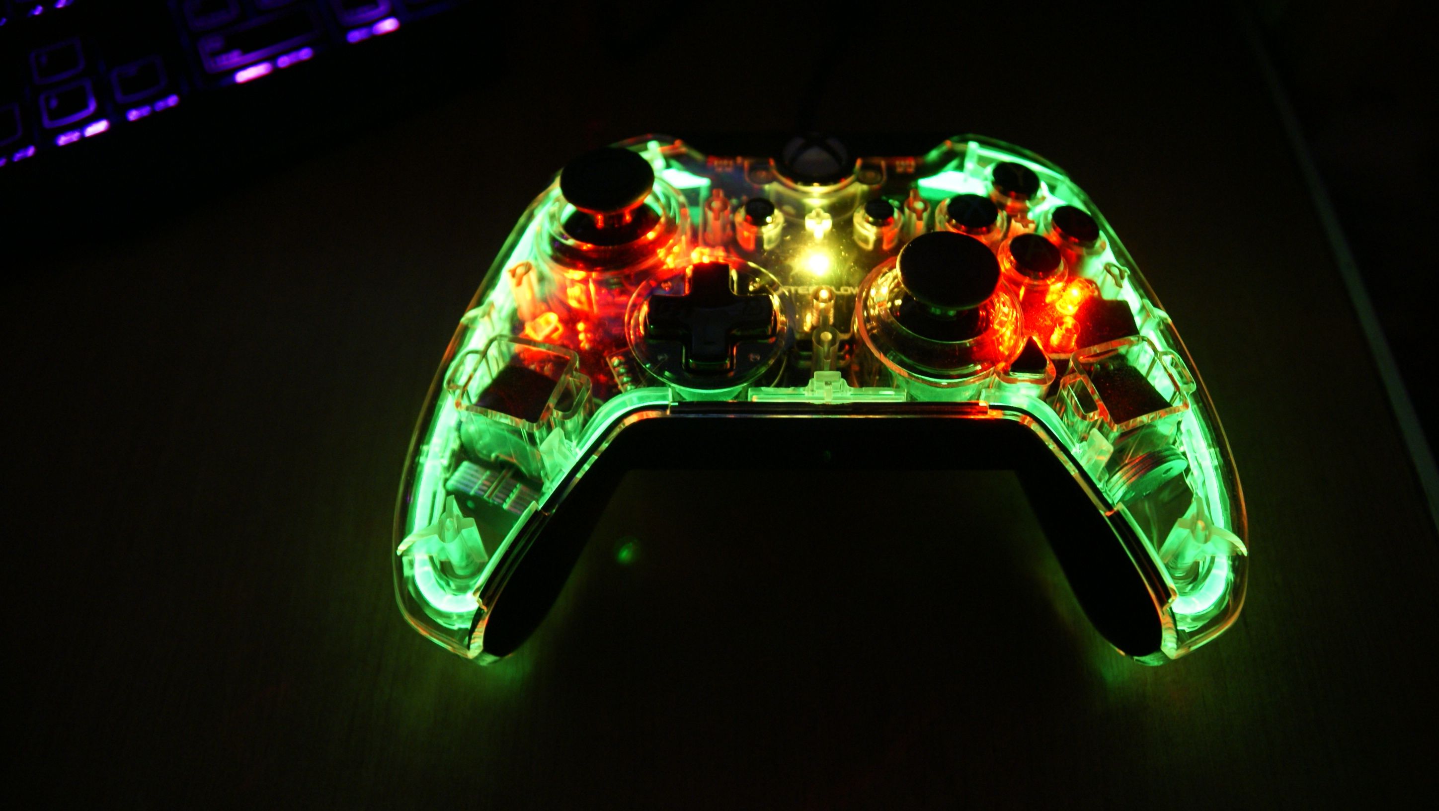 Po podłączeniu do konsoli kontroler jest podświetlany domyślnie na zielono, co jest zrozumiałe dla barw Xboksa One. Dodatkowo na na płycie znamionowej zostały umieszczone 4 diody, które świecą czerwonym światłem, adaptującym się do mocy wibracji. Kontroler jest wyposażony w neon świetlny z system Prismatic LED, który obsługuje kolory z palety barw RGB. Ustawienie dowolnej barwy podświetlania pada Afterglow jest banalnie proste. Pod spodem znajduje się przycisk, który aktywuje mechanizm podświetlania. Gdy zapali się mała niebieska dioda, to prawym analogiem ustawiamy sobie kolor podświetlania, a lewym regulujemy jego intensywność. Gdy ustawimy ulubiony kolor, to naciskamy jeszcze raz przycisk, aby zapisać ustawienia. W ten sam sposób możemy także szybko całkowicie wyłączyć podświetlanie.