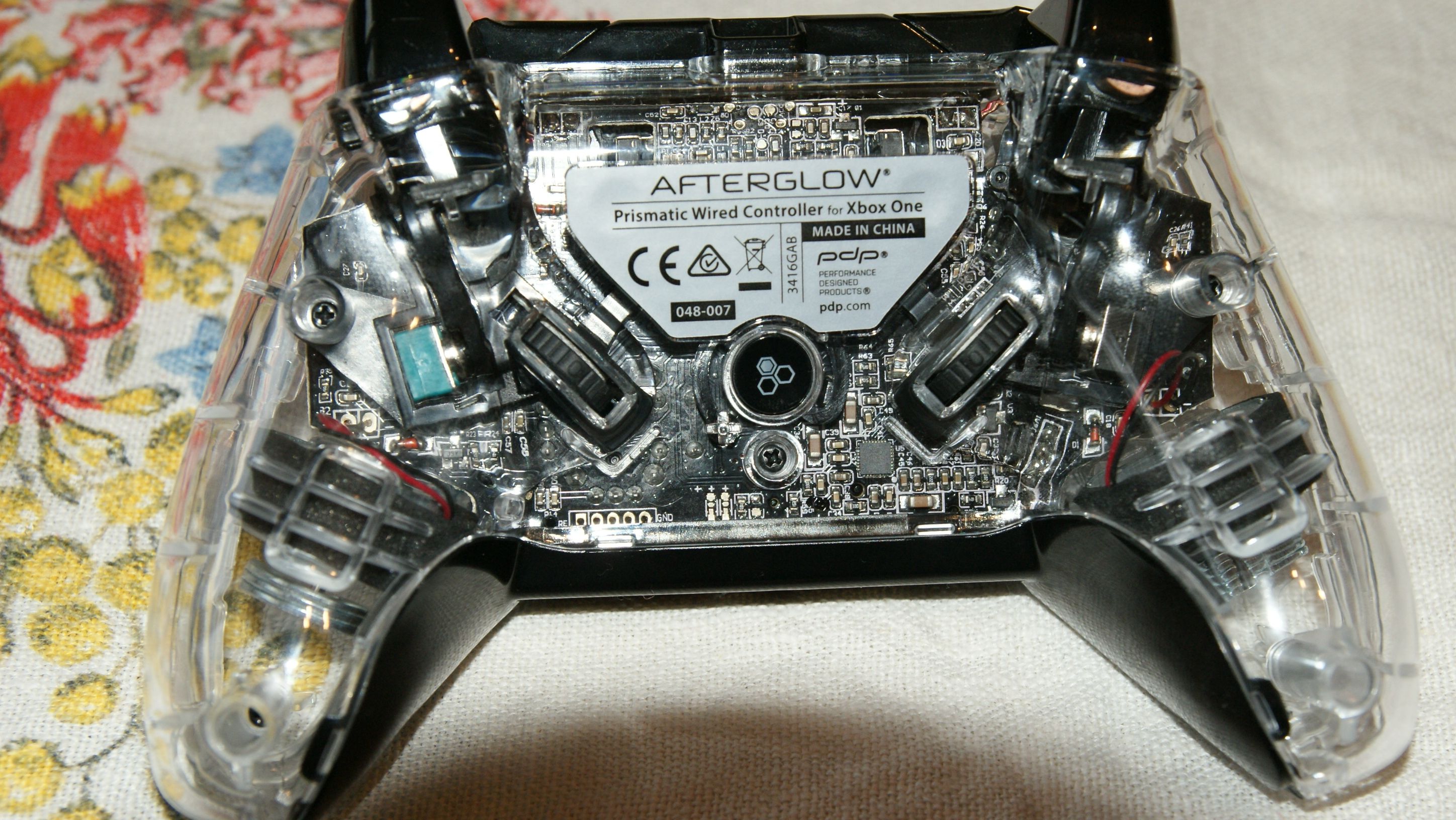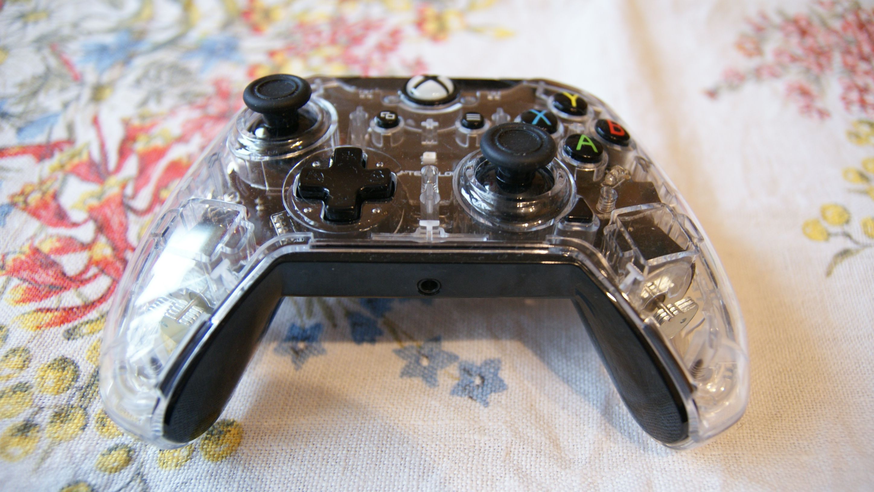 Najciekawsze, ale niekoniecznie najlepsze zostawiłem na koniec. PDP Afterglow nie jest niczym nowym w ofercie PDP. Już wcześniej amerykańska firma produkowała przezroczyste i podświetlane kontrolery do PS3 i Xbox 360. Afterglow do Xboxa One jest uroczy i skradnie niejedno serce. Niestety ten urok nie idzie w parze z funkcjonalnością. Przezroczysta obudowa kontrolera jest wypolerowana, dzięki czemu widzimy wszystkie mechanizmy w kontrolerze. Niestety wysoki połysk mocno odbija się na chwycie pada. Wystarczy pograć kilka minut, aby padł ślizgał nam się w dłoniach. Osobiście traktowałbym ten kontroler jako gadżet, ozdobę pokoju gracza i pokazówkę dla znajomych, którzy przyjdą do nas okolicznościowo pograć. Pierwsze wrażenie zrobi na pewno niesamowite.