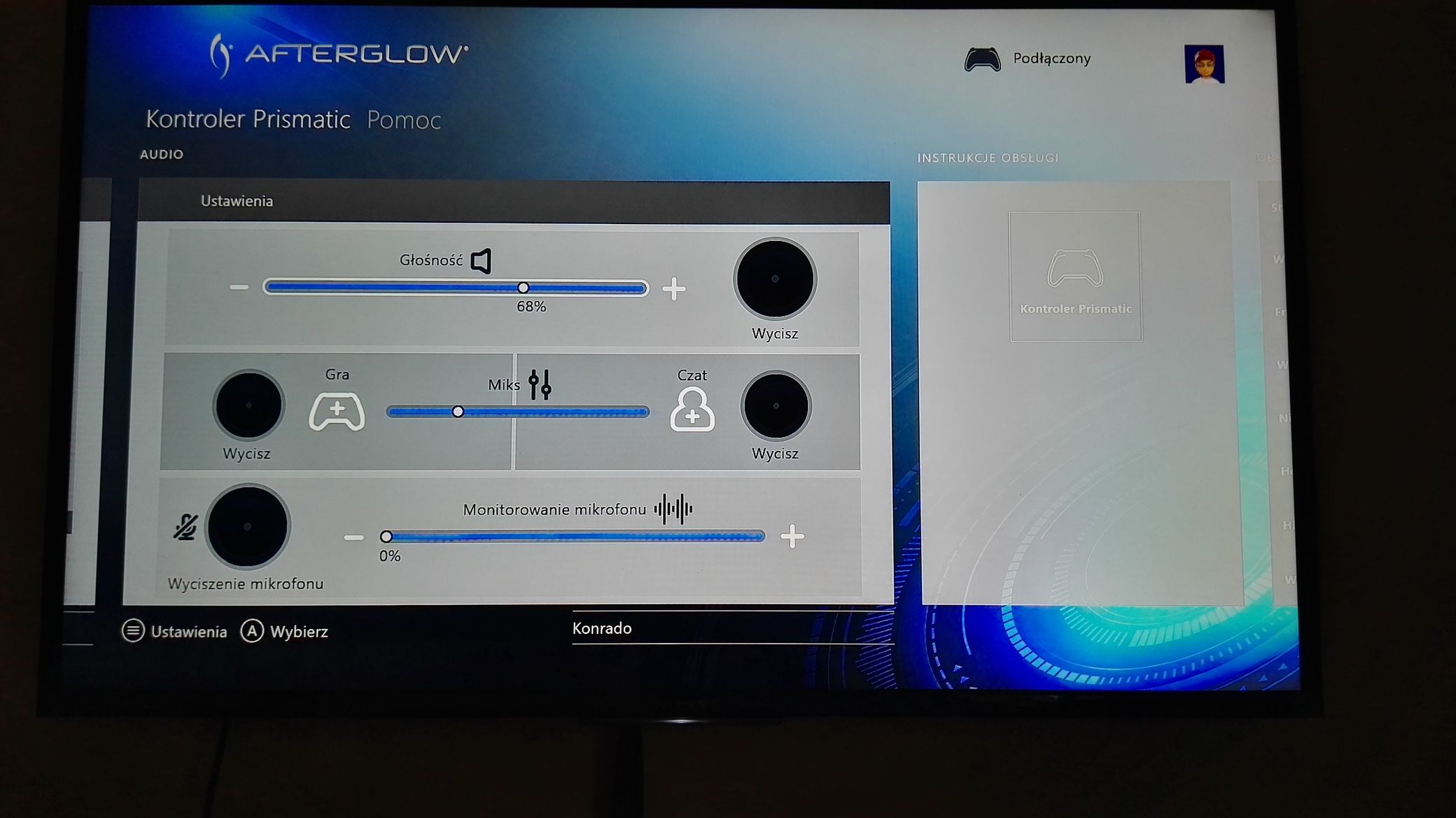 - Lewo/prawo – reguluje dźwięki z gry i chatu