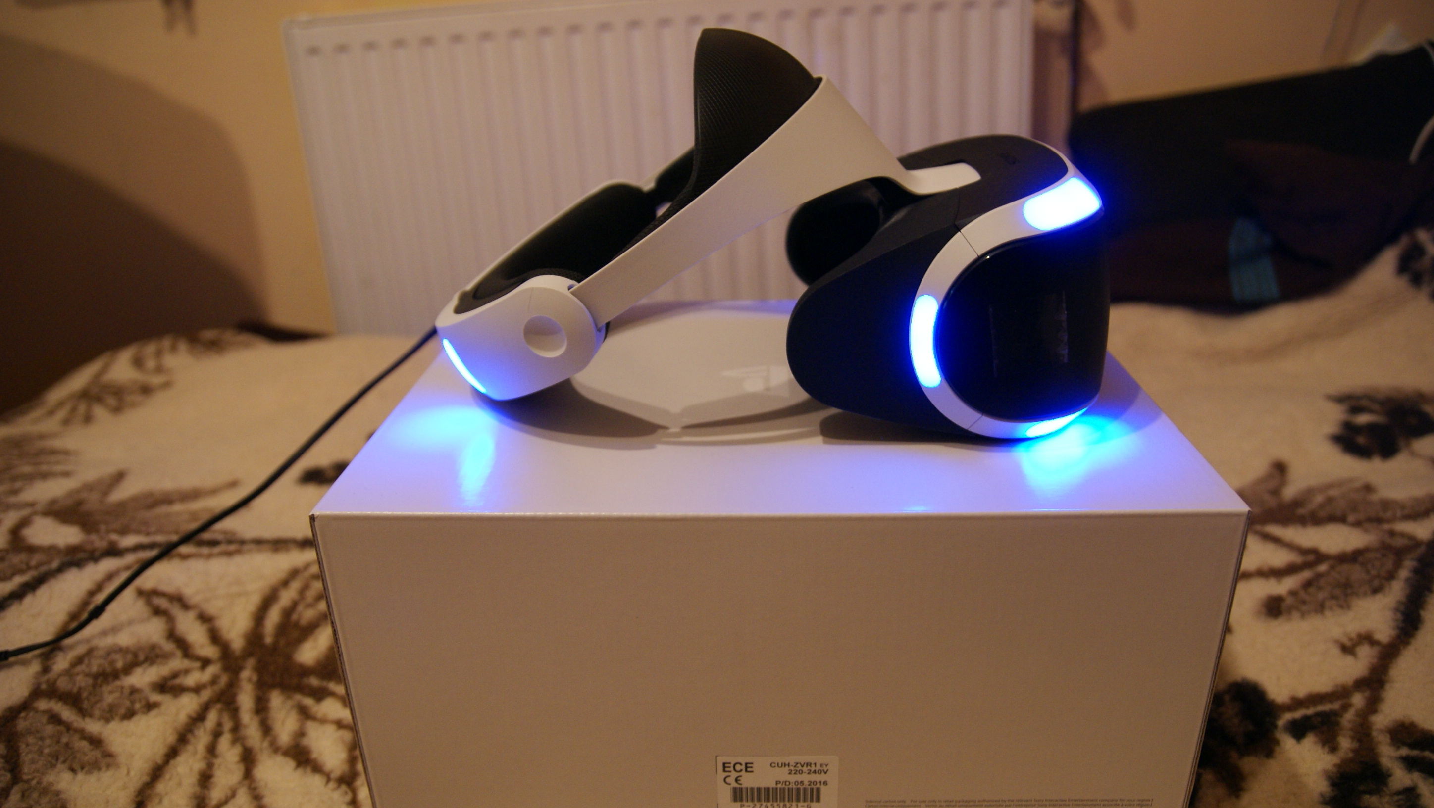 Podłączenie jest banalne i nawet gdybyśmy nie chcieli korzystać z instrukcji, to odpowiednio ponumerowane i oznaczone kable i tak dopasujemy w stosowne miejsca. Montaż zaczynamy od rozpakowania jednostki obliczeniowej – jest to małe czarne pudełko z dodatkowym modułem procesora. Dodatkowa skrzyneczka jest wyposażona w gniazdo zasilania, port HDMI, do którego podłączamy kabel od TV oraz gniazdo, do którego podpinamy kabel od gogli PSVR. Dodatkową jednostkę łączymy z konsolą PS4 za pomocą kabla USB. Na koniec pozostaje jeszcze podłączenie kamerki PlayStation do konsoli. Google uruchamiamy za pomocą pilota, który został umieszczony na kablu od PSVR. Na pilocie mamy cztery przyciski: ten, który umożliwia włączenie i wyłączenie gogli, przycisk od mikrofonu oraz regulacji głośności słuchawek. Z buku mamy gniazdo jack 3.5 mm przeznaczone na słuchawki. Tu warto wspomnieć o jednej z największych wad PSVR. Niestety nie podłączymy do nich większości swoich ulubionych słuchawek, w tym bezprzewodowych „Goldów”. Gogle PSVR są duże, a większość nie ma dużych pałąków, na których są umieszczone nauszniki więc z góry jesteśmy skazani na słuchawki douszne. Jednak te, które Sony dołącza do zestawu grają naprawdę bardzo dobrze. Producent zaleca, aby w pomieszczeniu, w którym będziemy bawić się z PSVR było sporo wolnej przestrzeni. Najlepiej, aby nie otaczało nas nic w promieniu dwóch metrów. Pierwsze uruchomienie PSVR wiąże się z prostym procesem konfiguracji, który polega tylko na tym, aby kamerka zobaczyła kontroler i gogle. Po udanej konfiguracji zobaczymy menu naszej konsoli w PSVR. Obraz z konsoli będzie także nadal wyświetlany na TV.