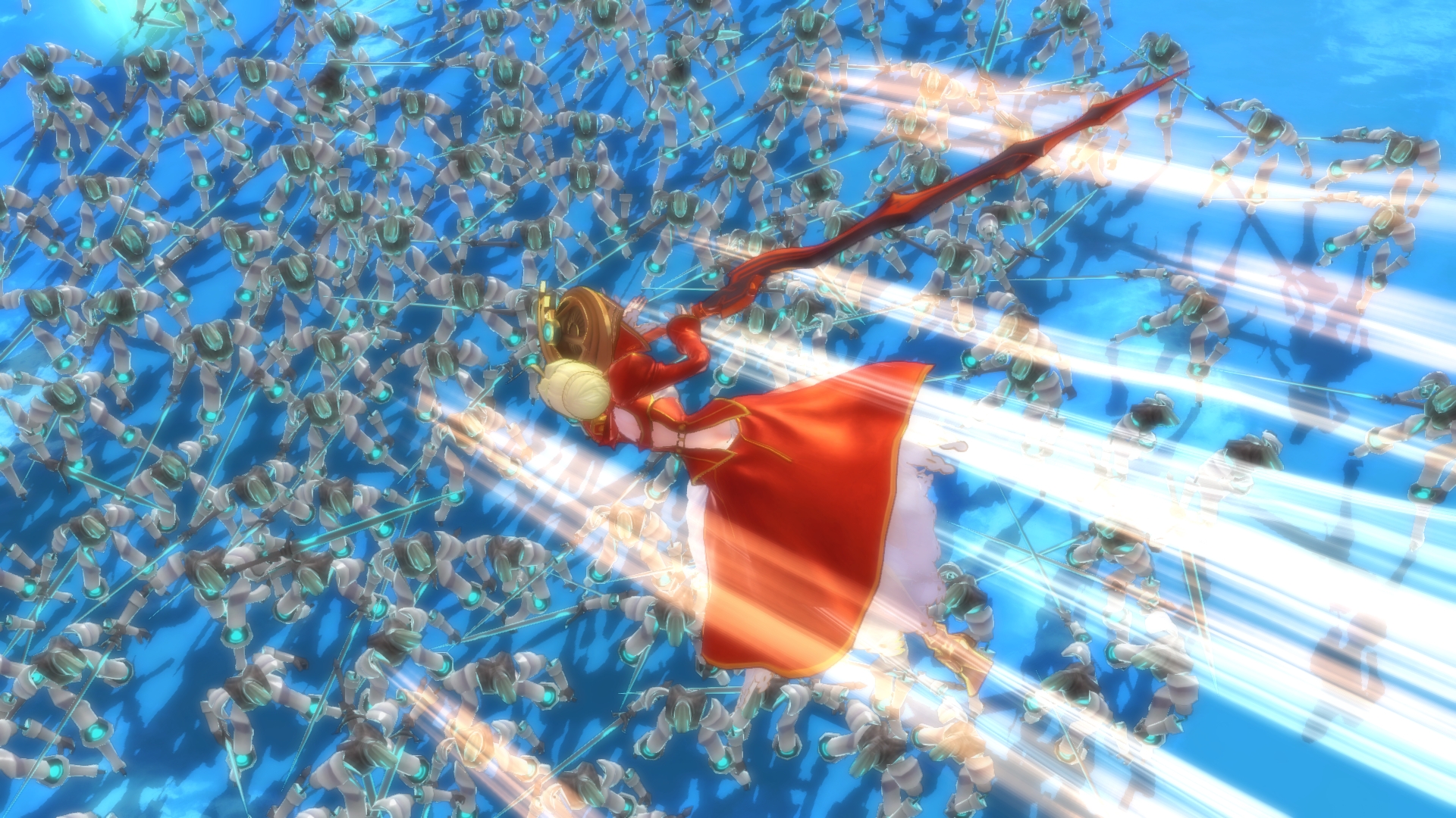 Odpaliłam i od razu dałam się zauroczyć. Z menu głównego mamy do wyboru kilka trybów, jednak należy zacząć od głównego wątku fabularnego zanim odblokujemy cokolwiek innego. Historia dzieli się na 3 części, gdzie sterujemy różnymi podwładnym i mamy możliwość spojrzeć na wydarzenia z innej perspektywy. Ale… o co tutaj w ogóle chodzi? My, jako gracz, wcielamy się w bohatera lub bohaterkę, którzy mają moc kierowania podwładnymi – silnymi wojownikami, wzorowanymi na przeróżnych tekstach kultury. Wojownicy występują w 8 różnych klasach, a każda z nich charakteryzuje się innym stylem walki. W ten sposób czasem przyjdzie nam toczyć pojedynki władając mieczem, czasem ogromną lancą, a i za łuk też złapiemy. W przeciwieństwie do innych przedstawicieli gatunku tutaj musimy się liczyć z faktem, że broń nie podlega zmianie. Jest integralną częścią postaci i jeśli chcemy się zapoznać z jej historią, to musimy się nauczyć nią grać. W ten sposób przyjdzie nam poświęcić dobre 20 godzin staczając boje o władzę nad Moon Cell Automata – komputerem, który może spełnić marzenie.