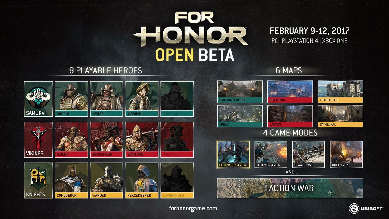 Można już pobierać otwartą betę nadchodzącej produkcji studia Ubisoft. Posiadacze konsol PlayStation 4 i Xbox One, którzy chcą sprawdzić For Honor powinni przygotować na dyskach co najmniej 27 GB wolnego miejsca.