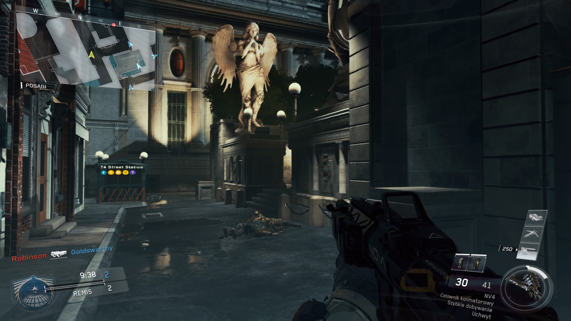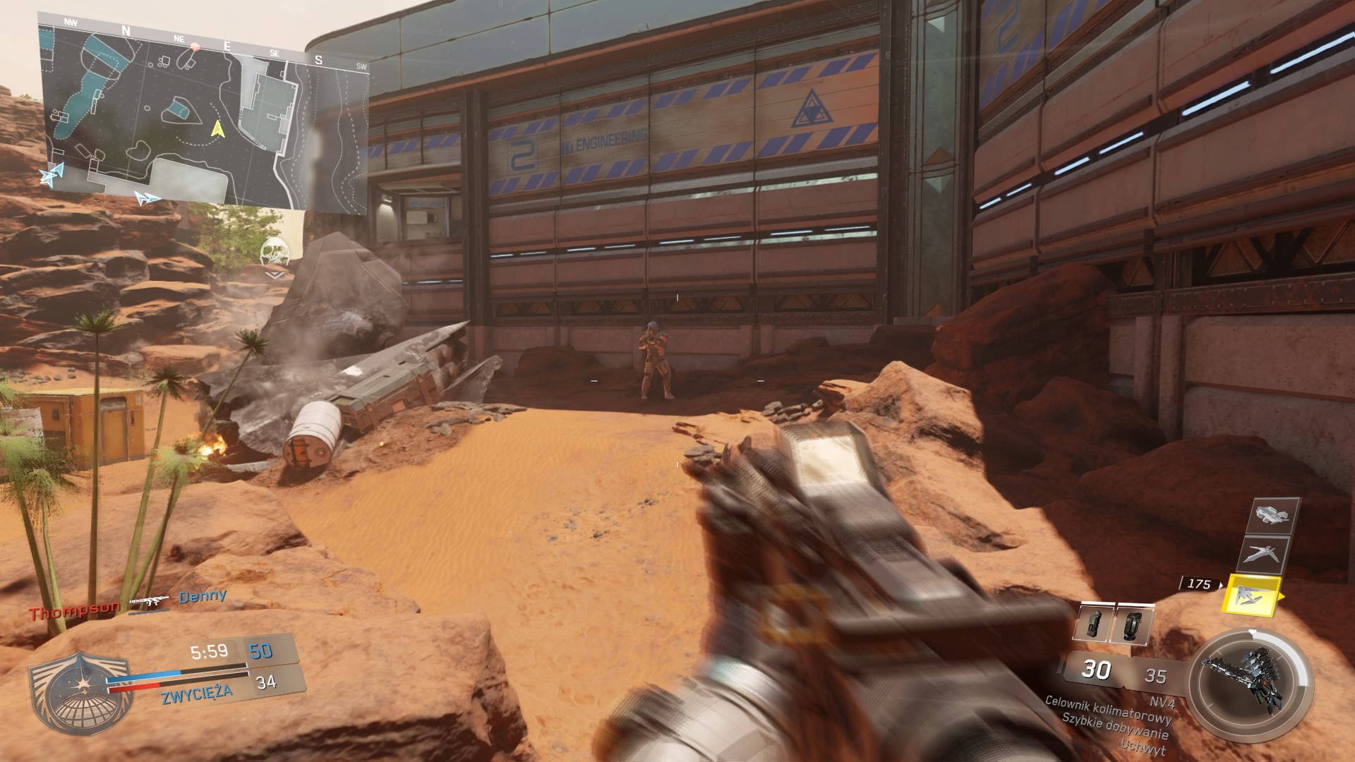 Czyli mapa zaczerpnięta z Modern Warfare 2, z tym wyjątkiem, że Infinity Ward przenieśli ją na Marsa. Zatem na pierwszy rzut oka, układ elementów wydaje się być znajomy dla każdego, kto spędził trochę czasu w trybie multiplayer MF2. Mamy otwartą przestrzeń zdominowaną przez rozbity pojazd na jej środku. Wokół są pojedyncze budynki, a pola pszenicy zostały zastąpione hydroponicznym obszarem upraw. To, co rzuca się w oczy podczas rozgrywki, to ograniczone możliwości biegania po ścianach ze względu na dość duże przestrzenie i sporo opcji snajperskich. Niestety czuć tutaj wyraźnie, że mapa pochodzi z wcześniejszej odsłony gry, a nowy design, to za mało, aby dać świeżość i poczucie nowej generacji.
