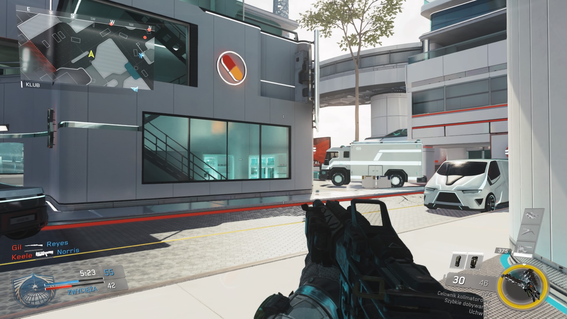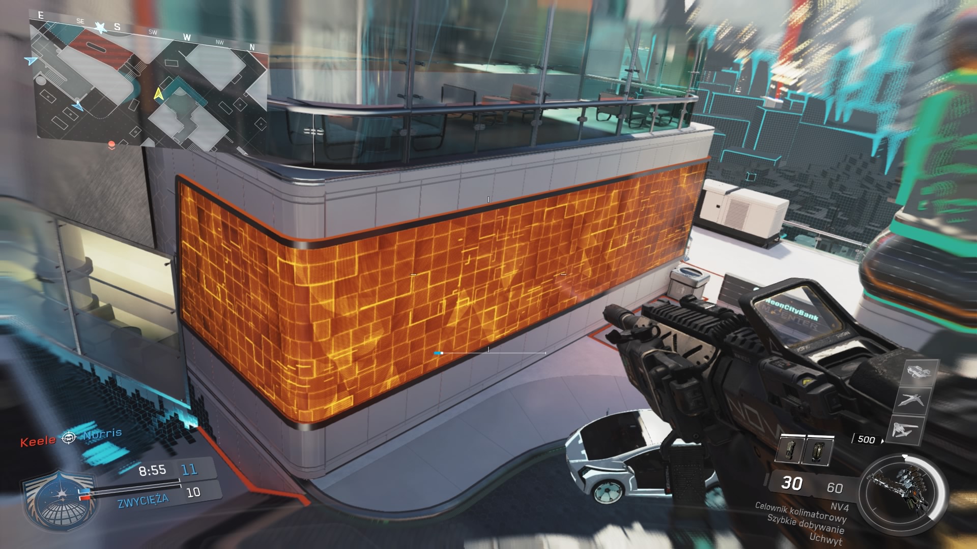 Neon, to najmniejsza mapa DLC, ale za to przepełniona całą masą futurystycznych gadżetów. Są też efekty specjalne, gdzie zastrzeleni gracze rozpływają się w cyfrowych blokach. Nie zabrakło również ciekawych akcentów wizualnych. Możemy dla przykładu strzelać w samochody, które rozpadają się w taki sam sposób jak i gracze, ale później ponownie się składają. Jest tutaj sporo zakamarków, czyli idealne środowisko dla kamperów. Mapa stylizowana jest na nowoczesne miasteczko z teatrem, hotelem, szpitalem i innymi miejscówkami, takimi jak klub nocny z urokliwą muzyczką, gdzie rozgrywa się sporo akcji.
