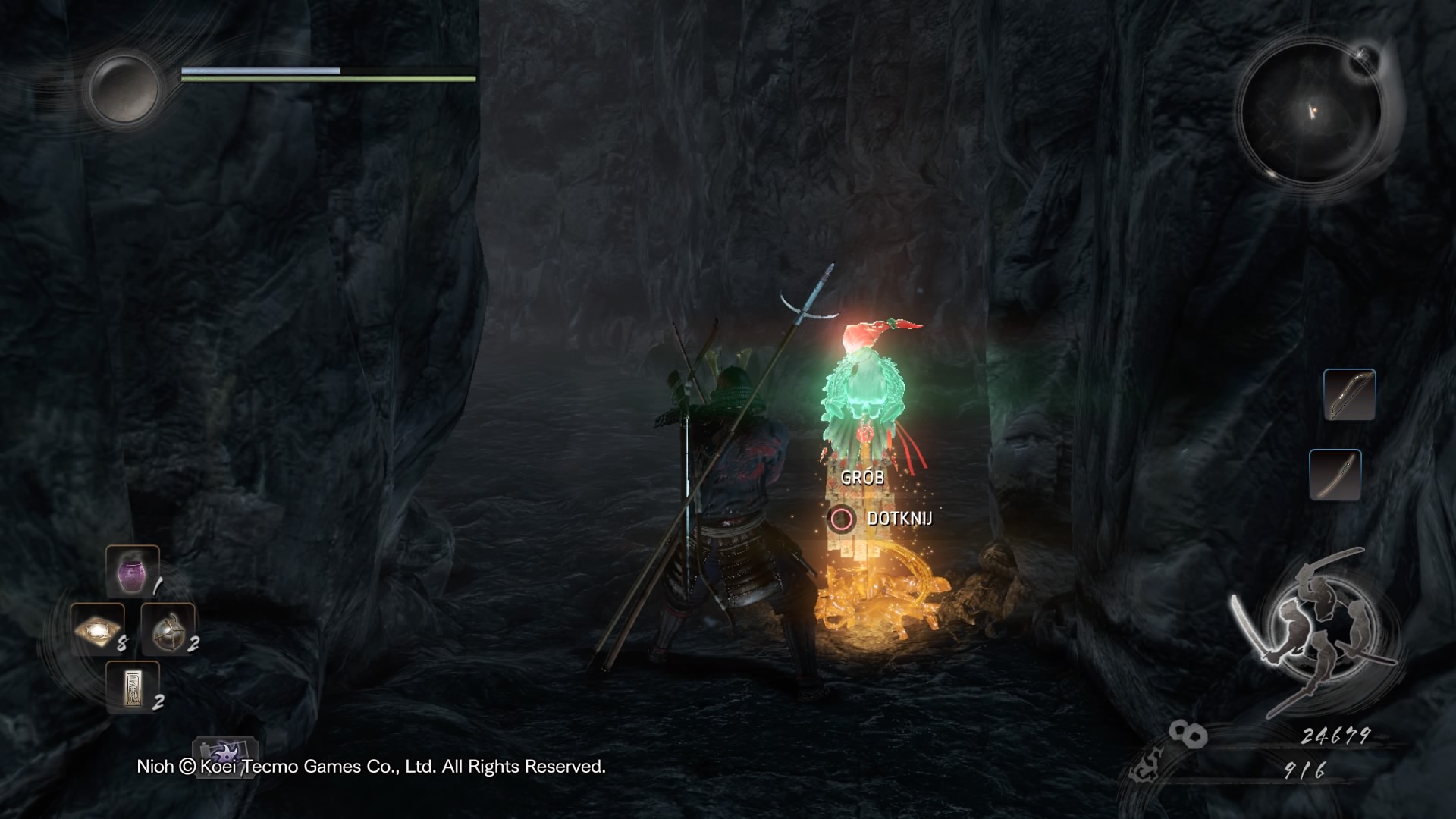 Chram jest naszym punktem startowym w każdym regionie gry. Pojawia się także w formie kapliczek w trakcie misji, które pełniąc funkcje zapisu gry. Działają one tak samo, jak ogniska w Dark Souls, czy latarnie w Bloodborne. Gdy nasza postać zginie, to rozgrywkę zaczynamy od ostatnio odwiedzonej kapliczki. Skorzystanie z chramu wiąże się niestety z pojawieniem się na mapie wszystkich pokonanych potworów, za wyjątkiem bossów. Śmierć bohatera wiąże ze strata całej amrity oraz ducha opiekuńczego. Na miejscu zgonu pojawia się grób, do którego musimy się dostać nie umierając, aby wszystko odzyskać. Gdy zginiemy po drodze, to stracimy bezpowrotnie całą uzbierana amritę, czyli schemat dobrze znany fanom Soulsów i Bloodborne. Powróci do nas za to natychmiast duch opiekuńczy. Warto odnotować, że Nioh będzie największym wirtualnym cmentarzyskiem graczy. Gdy zginiemy, to nasze groby nie znikają w czasie rozgrywki. Gracz, który idzie za nami może zobaczyć kto nas zabił i w jaki sposób. Jeżeli zginęliśmy przez nieuwagę typu spadek z wysokości lub utonięcie, to także tak informacja się pojawi. Gracze na naszym grobie zobaczą nazwę konta PSN, poziom postaci oraz jak rzadkie przedmioty mieliśmy na sobie. Jeżeli starczy nam odwagi i czujemy się mocni, to możemy wskrzesić ducha poległego gracza, który będzie sterowany przez SI. Gdy go pokonamy, to będziemy mogli zabrać drogocenne przedmioty, które pokonany gracz miał na sobie. Tutaj warto wspomnieć, że po premierze ruszy dodatkowo tryb PVP, w którym dwaj gracze będą mogli walczyć normalnie miedzy sobą.