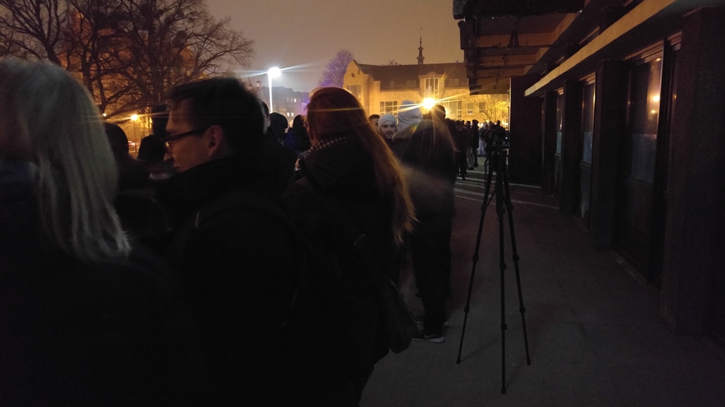 Warto to podkreślić na samym wstępie – otwarcie pubu cieszyło się olbrzymią popularnością. Wraz z Marcinem przyszliśmy na miejsce około 19:30, czyli na półgodziny przed otwarciem. Już wtedy pod drzwiami czekało parę osób. Im bliżej jednak 20:00 tym osób przybywało. W kolejce stało spokojnie kilkadziesiąt osób, kto wie czy nie setka.