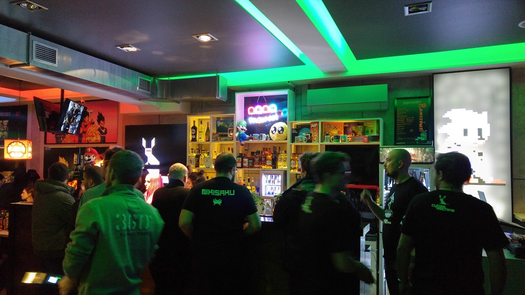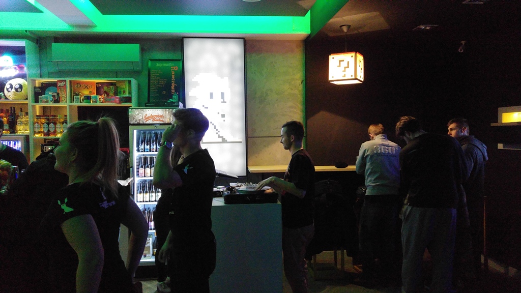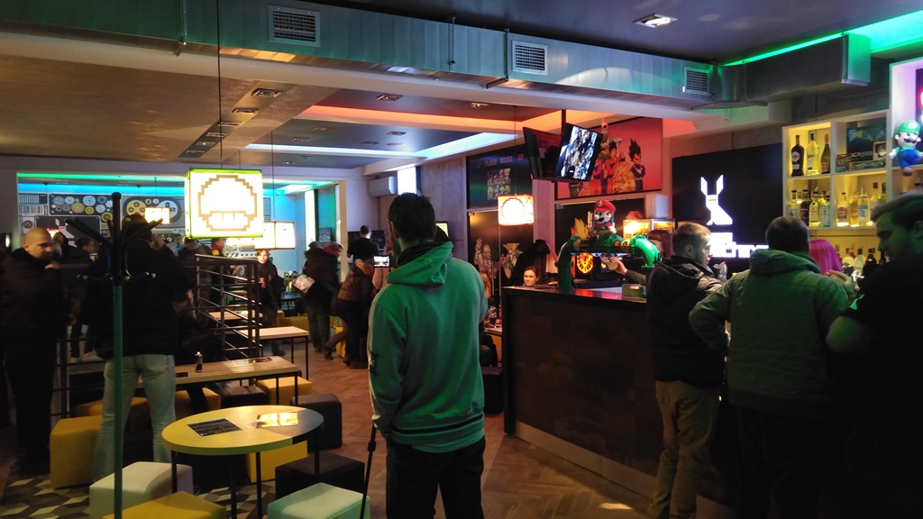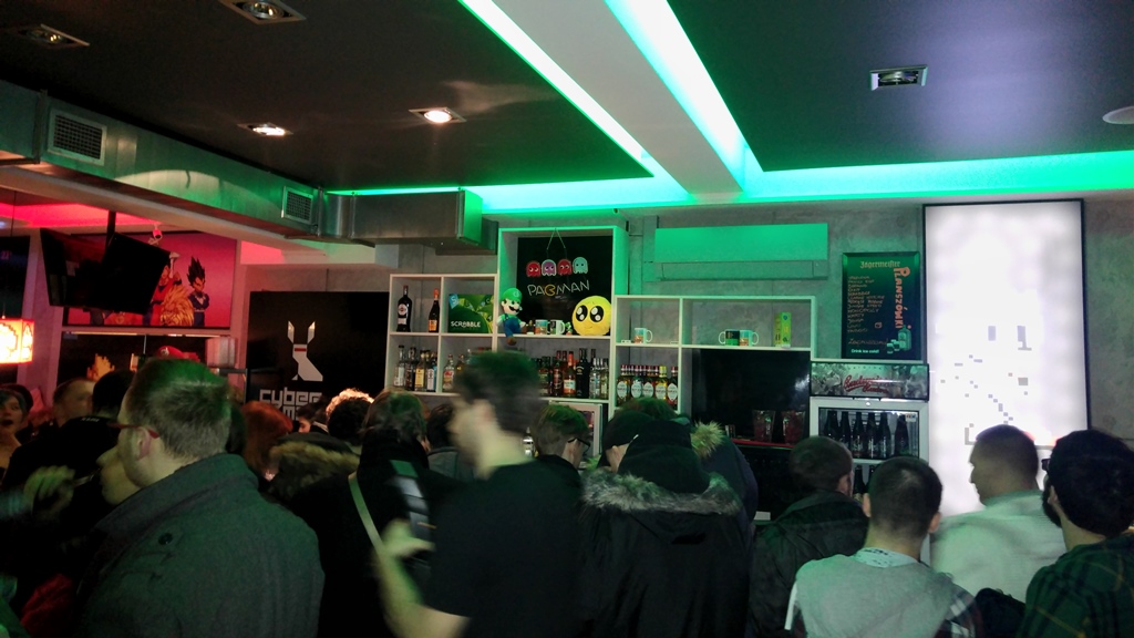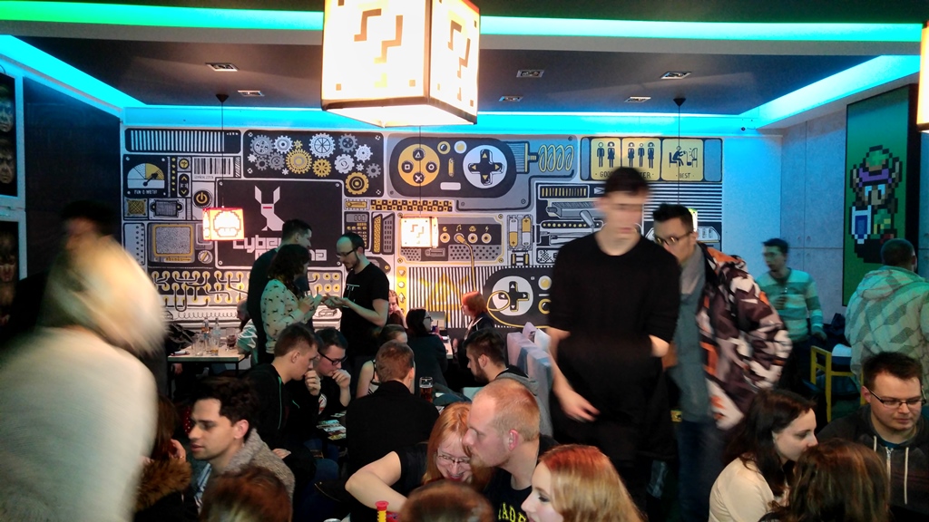 Jak pisałem na początku otwarcie Cybermachiny cieszyło się sporym powodzeniem. Na początku, jak wszyscy do środka weszli, było na prawdę dość ciasno. Chwilę później jednak zrobiło się odrobinę luźniej. Tłumy były trochę uciążliwe, ale taka już specyfika otwarcia lokalu. Za jakiś czas, jak już wszyscy zainteresowani zdążą pub obejrzeć i szum się uspokoi pewnie będzie dużo łatwiej znaleźć w lokalu miejsce do siedzenia czy pogrania.