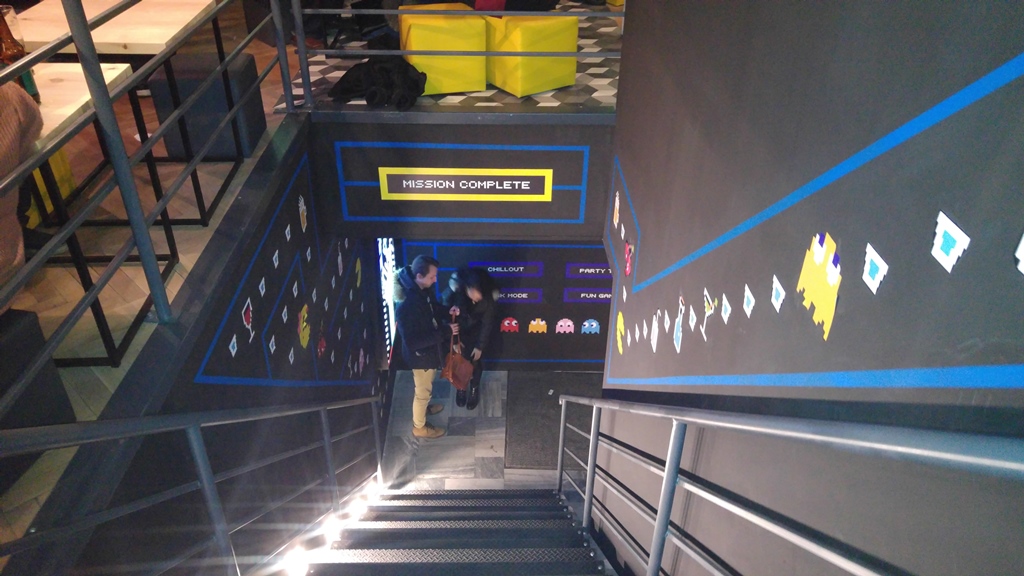 Zdecydowanie trzeba pochwalić właścicieli za wystrój. Od początku widać dla kogo jest to lokal. Na każdym kroku wita nas jakiś gadżet czy elementy wystroju, który nawiązuje do gier. Fototapety z Contry, Sonica, pluszowy Mario i Luigi czy wielka, podświetlana głowa wilka z Wiedźmina to tylko część z przygotowanych atrakcji.