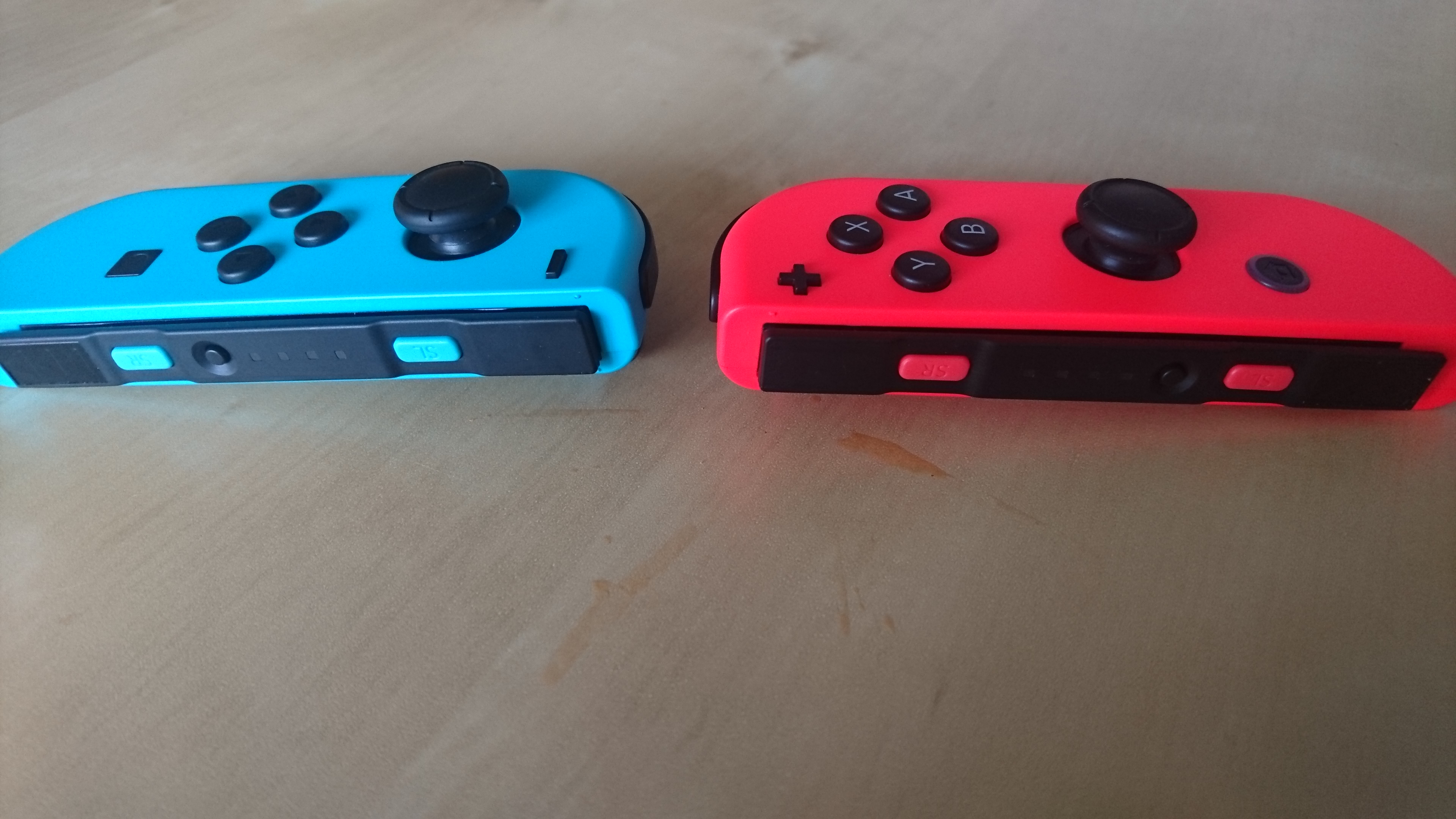W pudełku z konsolą znajdziemy dwa kontrolery JoyCon. Na rynku dostępne są dwie wersje kolorystyczne kontrolerów. Możemy kupić konsolę z JoyConami w kolorze szarym, albo w kolorach Neon Blue i Neon Red. Oprócz koloru urządzenia nie różnią się między sobą absolutnie niczym. Są to bardzo zaawansowane urządzenia. Oprócz czujników ruchu każdy z nich wyposażony jest w funkcję HD Rumble. Prawy JoyCon ma czytnik NFC do odczytu figurek Amiibo, a także kamerę. O tym jak wiele mają do zaoferowania te małe urządzenia przekonają się wszyscy grający w 1-2-Switch. niestety gra ta nie jest dołączona do zestawu, co uznaję za poważny błąd!