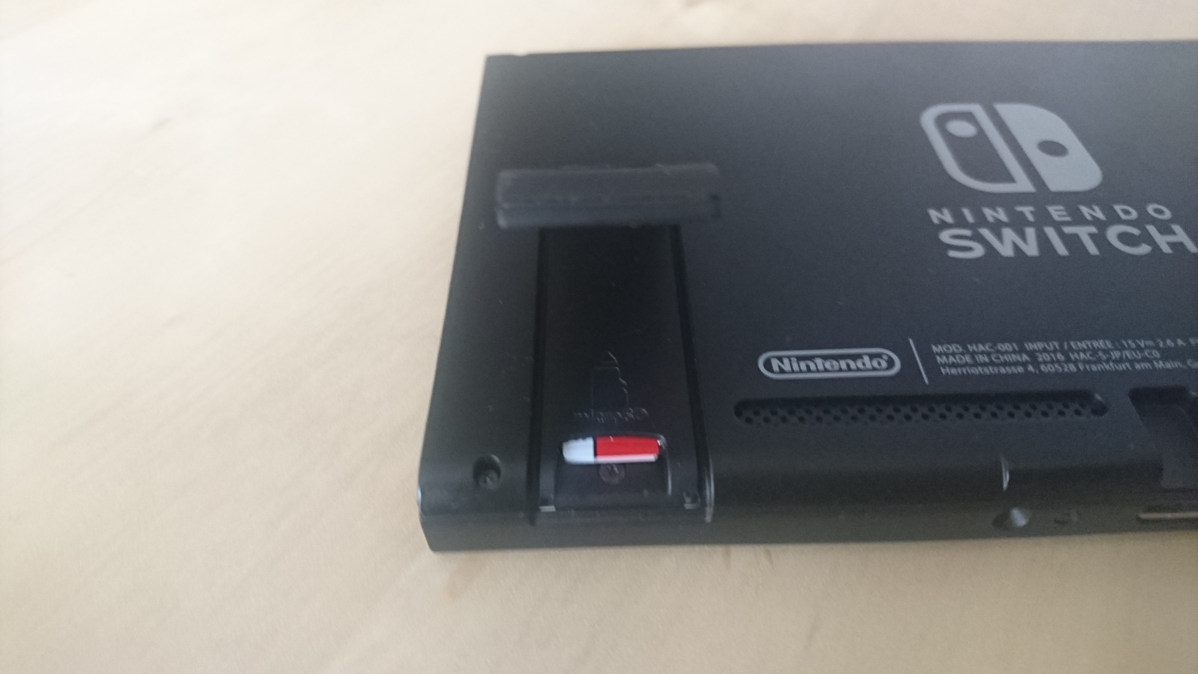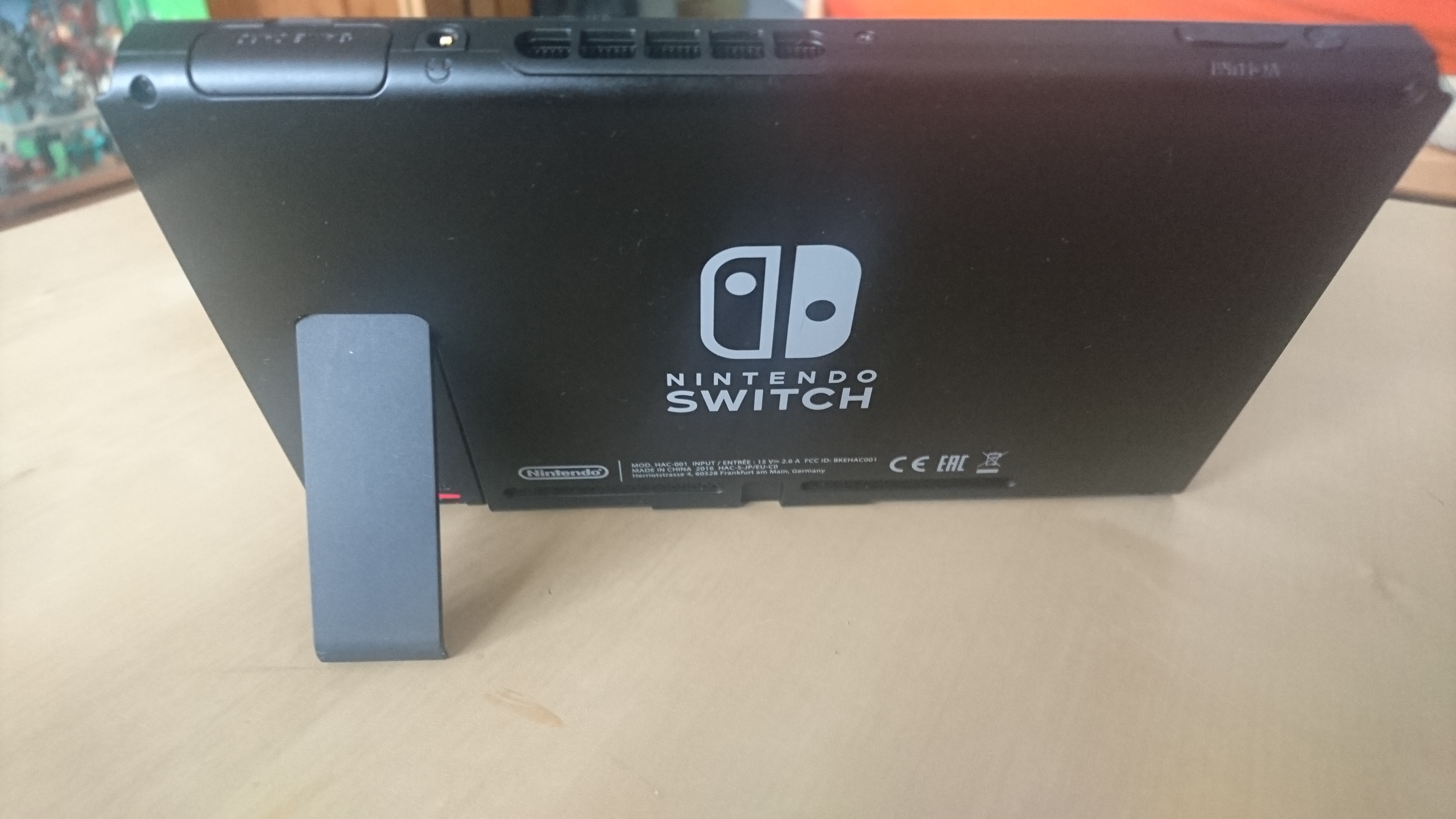 Po bokach urządzenia dostępne są szyny, w które montujemy kontrolery JoyCon. Na dole znajdziemy jedynie port USB typu C. Z tyłu urządzenia dostępna jest nóżka przydatna przy stawianiu konsoli na stole. Pod nóżką znajdziemy też slot na wspomniane wcześniej karty pamięci. Warto tutaj pochwalić Nintendo za przemyślany sposób łączenia nóżki. Jest ona przyczepiona dość luźno, dzięki czemu przy nacisku odpada od konsoli. Jest to zamierzony efekt i taką nóżkę można bez problemu wsadzić z powrotem. Jest to zabezpieczenie przeciw wyłamywaniu jej. Niestety umiejscowienie nóżki przy jednym z boków konsoli powoduje, że sprawdza się ona właściwie tylko i wyłącznie na twardych podłożach. Jeśli chcemy postawić konsolę na kanapie, łóżku czy innym mniej stabilnym gruncie to może się nam to nie udać.