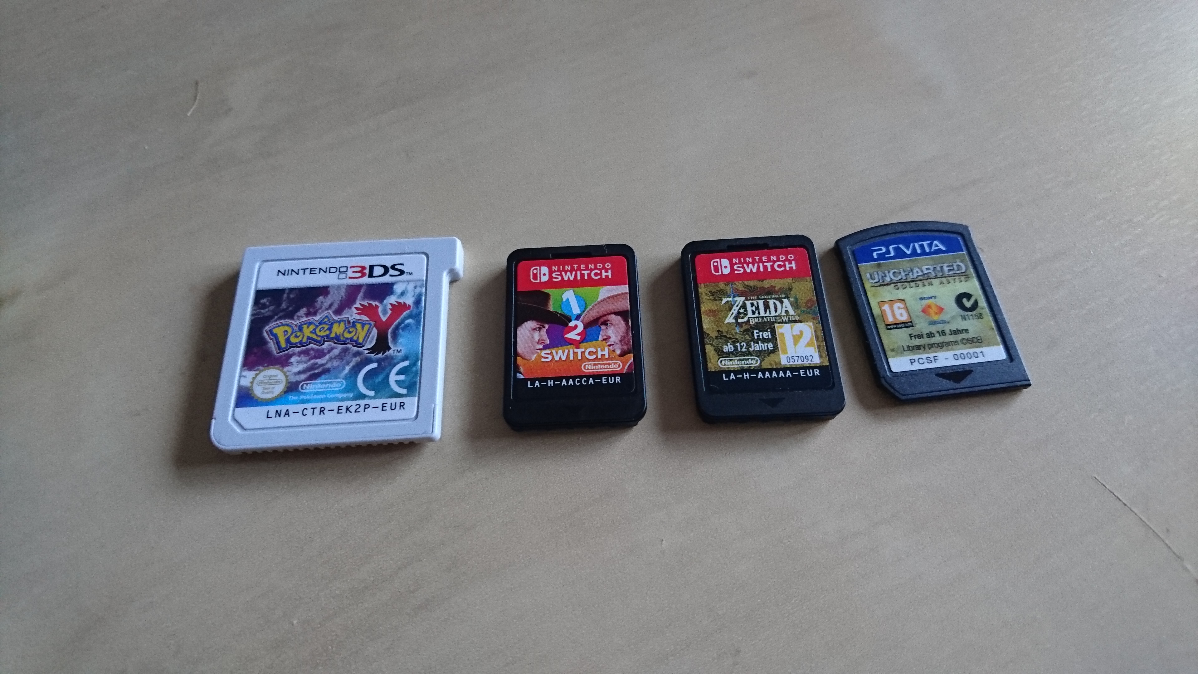 Gry fizyczne dostępne są na kartach, których pojemność sięga nawet 32GB. Są one niewielkich rozmiarów, bardzo podobnych to tych z PlayStation Vita. I tak, pokryte są słynnym już plastikiem, który jest obrzydliwy w smaku. Jest to specjalne zabezpieczenie by zniechęcić dzieci od połykania ich. Z recenzenckiego obowiązku spróbowałem i rzeczywiście smak jest zły. Nie polecam wam próbować tego w domu.