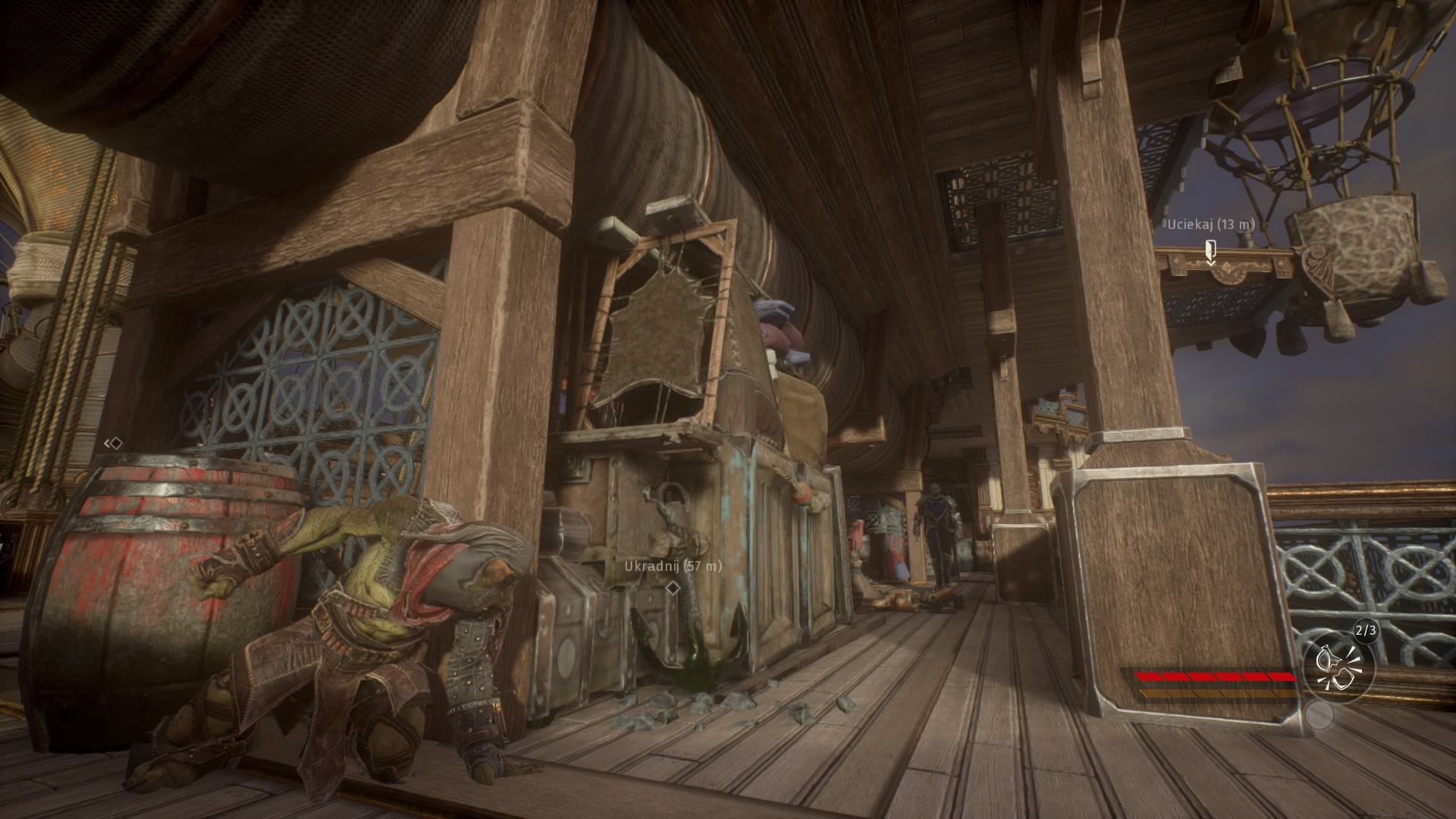 Podobnie jak niesamowity klimat. Świat mrocznego fantasy, w jakim toczy się akcja, pełen jest urokliwych zakątków, barwnych targów, ale i mrocznych i zdradzieckich zaułków czy ponurych, posępnych budowli. Wszystkie te elementy łączy przy tym tak spójna estetyka, że nie sposób odmówić przedstawionemu światu pewnego rodzaju magii. Pozytywnych wrażeń dopełnia humor wylewający się z produkcji. Często Styx zabawnie, acz dosadnie komentuje nasze fiaska, drwiąc z nas. Podczas rozgrywki natkniemy się także na mnóstwo easter eggów. Nie brakuje odniesień do takich gier jak Assassin’s Creed, czy God of War, przy czym są to odwołania subtelne i nienachalne.