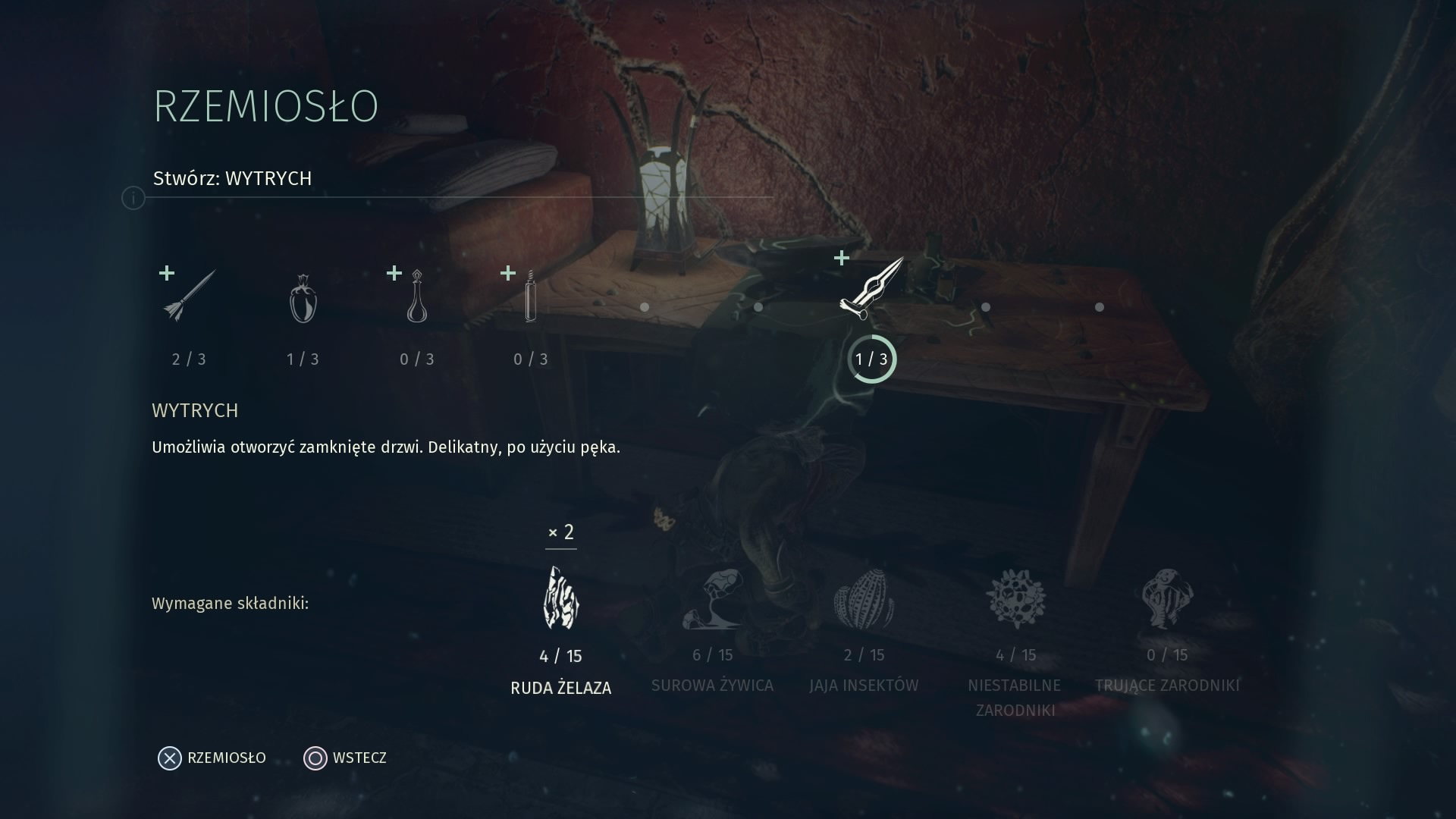Nowością w drugiej części przygód Styxa jest wprowadzenie systemu wytwarzania przedmiotów. Podczas naszej podróży będziemy znajdywali surowce. Możemy je później przeznaczyć na tworzenie przydatnych w przygodzie Styxa rzeczy – wytrychów, napojów życia i żywicy (swojego rodzaju “many”), kwasowych pułapek, strzałek i tak dalej. Naprawdę jest co budować.