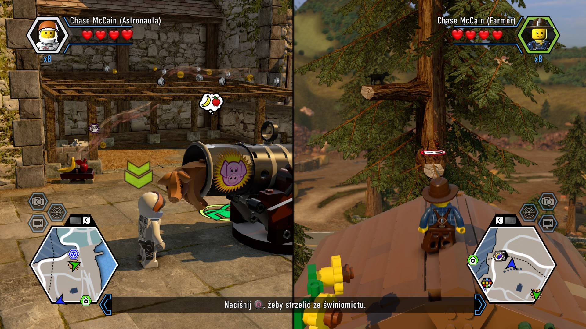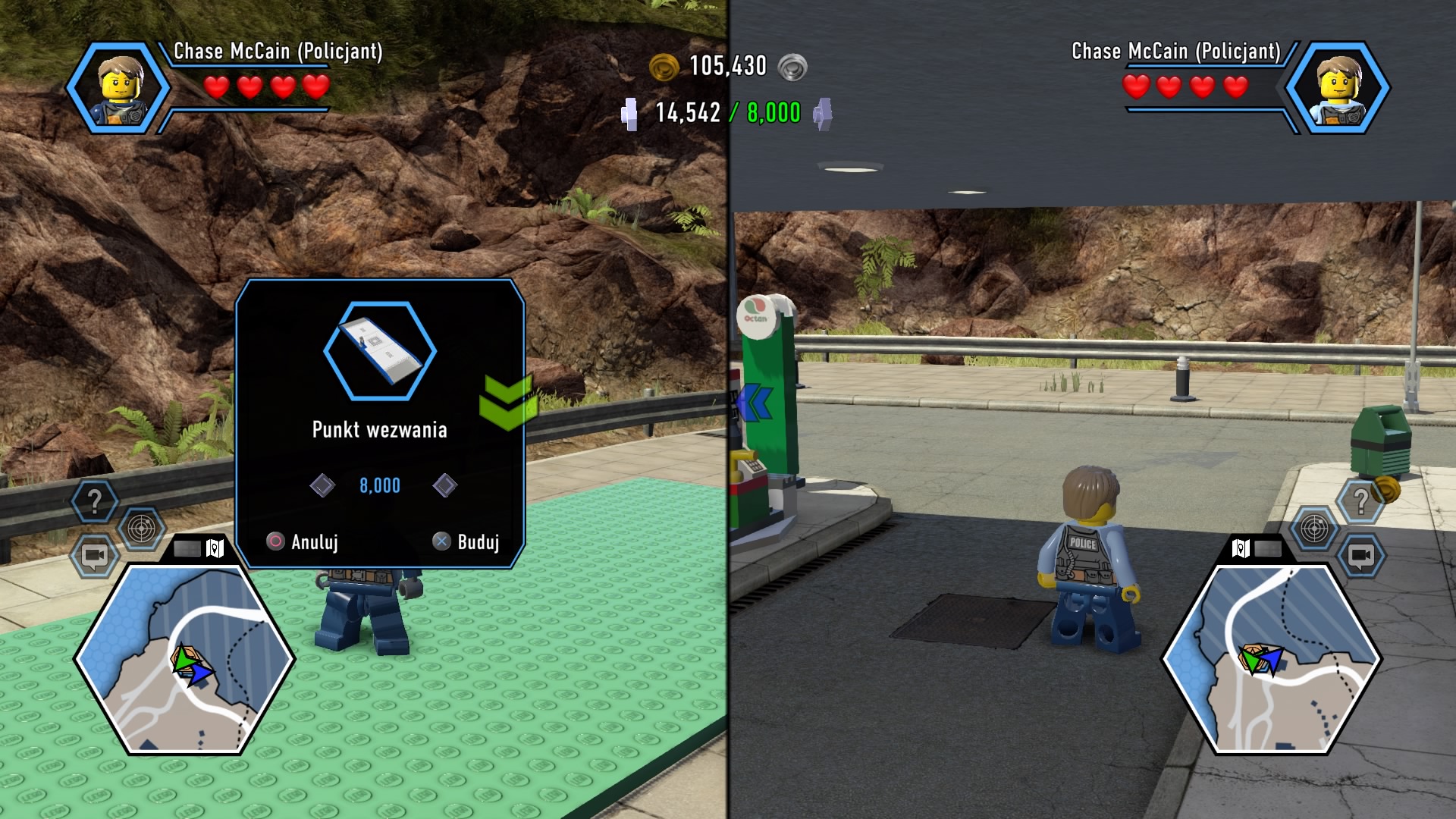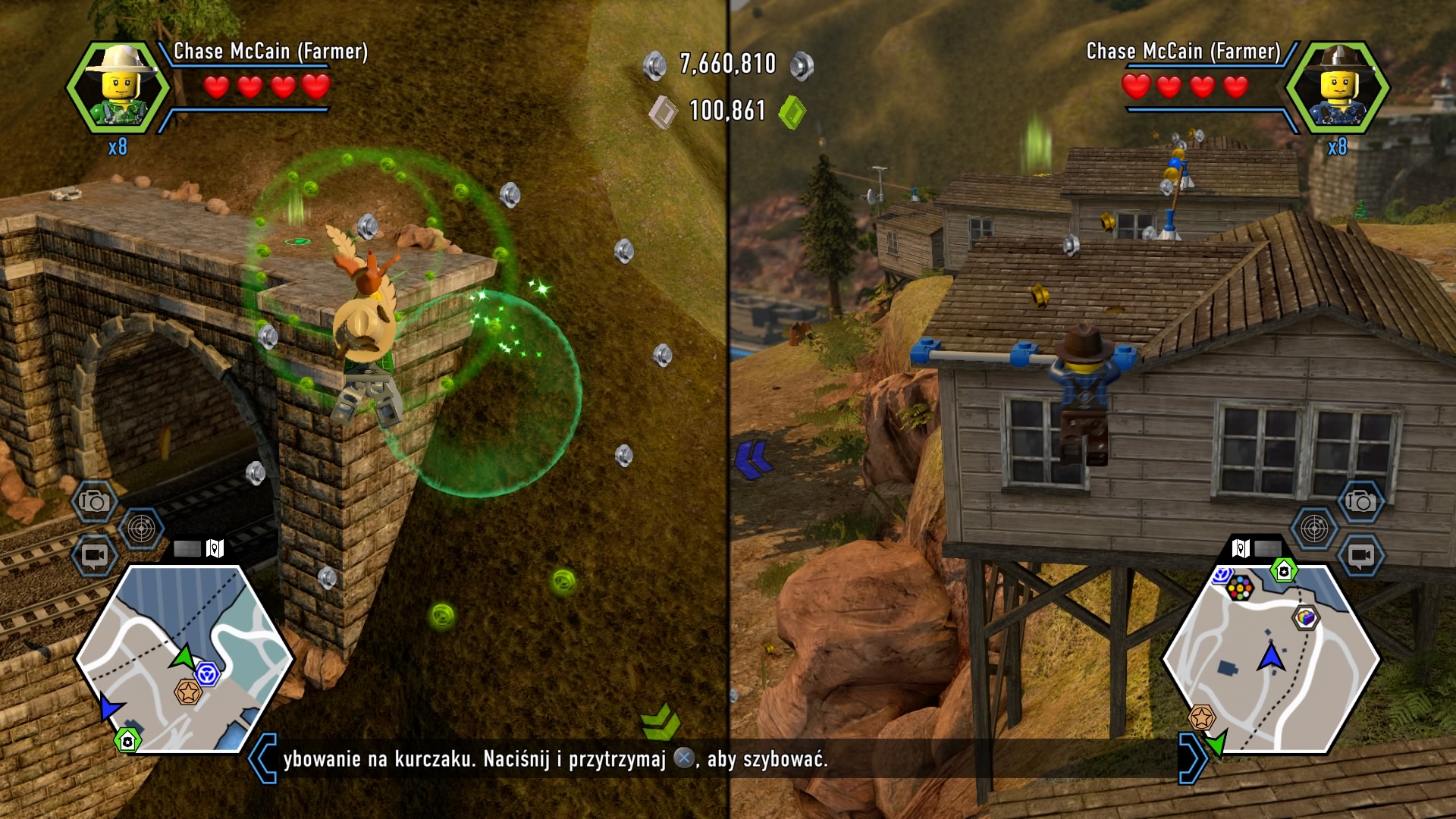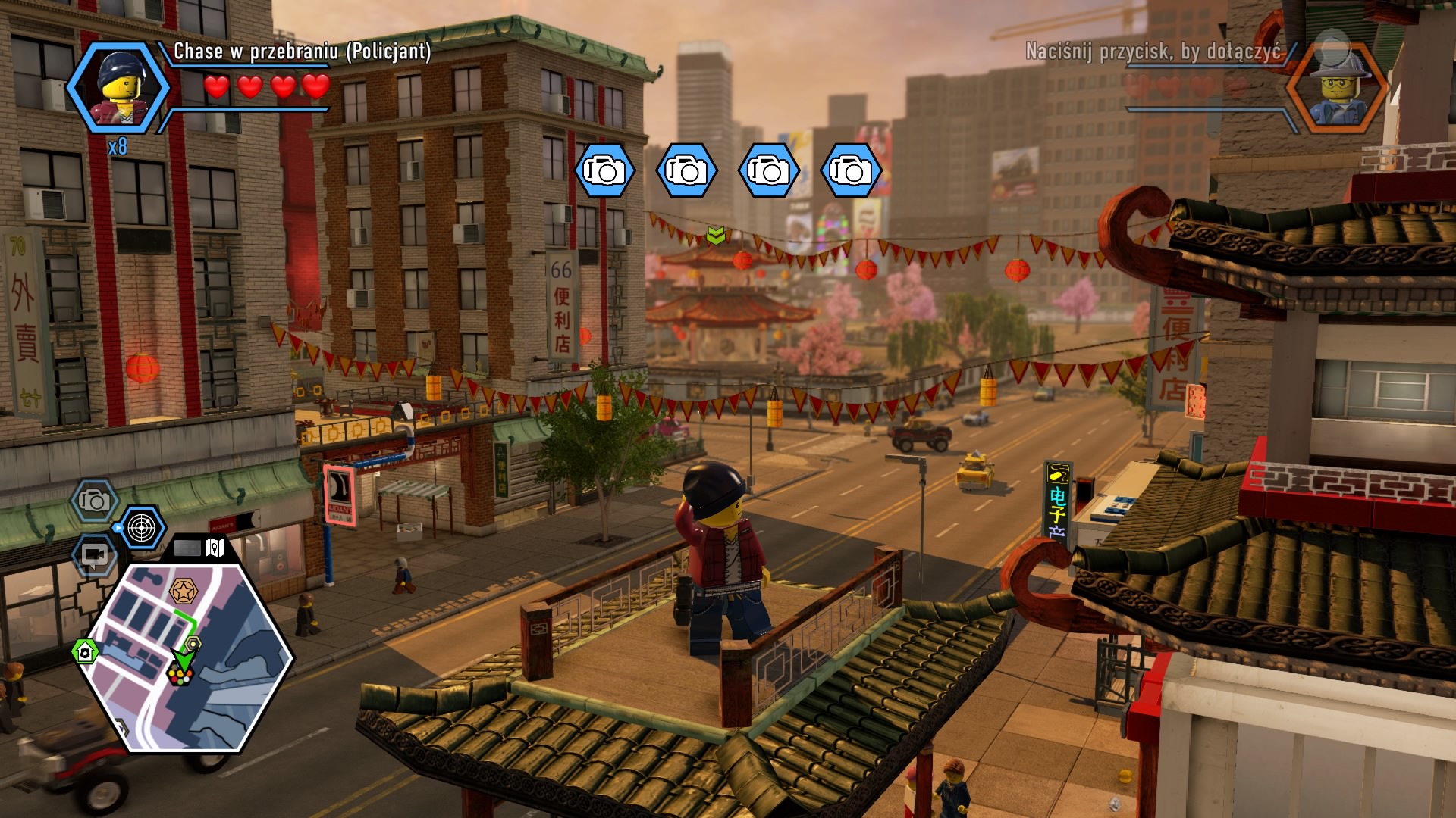 Co ważne, hasać po mieście bez ograniczeń możemy wspólnie z drugą osobą na jednym ekranie, jak zawsze brakuje komponentu multiplayer online, ale na to się już w serii Lego chyba nigdy nie doczekamy. Kooperacja przy jednej konsoli i możliwość zajmowania się całkowicie różnymi zadaniami doskonale wpływa na bezczynność jednego z grających, która potrafi nawiedzać serię. Doskonały tytuł do grania z pociechą, czy młodszym rodzeństwem, masa radości gwarantowana. Jedyne, do czego mogę się tu przyczepić to fakt, że czasami można nierozważnie przenieść drugiego gracza do nas, rozpoczynając misję fabularną. Owocuje to przerwaniem aktywności, którą się on zajmował, ale wystarczy czasami zerknąć co robi druga osoba, żeby nie dochodziło do konfliktów.