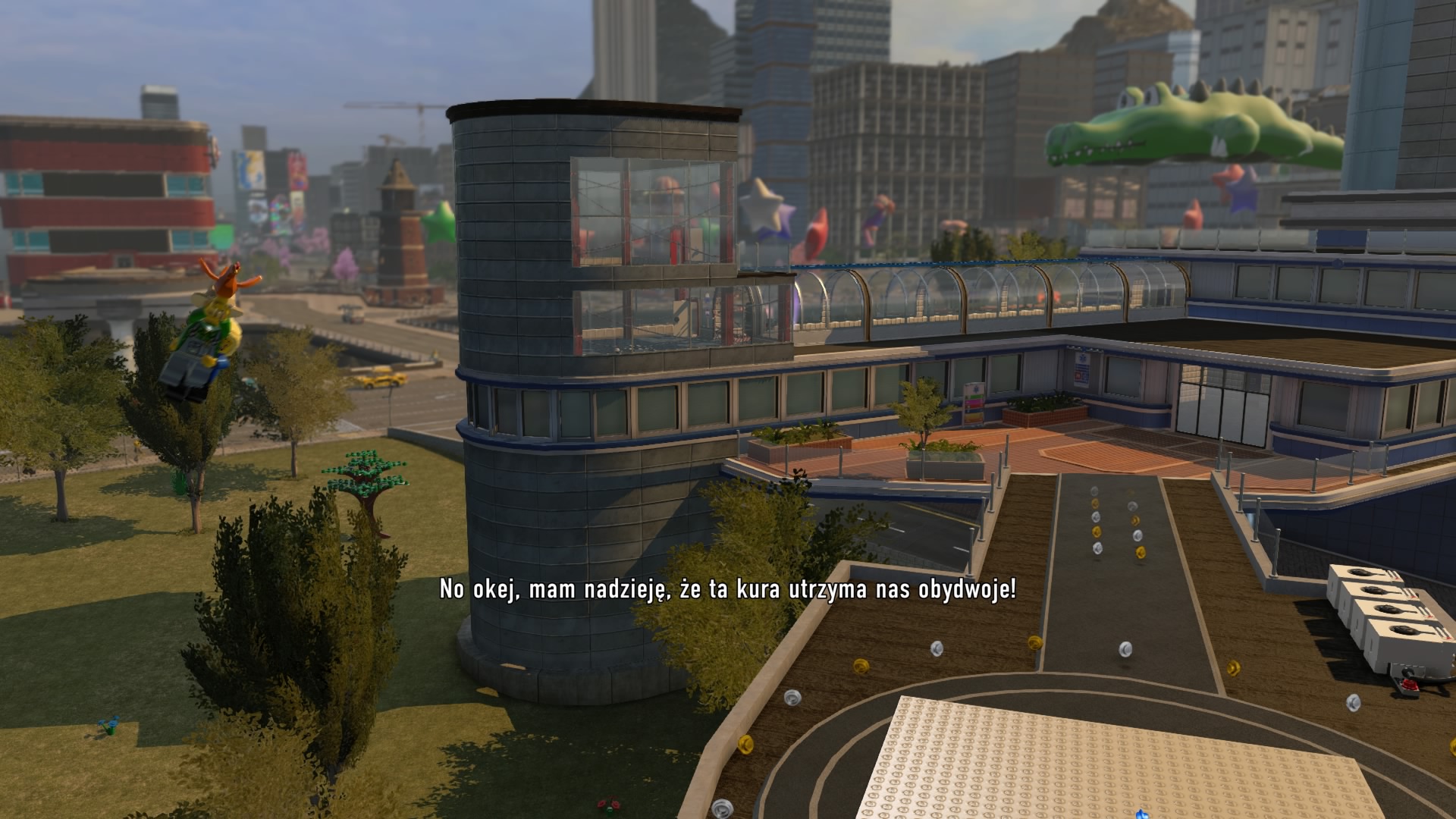 Otwarty świat sprawdza się w produkcji doskonale, miasto jest różnorodne, ma różne dzielnice w całkowicie odmiennych klimatach. Dużo tu miejsc wyciągniętych z San Francisco, ale nie zabrakło też prowincji. Wszystkie lokacje są usiane różnymi znajdźkami, ukrytymi klockami, postaciami, pojazdami ale przede wszystkim zadaniami. Jest ich cała masa, mamy pościgi, odprowadzanie samochodów do dziupli, biegi parkourowe, czy zadania poboczne przypisane do wersji naszego bohatera. Astronautą łapiemy kosmitów, farmer strzela świnkami z armaty, budowlaniec robi sobie przerwy na kawę… to tylko przykłady, bo jest tego dużo więcej. Za wszystko dostajemy coś do odblokowania albo tradycyjną nagrodę – złote klocki. Tych ostatnich jest 450, a w innych grach z serii mieliśmy ich najczęściej 250. Aktywności jest ogrom i są tak gęsto usiane, że często mówiąc sobie, że to ostatnia, robiłem 5 kolejnych, bo to w większości szybkie proste zadania i sprawia radochę odhaczanie kolejnych. Do odblokowania mamy też standardowo czerwone klocki, pojazdy i postacie, do zaliczenia jest bardzo dużo.