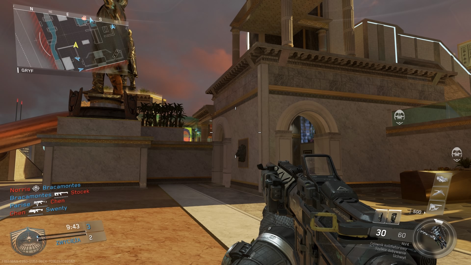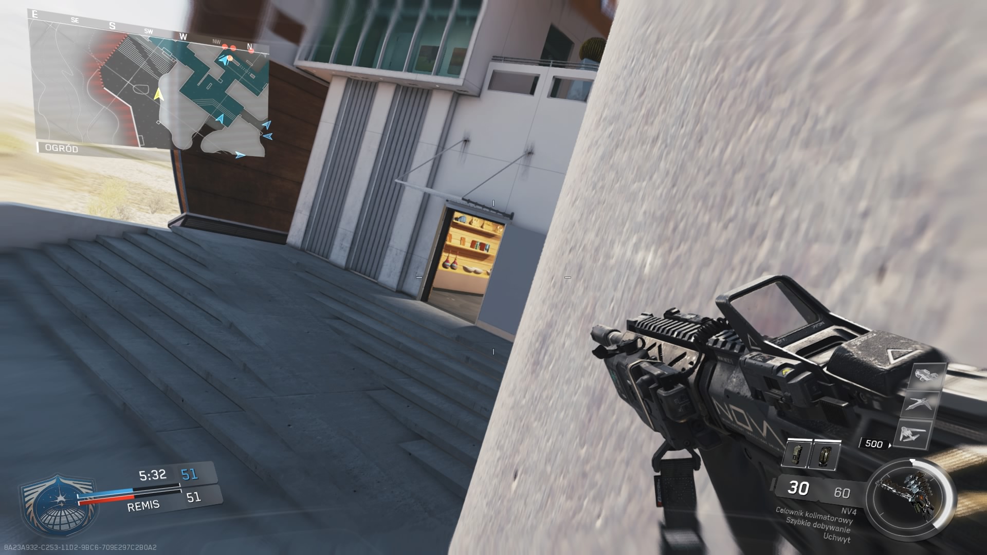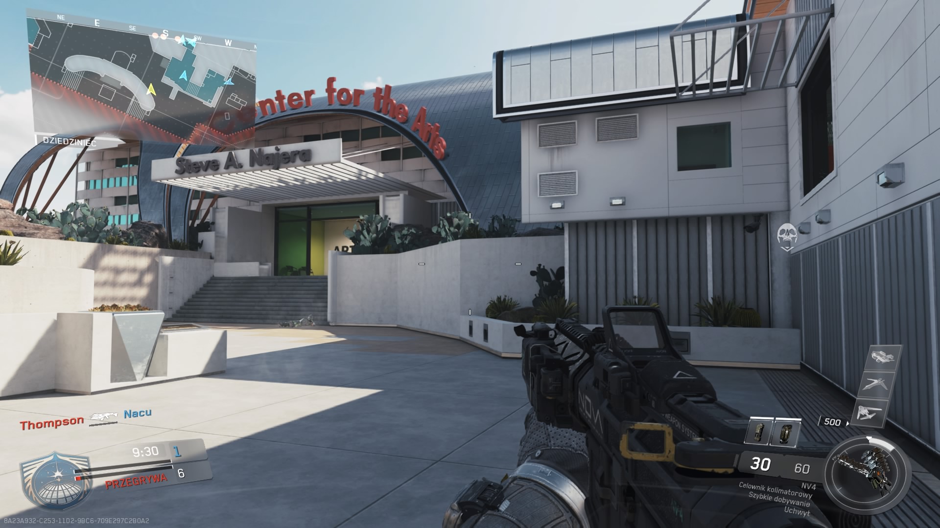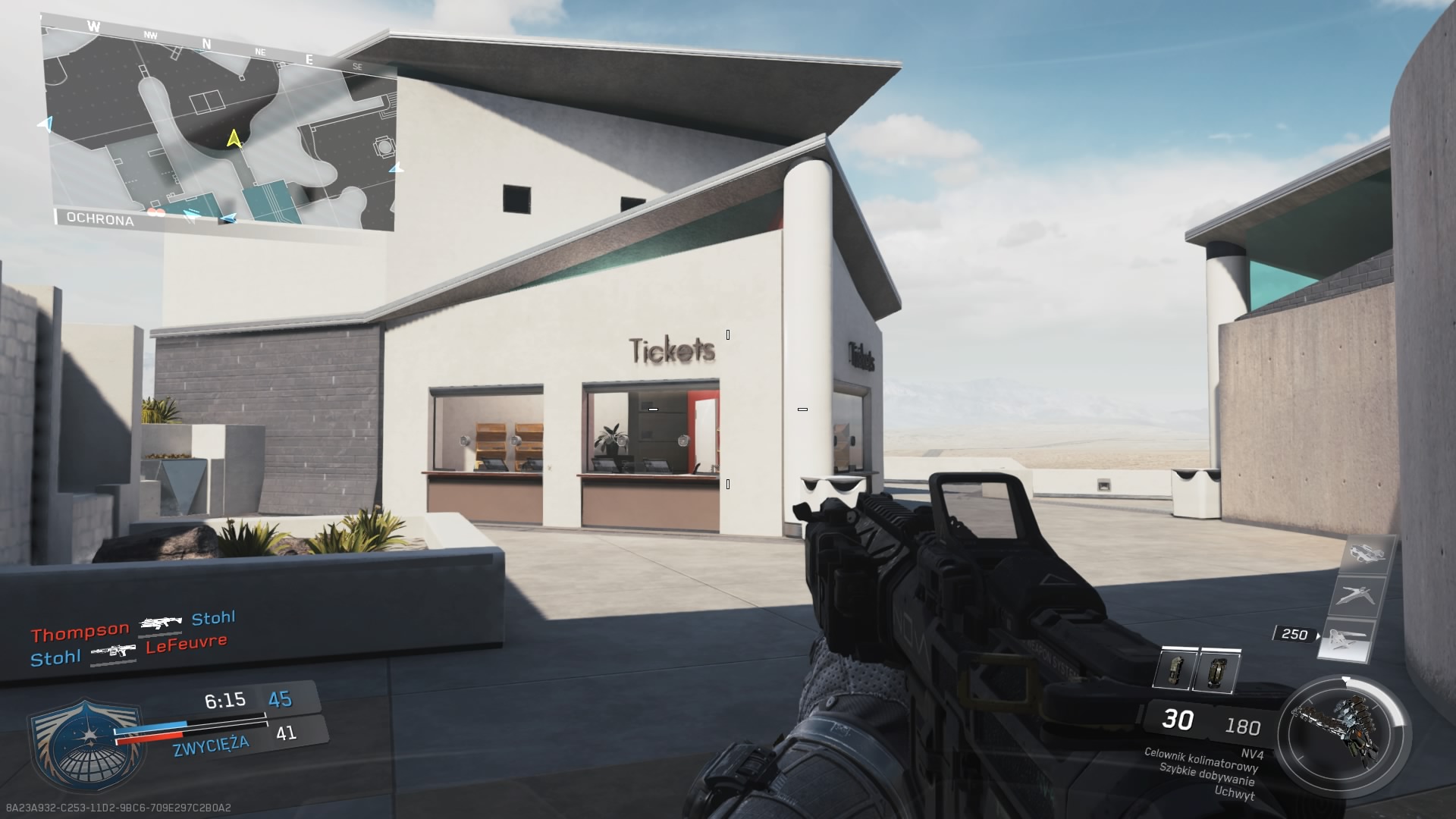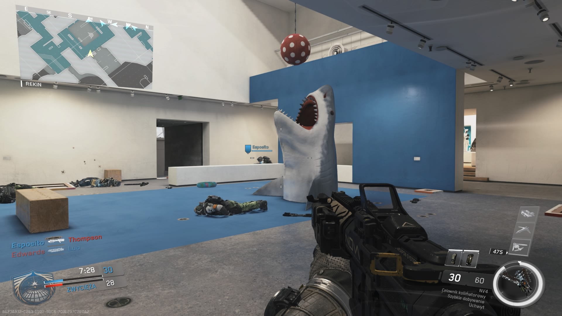 Trzecia mapa z dodatku Continuum, to Archive. Mnie osobiście średnio przypadła do gustu. Akcja rozgrywa się w post – futurystycznej galerii sztuki. Z jednej strony mamy tutaj sporo ciasnych korytarzy umożliwiających ostrzał na krótki i średni dystans, a z drugiej dużą otwartą przestrzeń wokół galerii, gdzie pole do popisu mają dalekodystansowcy. Zdecydowanie brakuje tutaj elementu wykończeniowego. Obszar wokół budynku przepełnia pustka, o której ciężko nie wspomnieć. W budynku mamy kawiarnię, jest kasa biletowa no i oczywiście dzieła sztuki. Elementem rozpoznawczym mapy jest głowa rekina znajdująca się zaraz na wejściu.