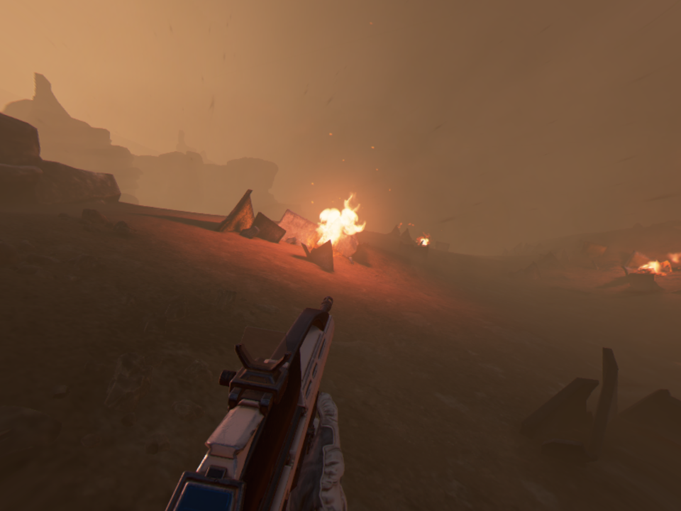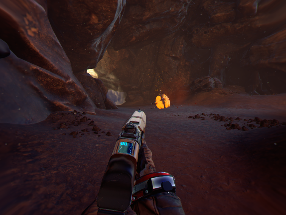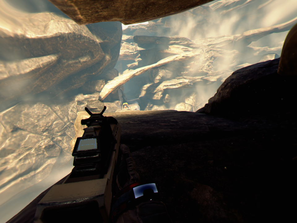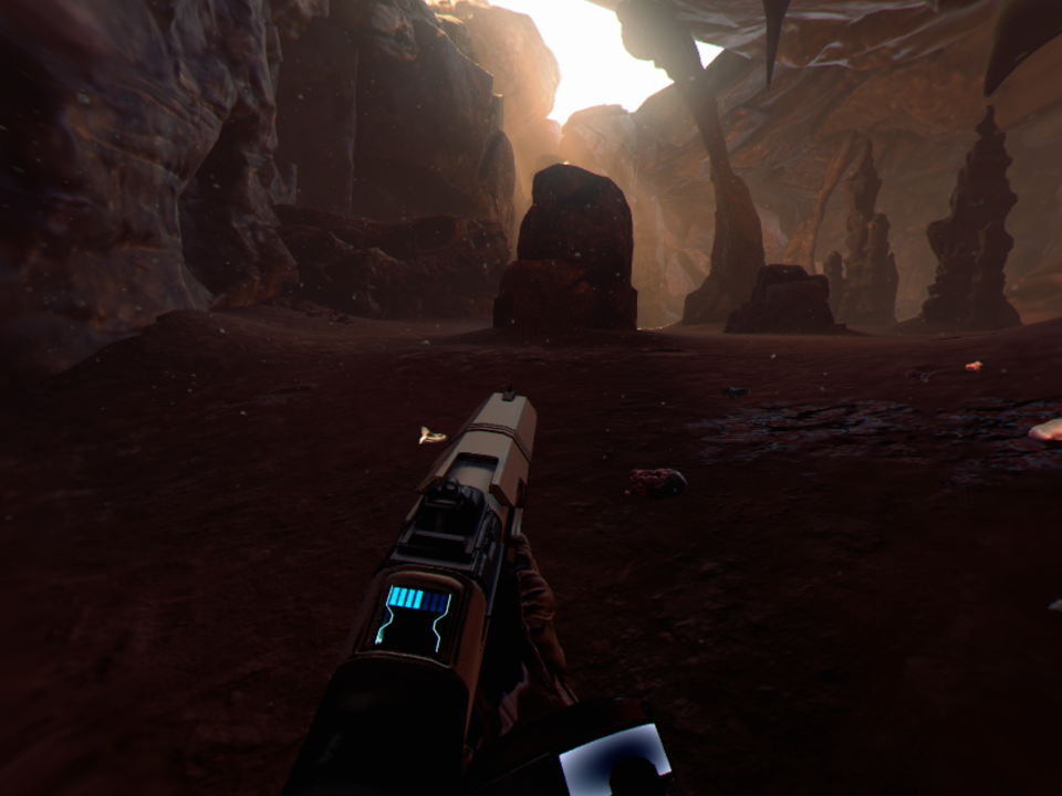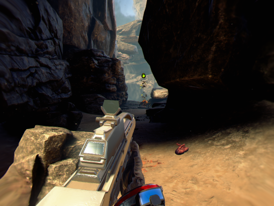 Aby uniknąć też zbytniego obrotu gra jest tak zaprojektowana aby przeciwnicy w większości atakowali nas od przodu. Na początku gry potyczki są w miarę proste, ale szybko poziom trudności skacze w górę. Wieloetapowe walki z kilkoma rodzajami przeciwników to nic prostego. Różnorodność samych adwersarzy jest spora. Mamy tutaj małe, skaczące nam na twarz poczwarki, większe pająki, które strzelają do nas z odległości czy wielkie, opancerzone potwory, które szarżując na nas mogą nas stratować. Walka wymaga użycia odpowiedniej broni. Na początku dostępny jest tylko karabin, ale z czasem odblokujemy strzelbę czy np. karabin snajperski. Do broni nie musimy zbierać amunicji, ta jest nieograniczona, ale każda broń ma pewne ograniczenia. Karabin np. może się przegrzać, a do strzelby musimy doładować pociski.