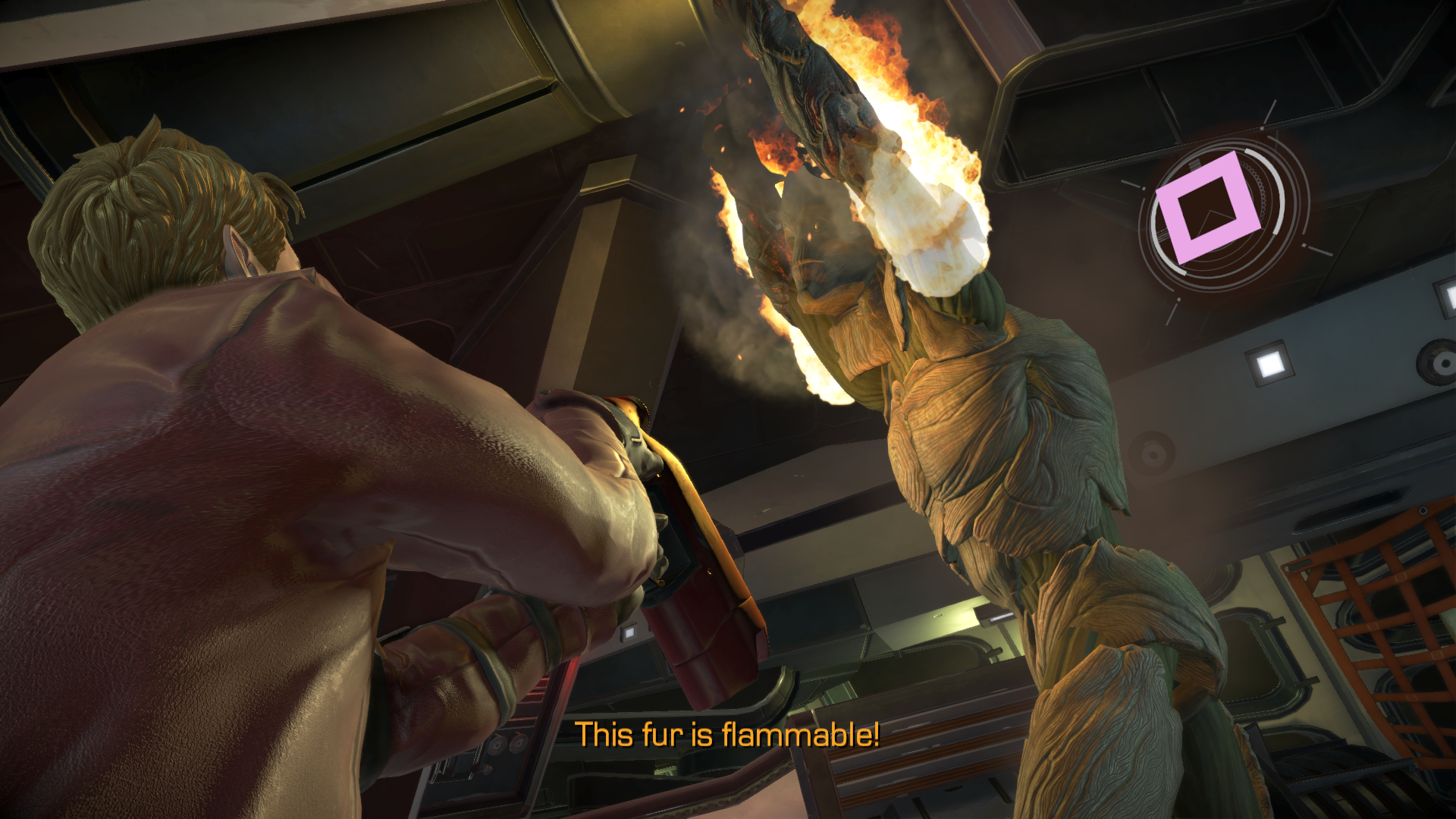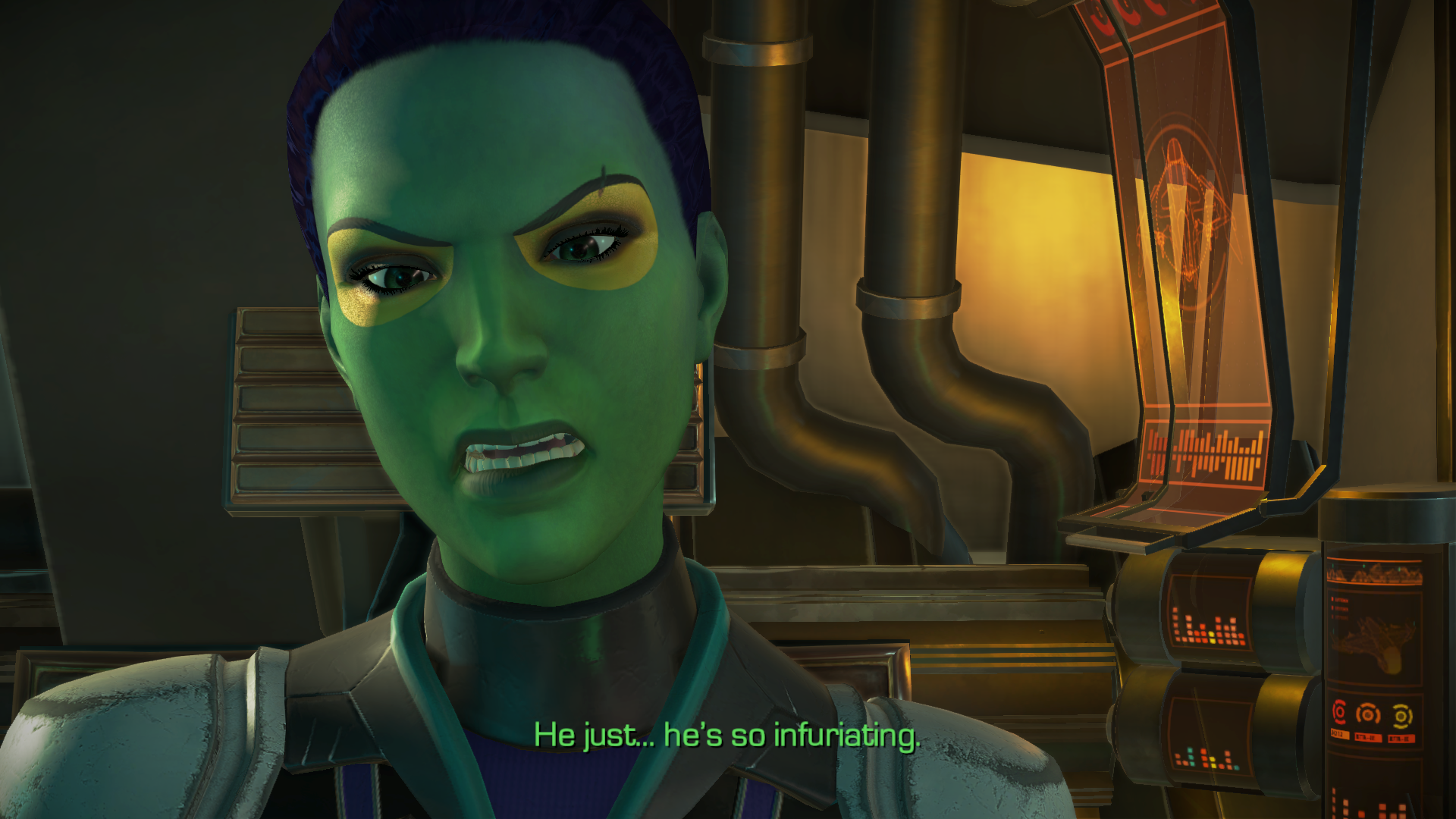 Jestem świeżo po seansie drugiej części filmowych Strażników, więc zasiadłem do gry Telltale wciąż wkręcony w ten klimat. Ogólnie twórcom udało się przenieść specyficzny wydźwięk i atmosferę komiksowych bohaterów na ekrany naszych telewizorów. Postaci odwzorowano bardzo wiernie. Star Lord jest dowcipnisiem, Gamora jest poważną wojowniczką, Drax nie rozumie metafor i jest to tutaj bardziej eksponowane niż w filmach, Groot cały czas powtarza I am Groot, a Rocket jest wybuchowym geniuszem, który chce jak najwięcej zarobić. Szkoda tylko, że przed oczami mam wciąż aktorów wcielających się w filmowe wersje tych postaci, przez co przygoda w grą Telltale wydawała mi się takim niskobudżetowym tytułem. Nie zrozumcie mnie źle – wszystko jest tutaj jak najbardziej na miejscu, ale blednie to przy fajerwerkach jakie możemy zobaczyć na ekranie kina. Zdaję sobie sprawę, że specjalnie teraz wydano ten tytuł, by załapać się na hype i modę na Guardians of the Galaxy, ale nie jestem do końca przekonany, że była to trafna decyzja.