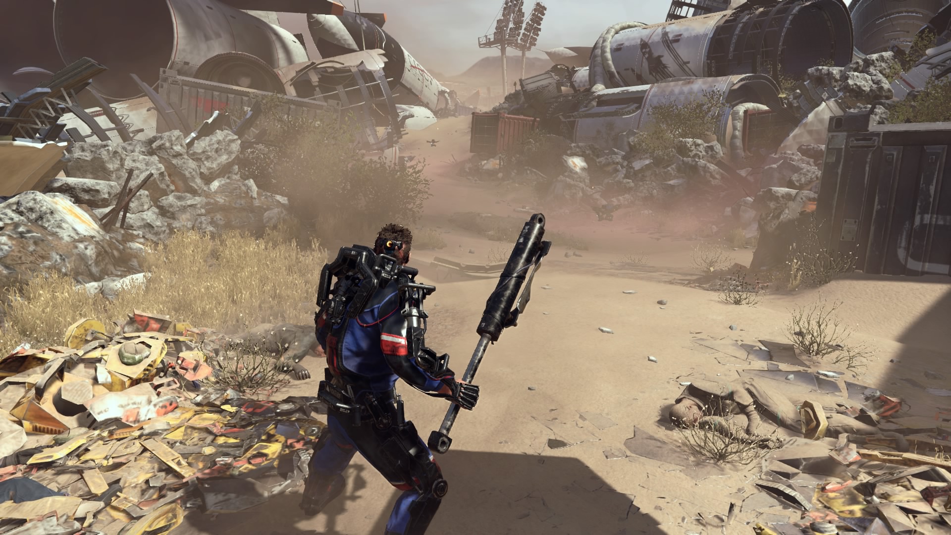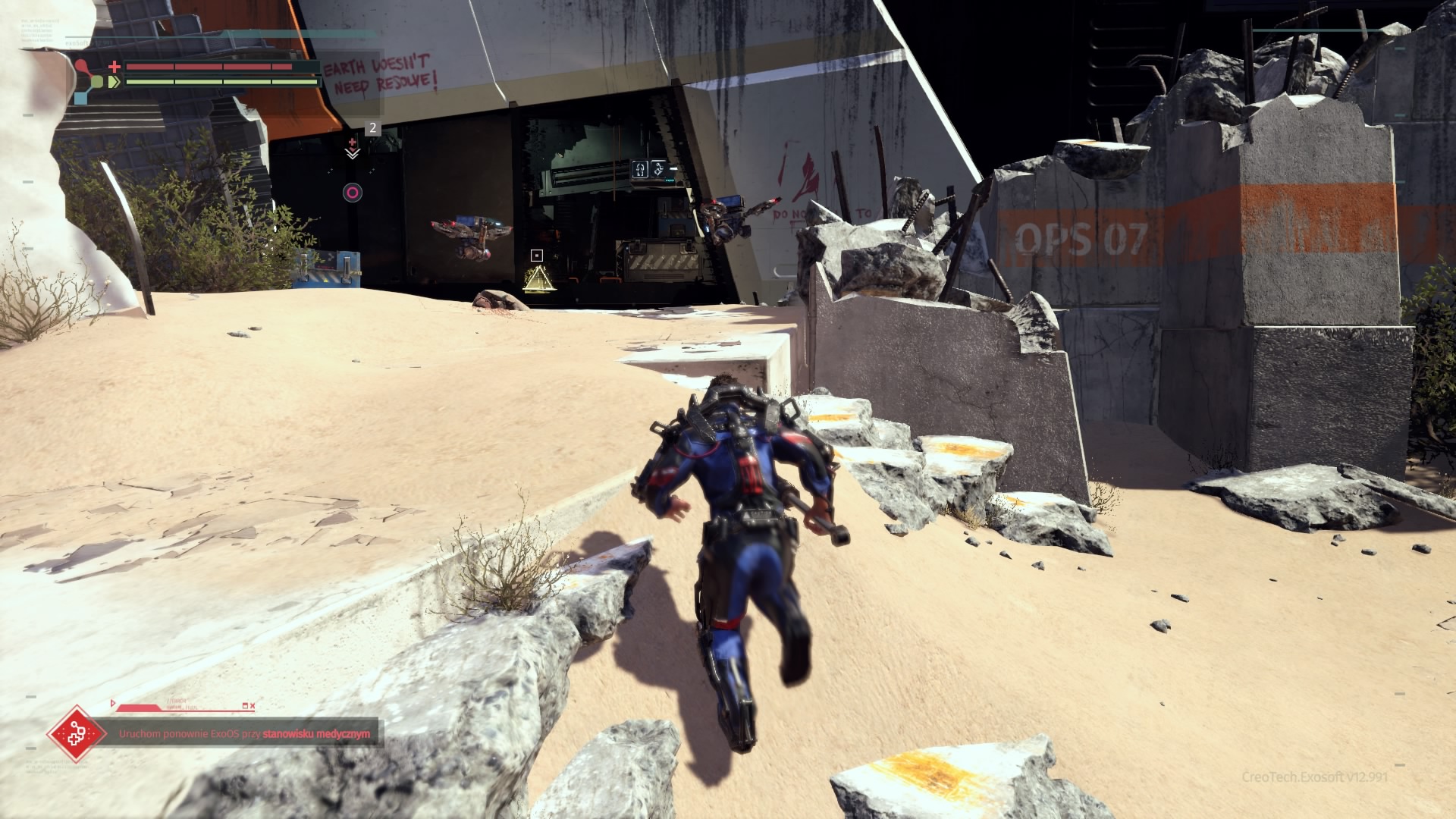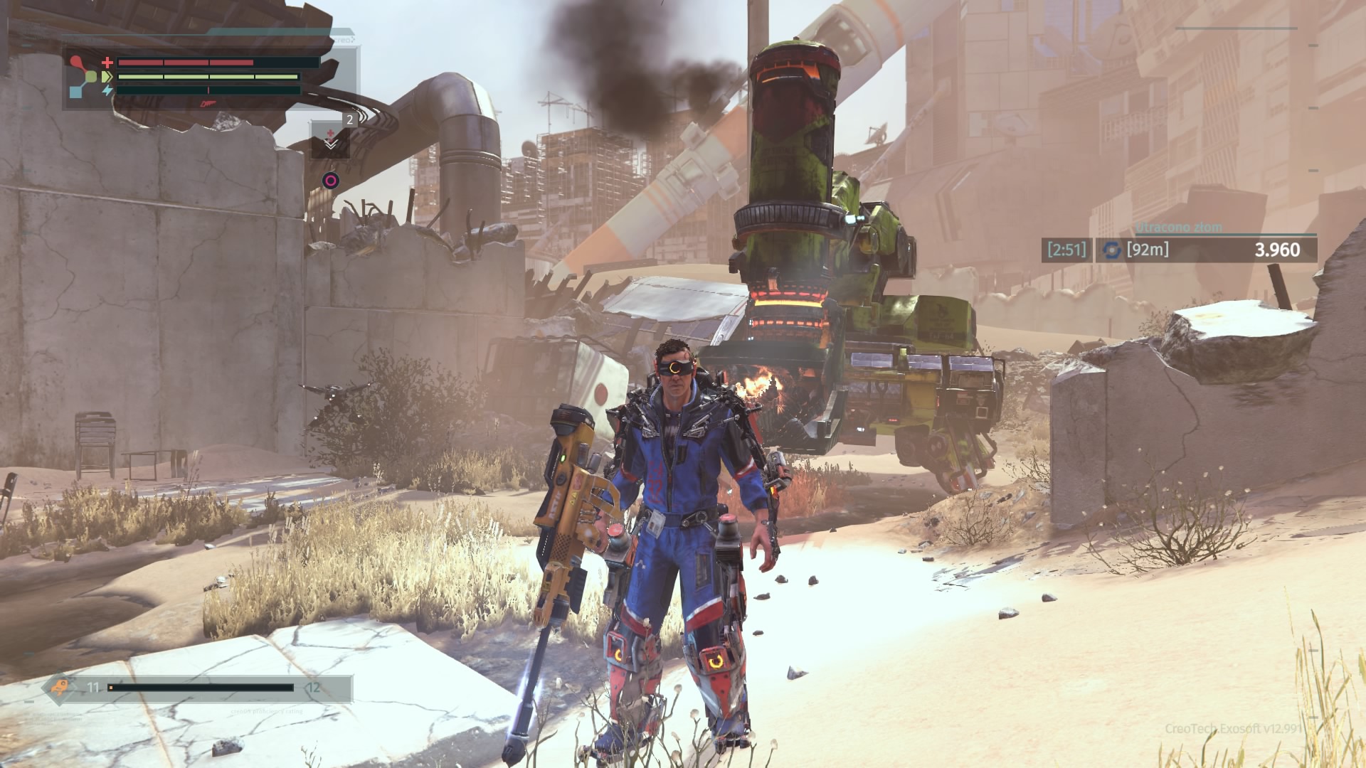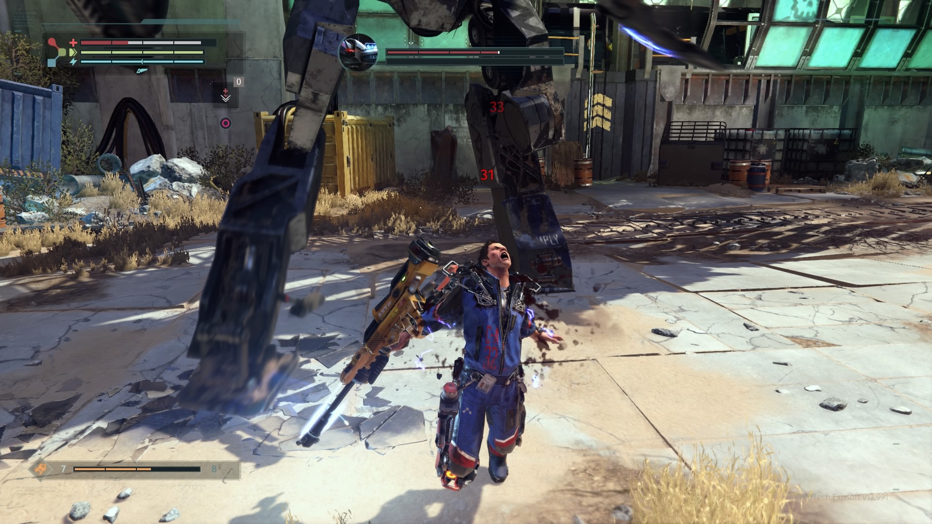 Wspominałem już, że na naszej drodze co i rusz stają przeciwnicy. Warren jest sobie w stanie z nimi bardzo efektowanie, a także efektywnie, poradzić. Walcząc z oponentami nieodzowne jest namierzanie naszego celu (blokujemy się na nim, naciskając prawą gałkę analogową). Otwiera nam to dostęp do mierzenia w poszczególne części przeciwnika. Jest to tym istotniejsze, że odpowiednio częste i mocne uderzanie nóg, ręki trzymającej broń, czy głowy zwiększa szanse na odcięcie danego elementu (po przytrzymaniu kwadratu na padzie). Nie dostarcza to przyjemności jedynie wizualnej, ale odciętą część (jeśli jest w dobrym stanie) możemy sami wyekwipować. Jest to podstawa zwiększania statystyk głównego bohatera. Bronie i osłony zdobywa się na przeciwnikach, stąd walki będziecie toczyć często. Co nieraz sprawia, że porywamy się z motyką na słońce – lepszy przeciwnik oznacza lepszy łup i lepsze statystyki, ale i zdecydowanie większe prawdopodobieństwa śmierci. The Surge jednak jak mało która inna gra wywołuje u gracza podejście na zasadzie „JA nie dam rady?”. I często nie dajesz. Ale i tak próbujesz. Bo „JA nie dam rady?”.