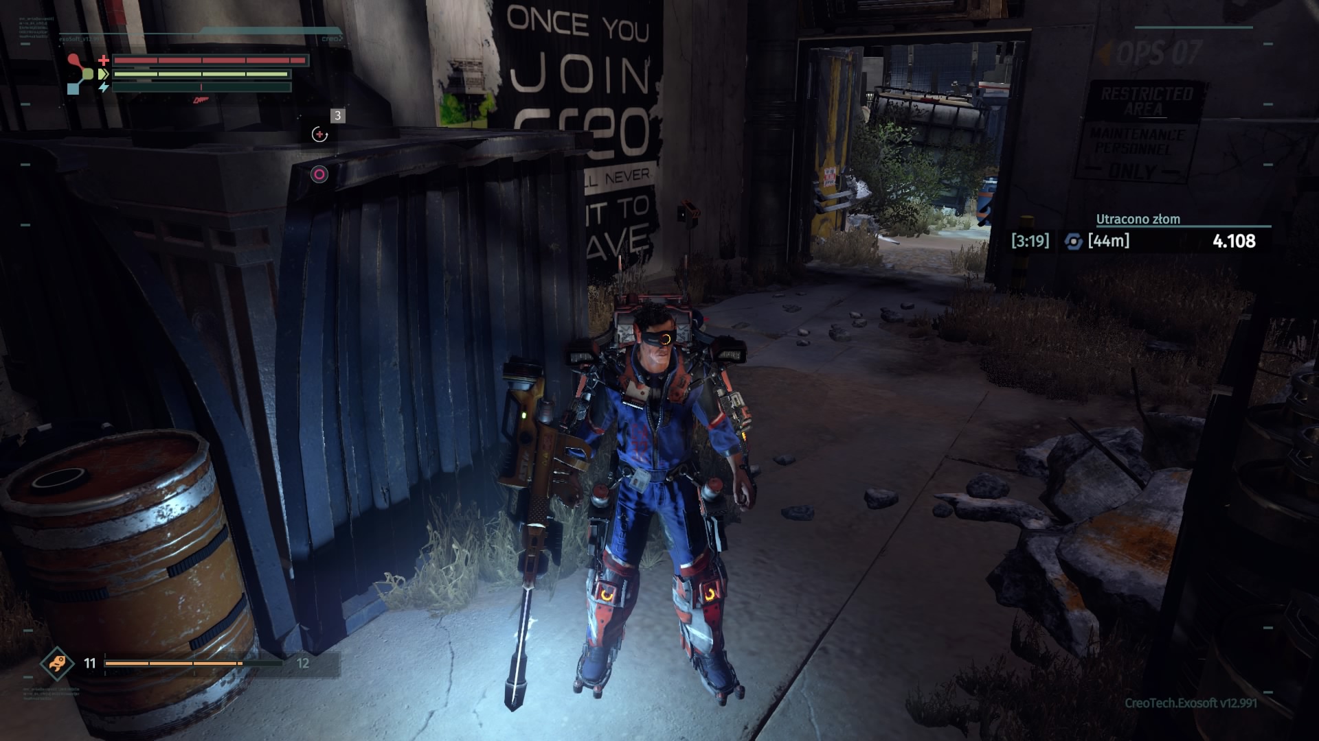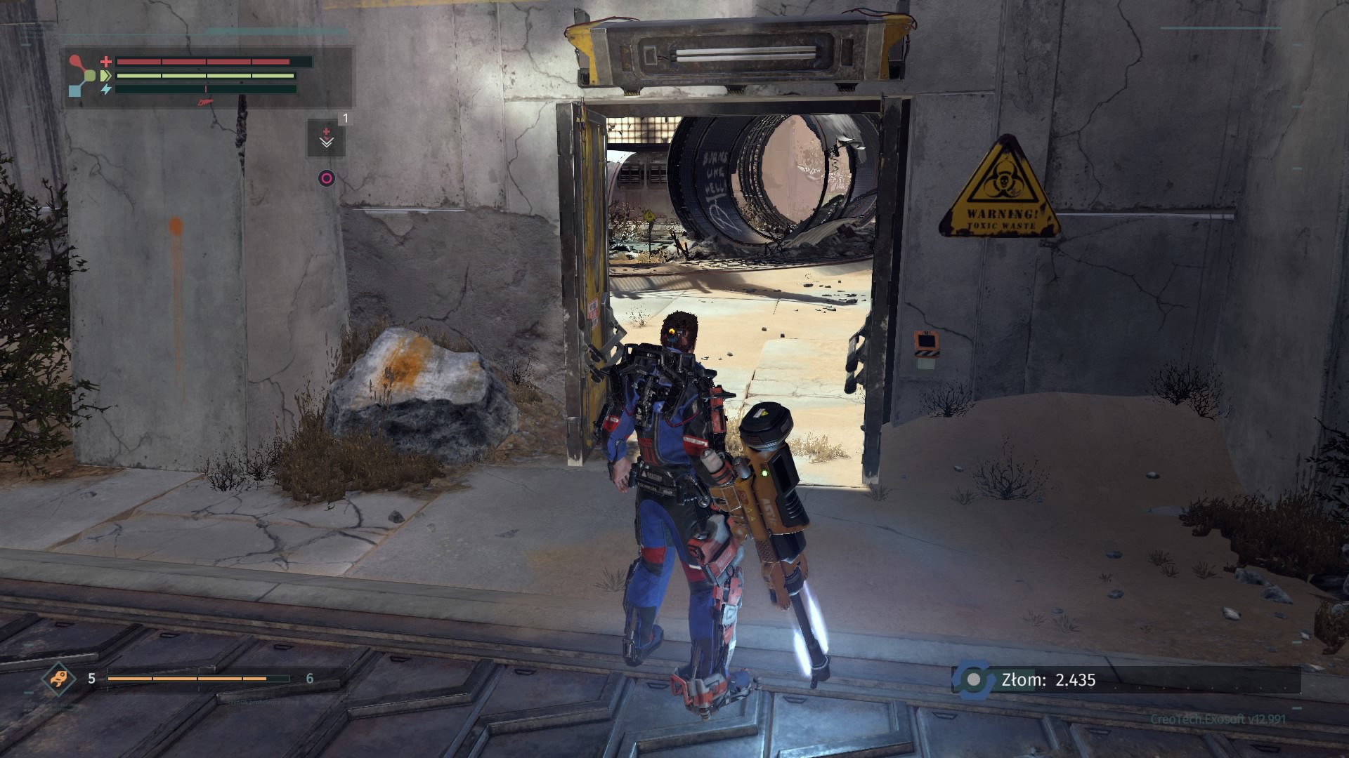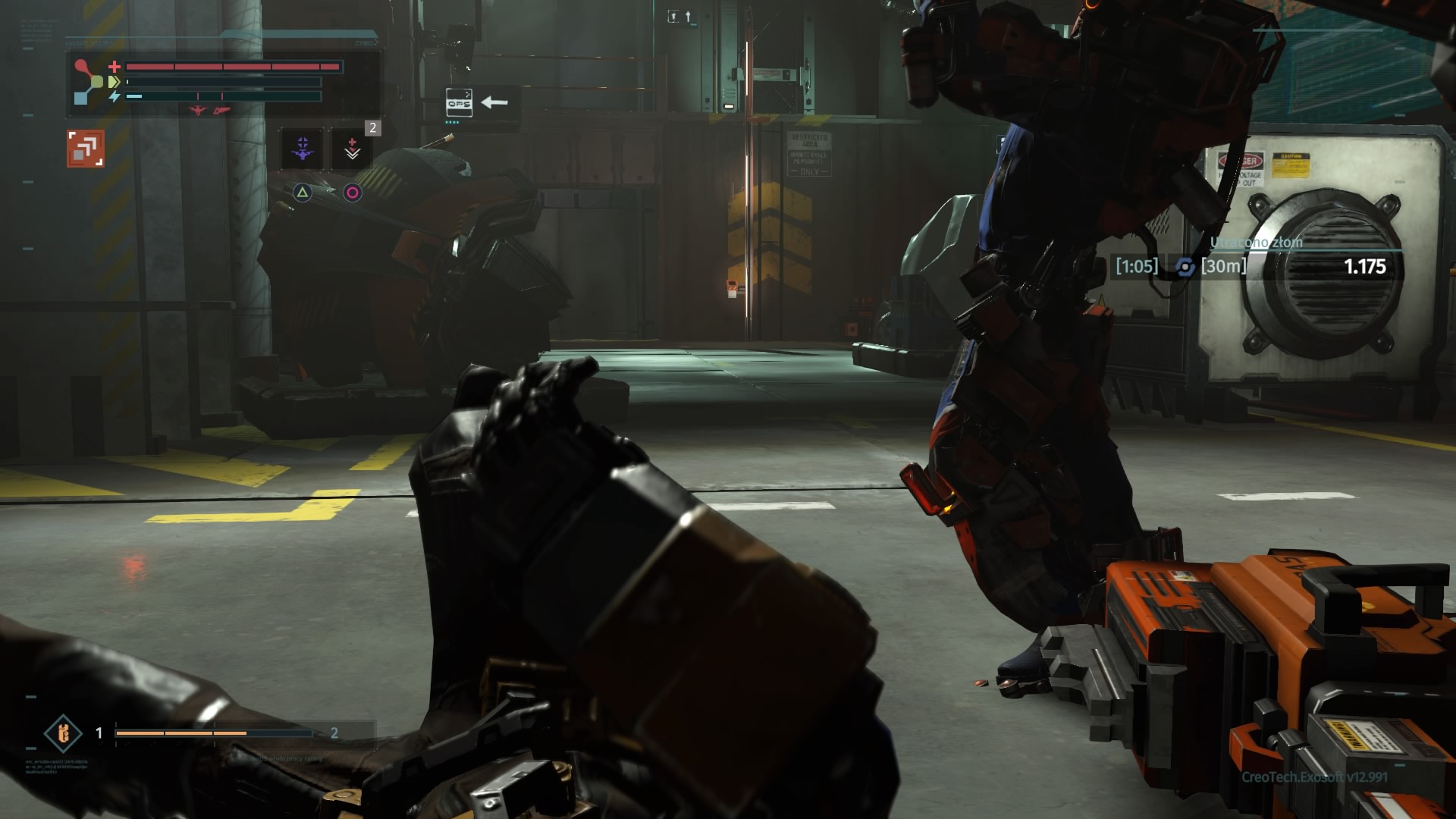 Historia w The Surge nie jest niestety wybitna. Stanowi zaledwie element spinający przechodzenie między lokacjami. Muszę przyznać, że mnie nie wciągnęła, a do grania w produkcję Deck13 skłaniała mnie mechanika rozgrywki. Ta bowiem naprawdę potrafi wciągać. Opisując ją, najlepiej określić ją jako przyszłościowe Dark Souls. Osoby, które spędziły godziny z wymienionym tytułem poczują się w The Surge jak w domu. Zostało tu zachowane niemal wszystko, czego doświadczaliśmy przy serii Dark Souls. Począwszy od wysokiego poziomu trudności. Należy się na to przygotować. The Surge nie prowadzi gracza za rączkę. Wymaga opanowania walki albo umiejętnego unikania ewentualnych zagrożeń, na które jesteśmy jeszcze nieprzygotowani. Przeciwnicy są w stanie jednym lub dwoma ciosami zabrać nam sporą część zdrowia, zwłaszcza na początkowych etapach. Musimy więc rozwijać postać. Dokonujemy tego na dwa sposoby. Pierwszym z nich jest rozwijanie rdzenia egzoszkieletu. Można go określić jako swego rodzaju poziom postaci. Części złomu, które znajdujemy jako wolno-leżące znajdźki i elementy wypadające z pokonanych oponentów służą nam do zwiększania poziomu rdzenia Warrena (jedynie w centrum medycznym) oraz tworzenia i ulepszania wyposażenia – broni, korpusu, rąk, nóg i tak dalej. Większy poziom rdzenia pozwala montować implanty (stałe bonusy postaci) i przeciążać bardziej wymagające obwody zabezpieczeń, otwierając nam wejście do nowych lokacji. Jak wspomniałem, w grze występuje także system wytwarzania przedmiotów. Posiadając odpowiedni schemat (odnajdywany na zasadzie takiej, jak sprzęt) jesteśmy w stanie stworzyć lepszy oręż, czy uzbrojenie. Trzeba jednak mieć do tego odpowiednią liczbę określonych części mechanicznych i zwykłego złomu. Ten ostatni stanowi w The Surge walutę. Każda śmierć Warrena pozbawia go zdobytych do tej pory, nie zdeponowanych części złomu. Po odrodzeniu się w centrum medycznym mamy kilka minut na dotarcie do punktu, w którym zginął i odzyskanie waluty.