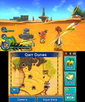 Na pustyni znajduje się sporo różnych, wypełnionych zagadkami jaskiń. Ich ukończenie zazwyczaj wymaga od nas wybrania odpowiednich postaci, posiadających potrzebną umiejętność specjalną. Dzięki opcji Aqua Gates w dowolnym momencie możemy powrócić do oazy, dzięki czemu w razie potrzeby można łatwo zmienić postacie znajdujące się w naszym zespole