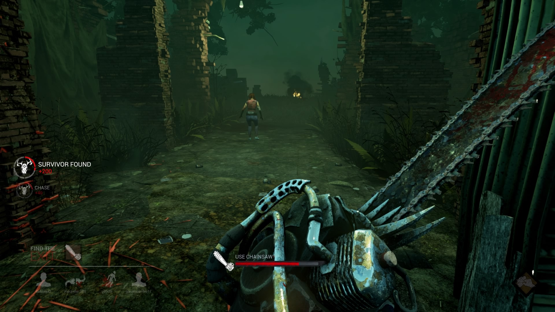 Jak już wspomniałem w nagłówku Dead by Daylight, to gra asymetryczna, rozgrywka została przygotowana dla pięciu osób. Jeden gracz wciela się w psychopatę, a czterech pozostały w bezbronnych uciekinierów. Serwery gry zaskakująco nie świecą pustakami, rozgrywka jest szybko wyszukiwana zarówno, gdy chcemy grać psychopatą, czy ocalonym. Miłym zaskoczeniem był dla mnie fakt, że w zależności od wyboru strony na rozgrywkę patrzymy całkiem inaczej. Morderca ma tylko tryb FPP (z pierwszej osoby) natomiast czterech ocalonych widzi swojego bohatera z widoku trzeciej osoby (TPP), co już na początku daje im znaczną przewagę na starcie. Ocaleni nie dysponują żadnym arsenałem broni, ich jedyną nadzieję na ucieczkę jest współpraca.