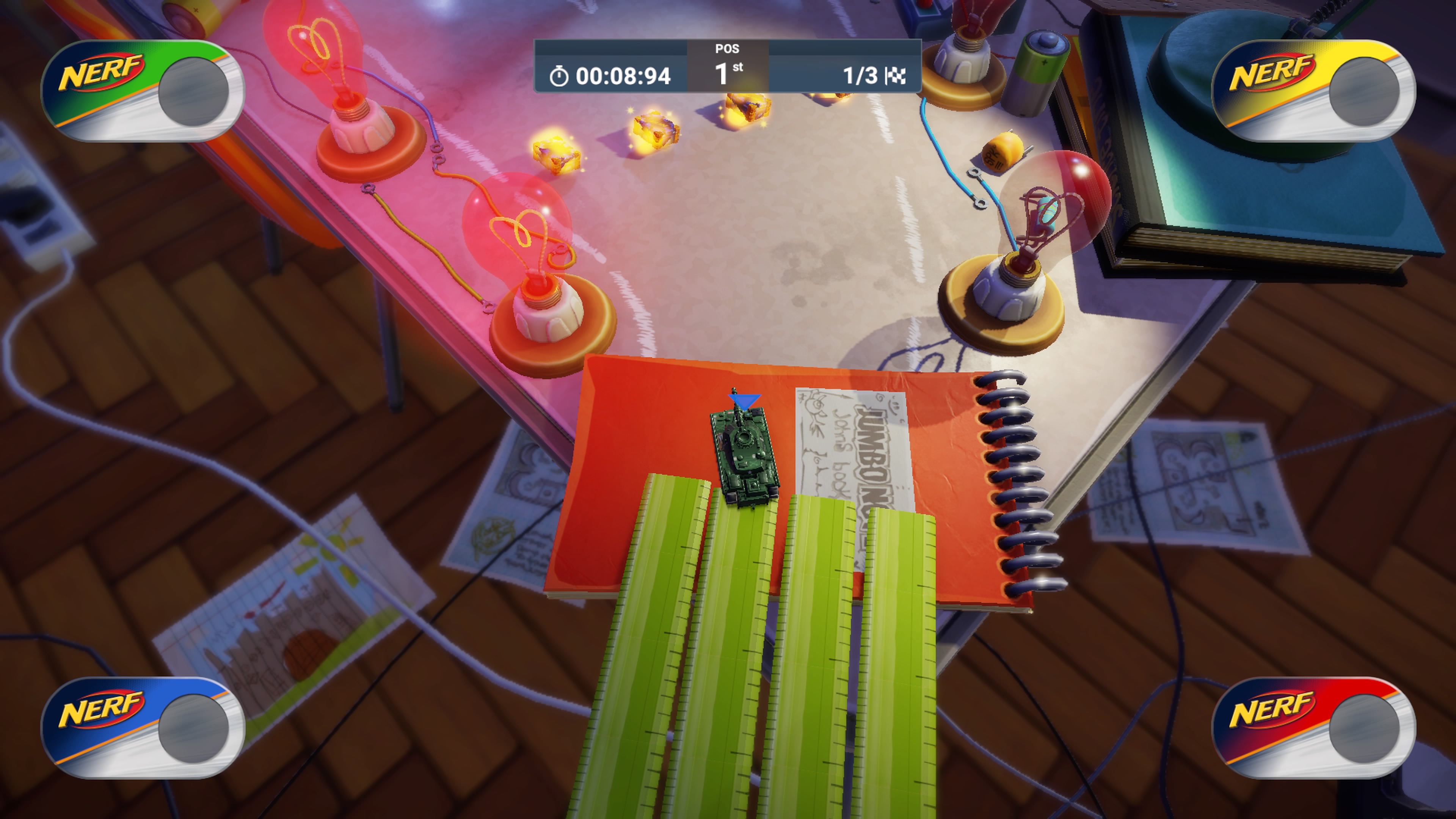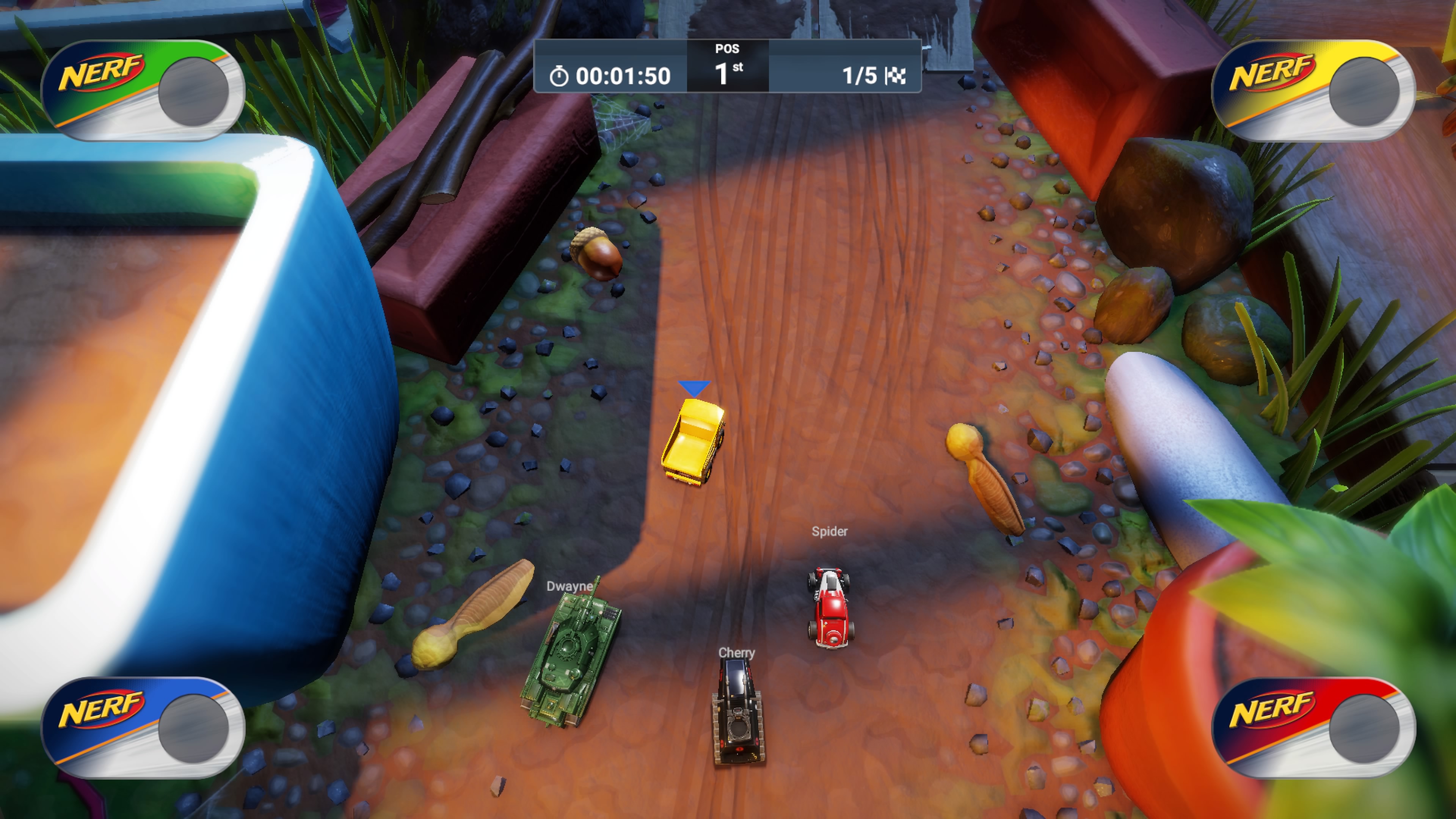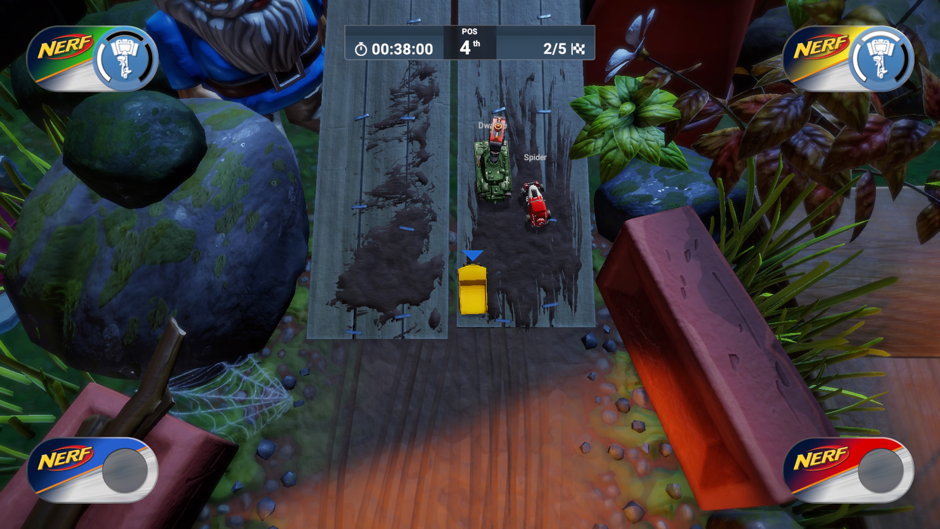 Szkoda tylko, że nie znajdziemy ich tutaj wiele. Tak naprawdę po godzinie, dwóch przejedziemy już wszystkie trasy. I choć są one śliczne to nie zmienia to faktu, że szybko może wkraść się nuda. To samo można powiedzieć o broniach, których używamy w czasie wyścigu. Są tutaj tak naprawdę trzy rodzaje – młot, karabin i bomba. Gdzie są szczypce? Gdzie plama oleju? Brakuje tutaj większej ilości broni, niestety.