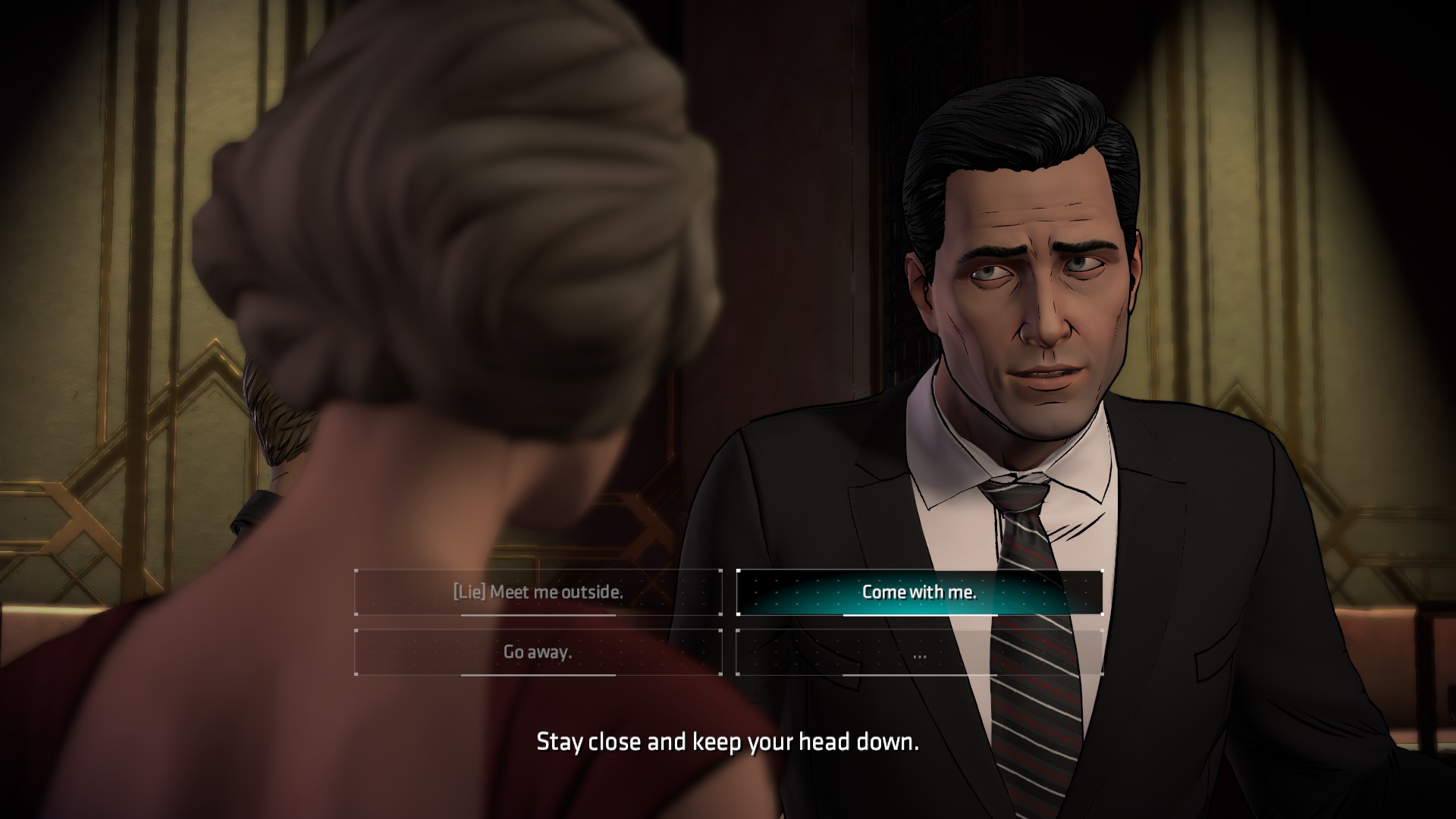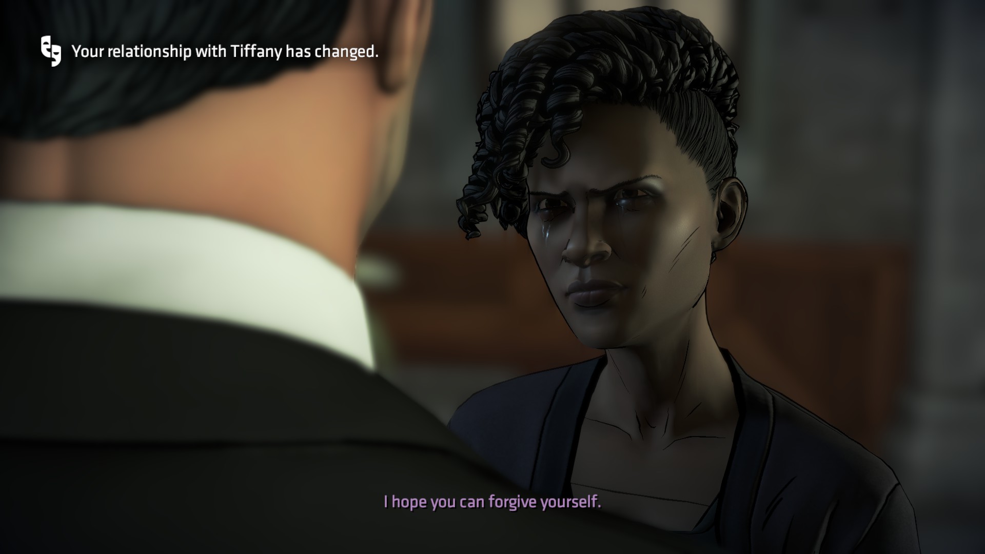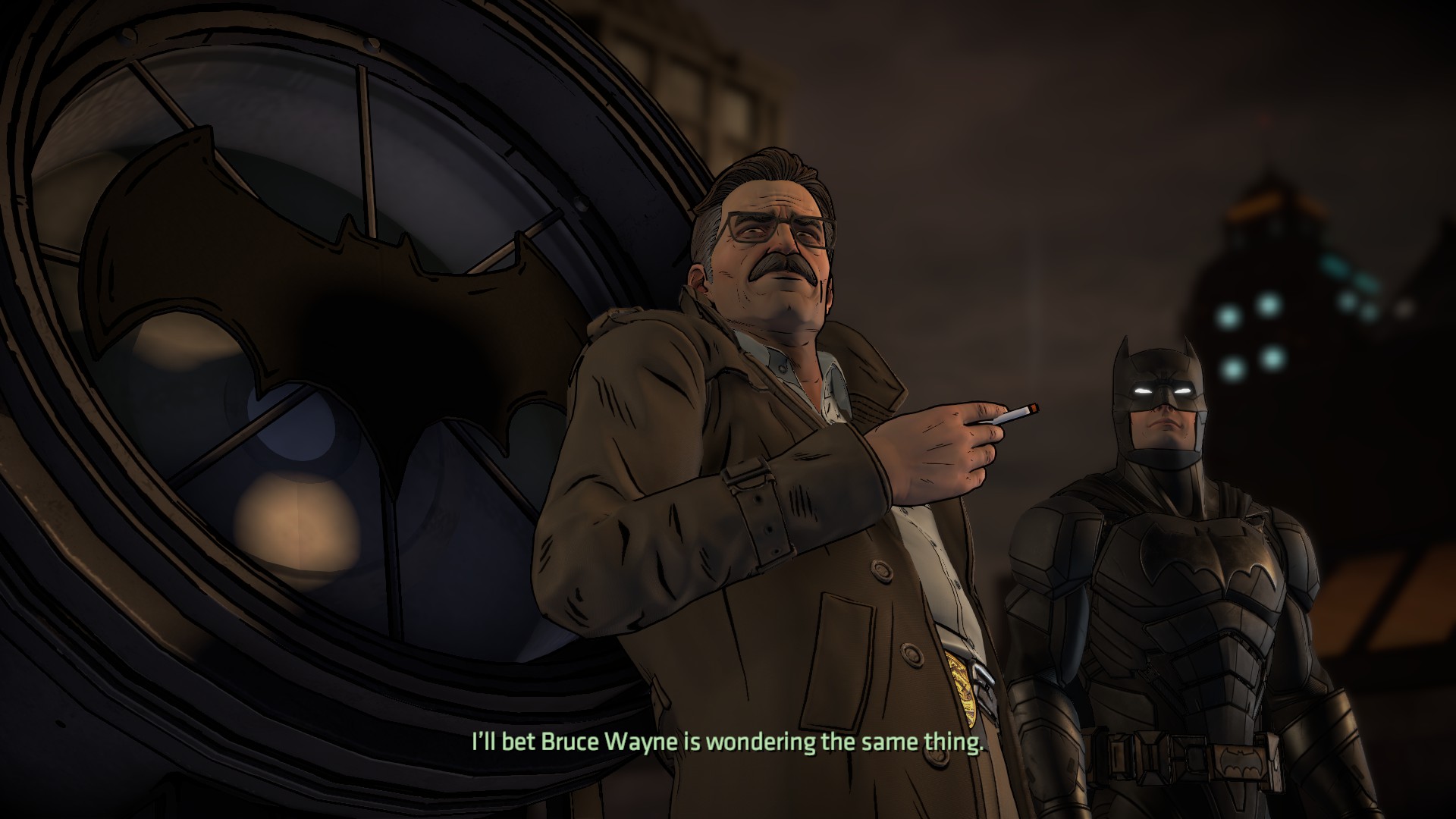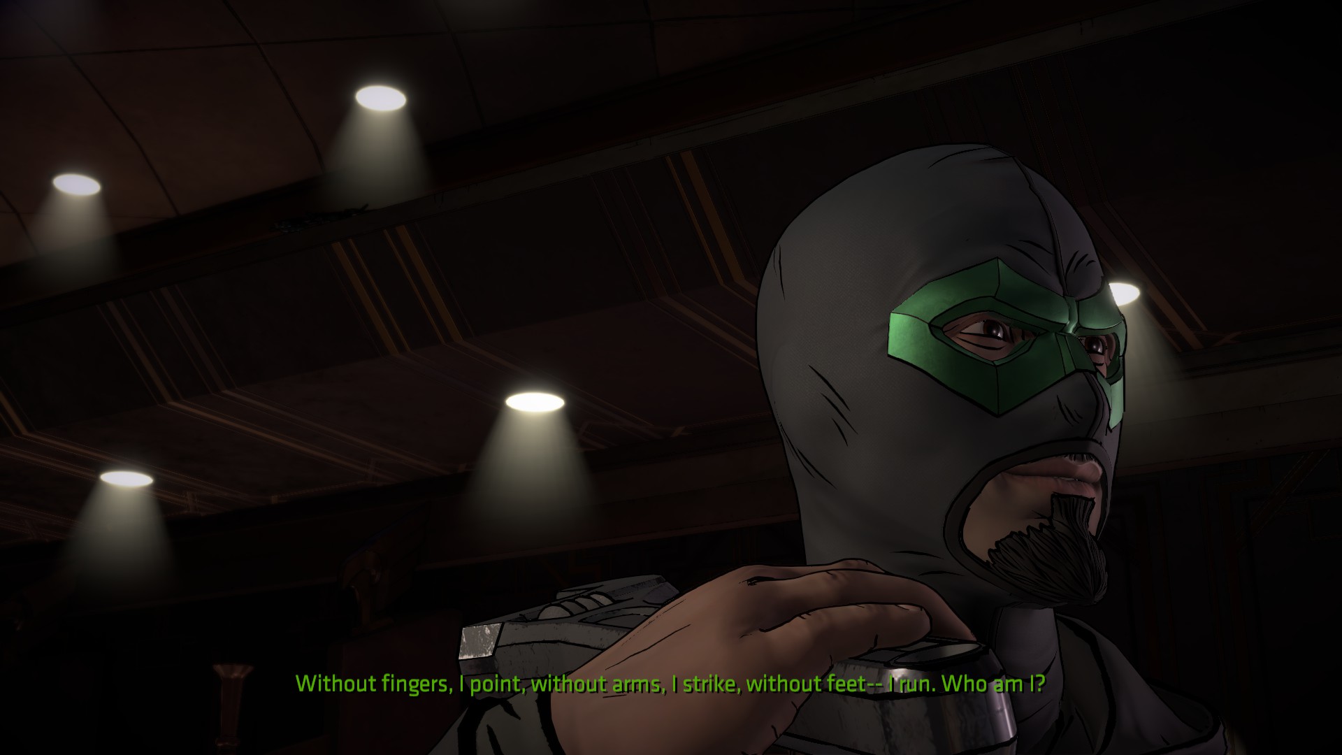 Bruce Wayne jest ścigany przez duchy przeszłości – prawda o jego rodzicach ciągle się za nim ciągnie, a na domiar złego powraca postać, która uważa, że Bruce ma u niej dług – John Doe. Jakby jeszcze tego było mało, ginie bardzo ważna dla bohatera postać, co odbija się na jego relacjach z innymi osobami i z pewnością, znając Telltale Games, może mieć później wpływ na historię. Co mnie zaskoczyło, to poważna, ciężka atmosfera historii. Kojarzy mi się ona, podobnie jak pewne urządzania, z filmem “Piła” a, na szczęście, są dobrze uzasadnione. Fabuła w tym Batmanie jest naprawdę przemyślana.