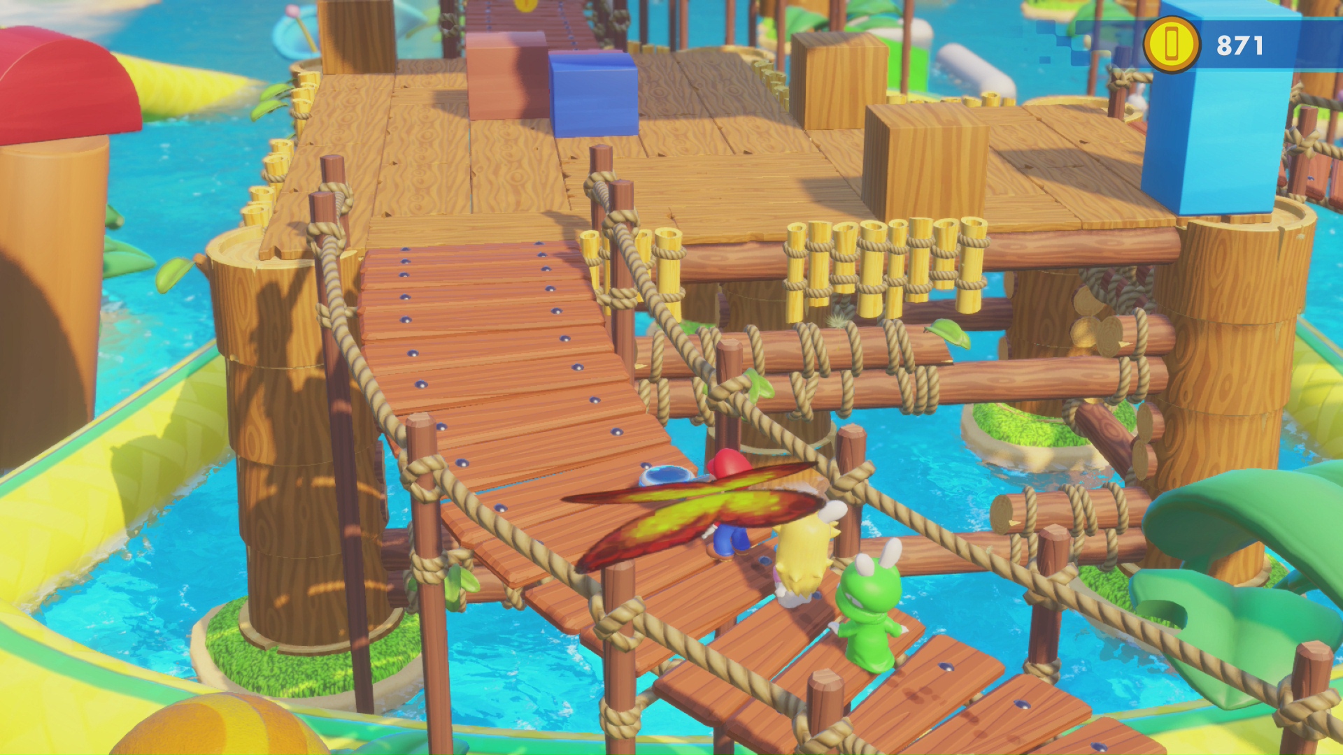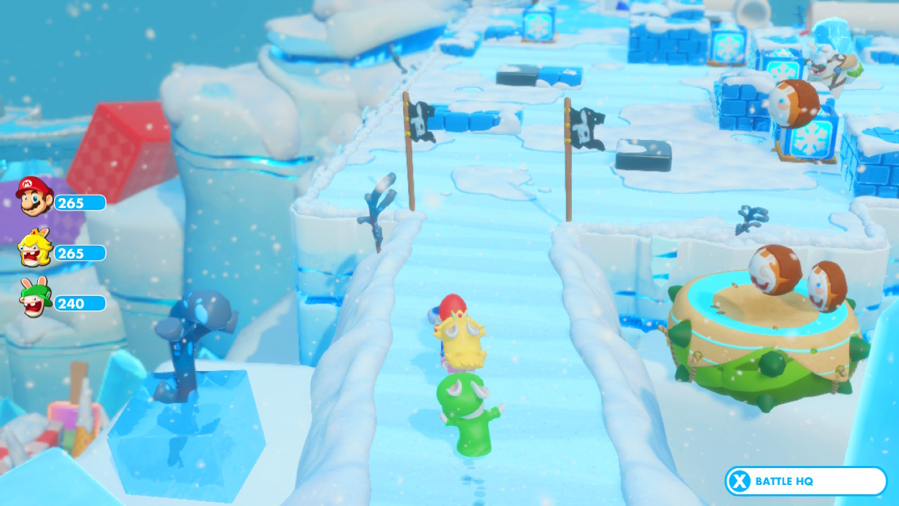 W pierwszym kontakcie gra może się wydawać prosta, ale im dalej tym bardziej skomplikowanie się robi. Jak już wspominałem postaci i bronie mają swoje statystyki, niektóre mają też efekty dodatkowe (zamrożenie, podpalenie itp.). Rozwijamy umiejętności naszych bohaterów, kupujemy lepsze bronie. Do tego dochodzą różne typu przeciwników, każdy ze swoimi mocnymi i słabymi stronami. Gra wydaje się dla mnie idealnym tytułem dla kogoś, kto nie ma doświadczenia w grach strategicznych i chciałby spróbować. Mario + Rabbids nauczy go odpowiedniego myślenia, zarządzania i podejścia. Potem będzie można usiąść do czegoś bardziej skomplikowanego. To według mnie też świetny tytuł by zapoznać młodszych graczy z tym gatunkiem. Dzięki bardzo przystępnej oprawie tytuł jest wręcz idealnie stworzony dla najmłodszych.