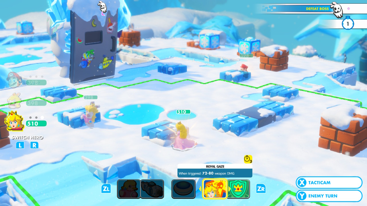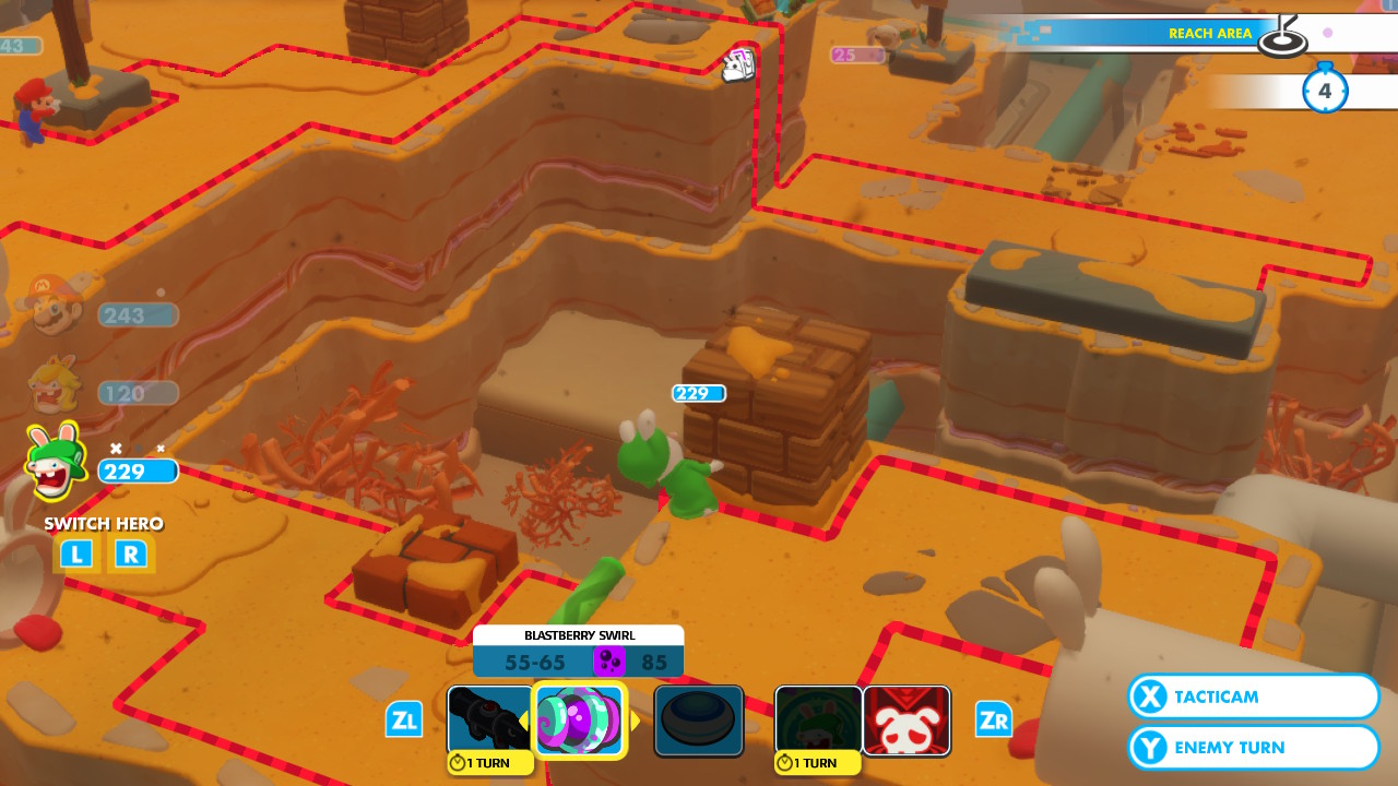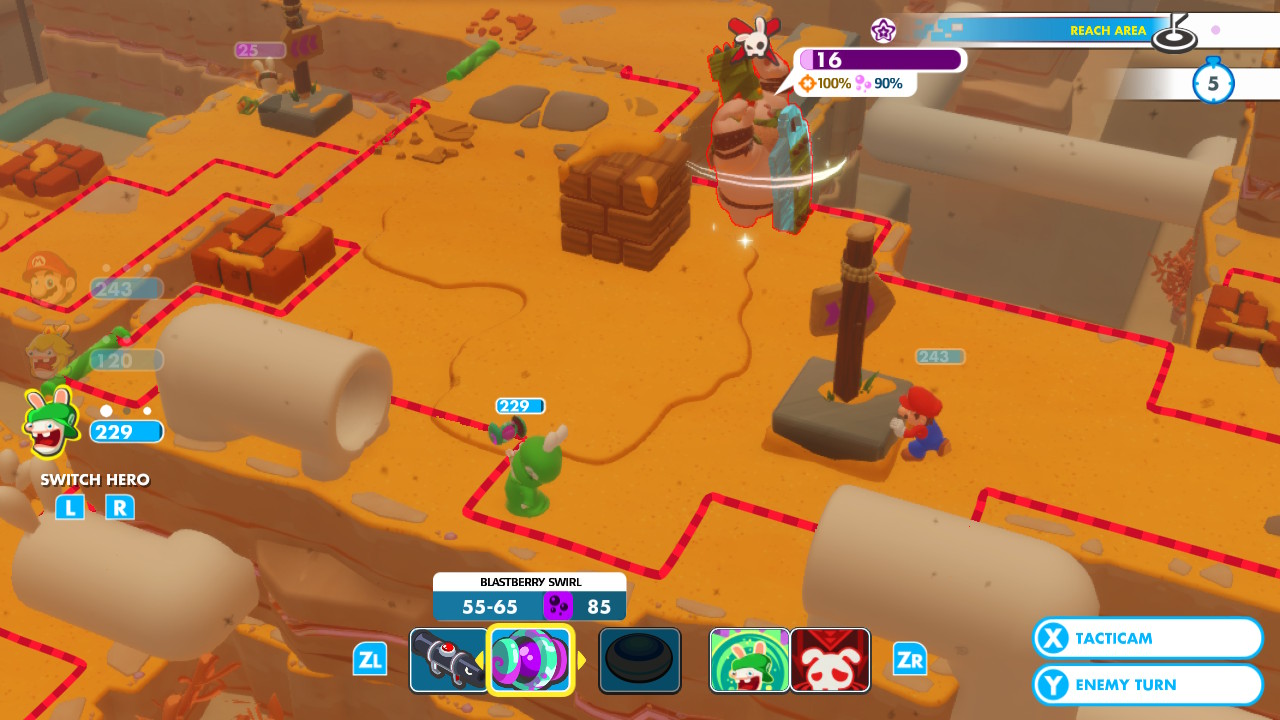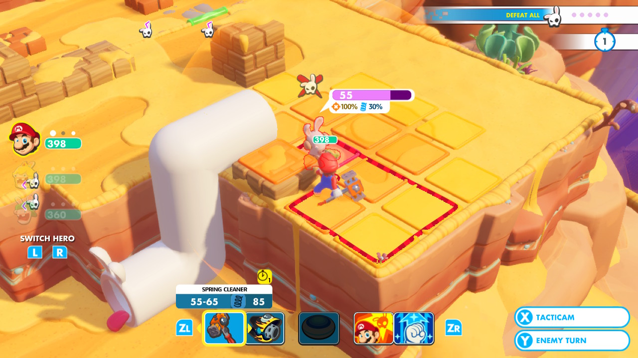 Poza eksploracją w każdym etapie czeka nas kilka walk. I tutaj odkrywamy podobieństwo z serią XCOM, bowiem Mario + Rabbids to taktyczna gra strategiczna. Bardzo rozbudowana, warto dodać. Pod warstwą wizualną kryje się system na tyle dopracowany, że spokojnie może służyć jako pierwsze zaznajomienie gracze z tego typu produkcjami.