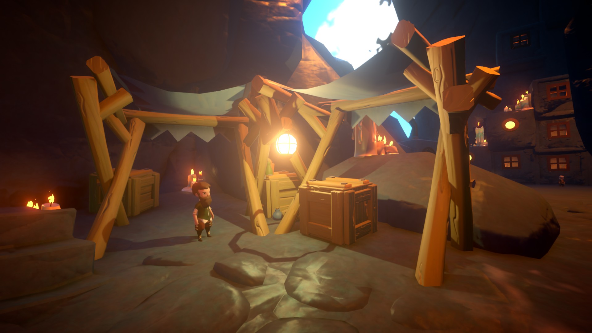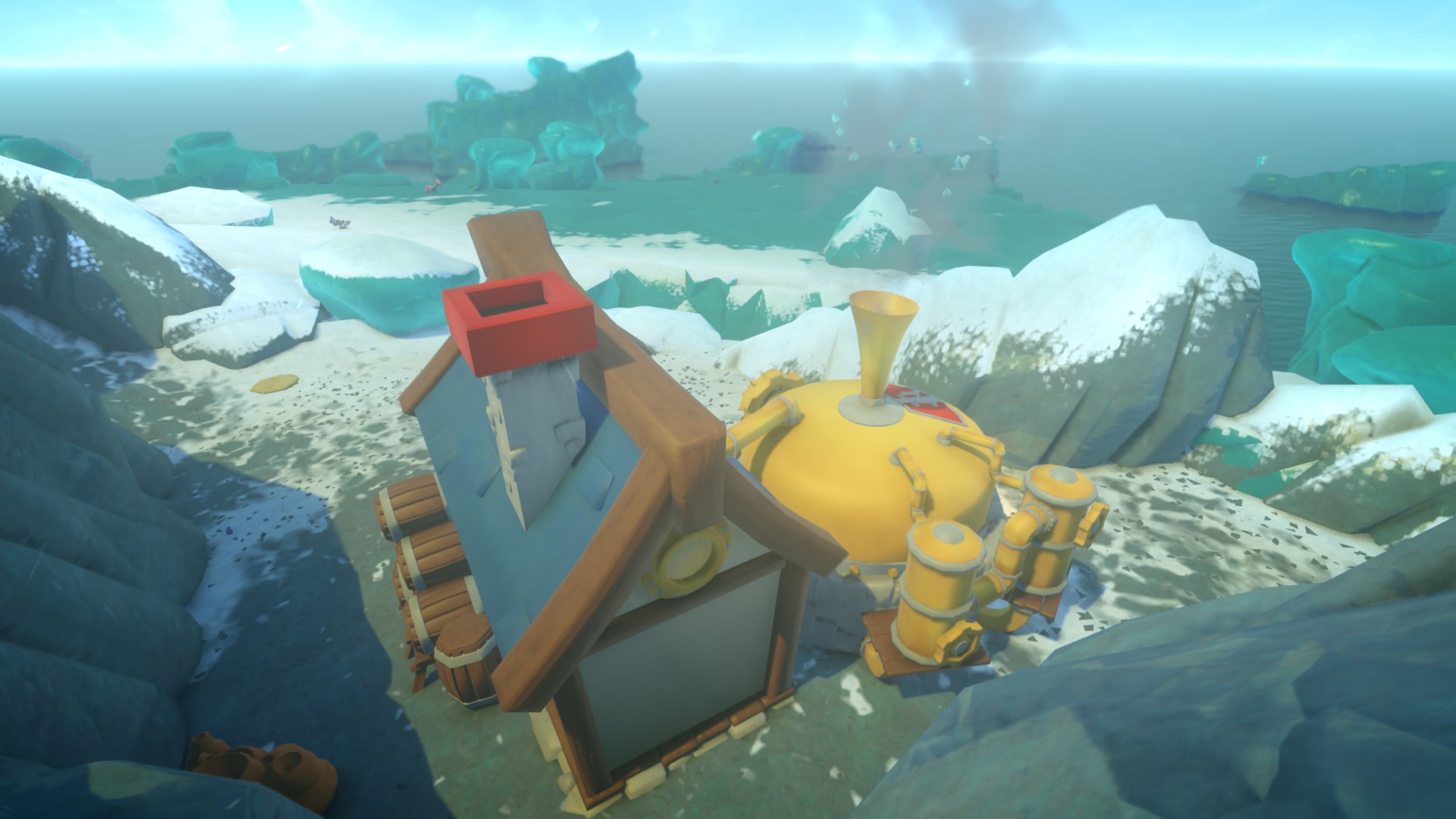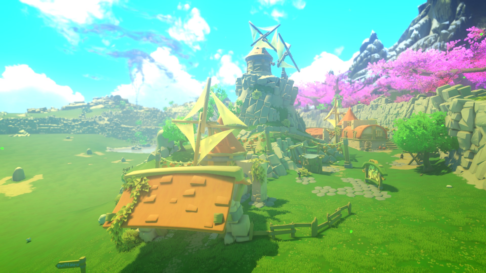 Po tym niewielkim wstępie wydostajemy się na polanę i naszym oczom ukazują się rozległe tereny. Od tej chwili możemy praktycznie robić wszystko. Sama scena, montaż i ujęcia bardzo przypominają wyjście Linka z jaskini w początkowych momentach ostatniej Zeldy. To nie jedyne podobieństwo, gdyż w Yonder również ogranicza nas tylko obszar mapy. Możemy próbować się wspiąć w miejsca, gdzie teoretycznie nie powinniśmy trafić. Możemy zwiedzić każdy zakątek z samej ciekawości odkrywania. Nie musimy się martwić o poziom żyć czy ekwipunek – gra nie zawiera żadnych elementów przemocy ani nawet podstawowych statystyk. Przetrwanie jest tam nam ofiarowane w standardzie, a system wytwarzania przedmiotów jest miłym dodatkiem dla tych, którzy chcieliby z tej gry wyciągnąć więcej.