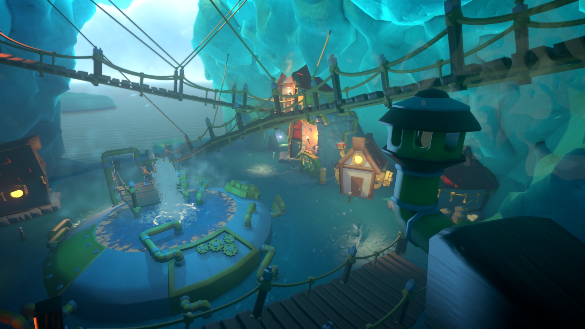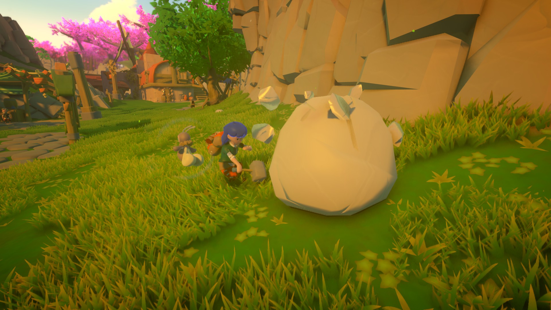Wspomniałam wcześniej, że nie znajdziemy w Yonder żadnego systemu walki. Każde stworzenie w tej produkcji jest do nas pokojowo nastawione, nie uda nam się umrzeć nawet gdy postanowimy spaść z wysoka. Nasz awatar otworzy wtedy parasol i poszybuje w dół bez szwanku. Jedyne momenty, gdy zobaczymy czarny ekran i się odrodzimy nastąpi, gdy zbyt mocno się zanurzymy. Nasza postać jest równie odporna na wodę, co główny bohater Red Dead Redemption.