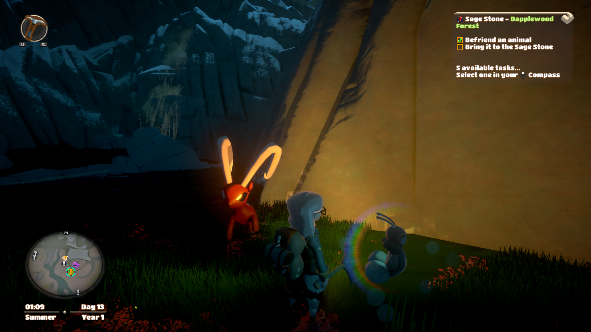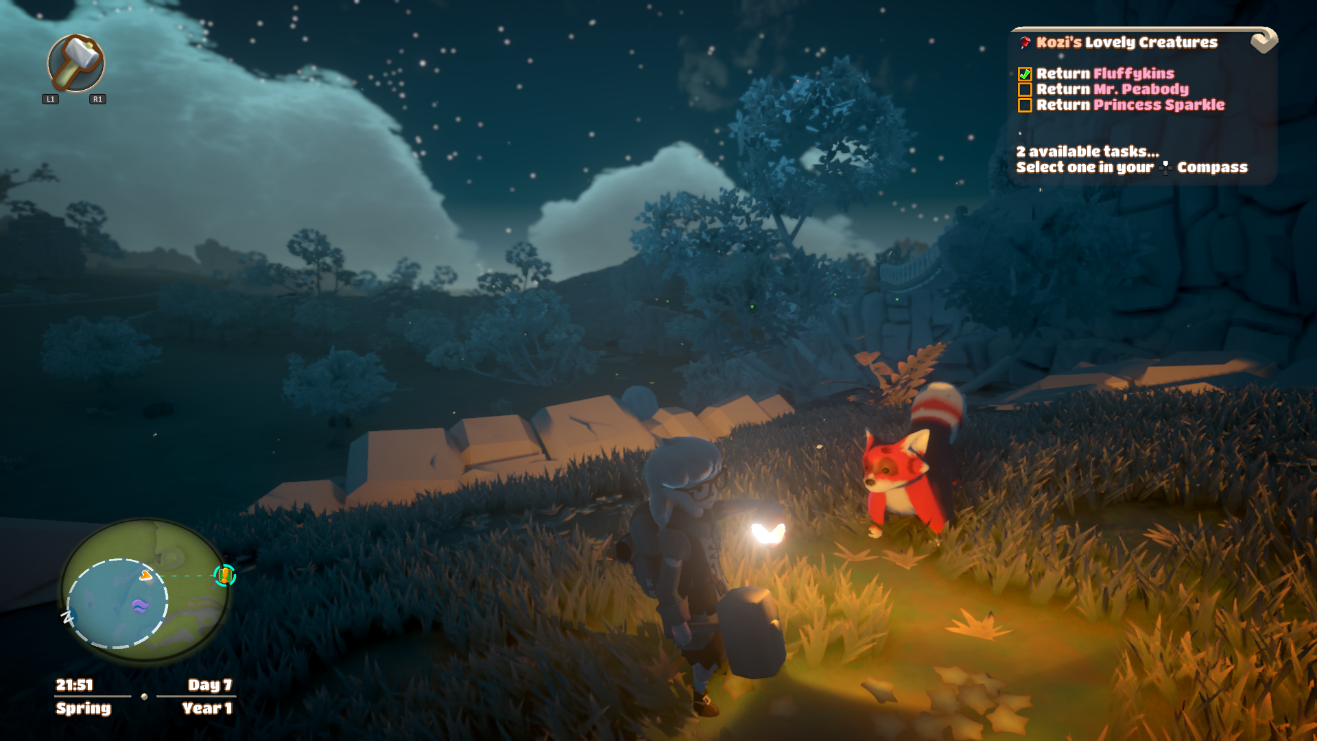 Uważam to za największą zaletę tej gry, że jest w stanie sprawić by dorosły gracz poczuł się dzieckiem i zaznał iście dziecięcej ciekawości. Oczywiście występują w Yonder pewne ułatwienia. Zawsze mamy przy sobie magiczny kompas, który wskazuje nam drogę do celu. Tyle, że zdarzają się zdania, gdzie jest on zupełnie bezużyteczny. W momencie, gdy podejmujemy się odnalezienia 55 zaginionych kotów kompas nie poda nam położenia żadnego z nich. Nie wyjaśni też, że jedne z nich pojawią się na mapie tylko w nocy, albo można je dojrzeć tylko na wiosnę i w lecie. Te wszystkie sekrety możecie odkryć jedynie sami poprzez obserwację lub dowiedzieć się o nich z przeprowadzanych z napotkanymi postaciami rozmów. Właśnie przez tak zaprojektowaną mechanikę zostałam z grą jeszcze długo poza wątkiem fabularnym i wycisnęłam z niej wszystko, co było możliwe. Bo udało jej się we mnie wzbudzić dziecięcą, nieposkromioną, ciekawość. Ciekawość świata, chęć odkrywania, którą najłatwiej zaobserwować u kilkuletnich szkrabów.