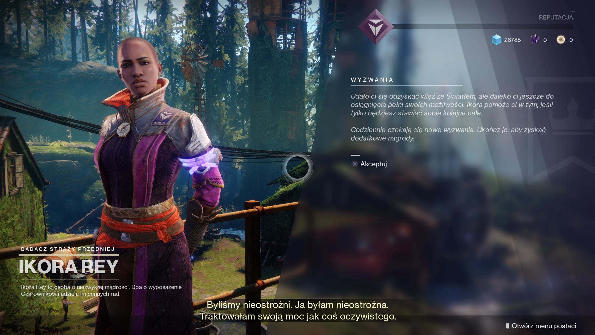 Przygoda w powyższych trybach sprawdza się do osiągnięcia 270 punktów mocy. Na tym etapie pozostaje nadal robienie heroicznych zadań publicznych, punktów zapalnych, ale teraz głowowym źródłem skarbów będą dla nas Nocne szturmy (Nightfall), najazdy (Raidy), tygodniowe wyzwania (kamienie milowe) oraz PvP (Trials of the Nine), których opisem zajmę się w dalszych częściach recenzji. Jeszcze tylko wspomnę, że od zdobycia 280 punktów mocy u Banshee-44 odblokujemy możliwość tworzenia legendarnych ulepszeń, którymi będziemy mogli dopakować bronie lub pancerze dodatkowymi pięcioma punktami mocy. Ważnym elementem będzie też nasycanie broni oraz pancerza. Nasycanie polega, pisząc krótko, na ulepszaniu jednego przedmiotu drugim, przy czym ten mocniejszy, ale zazwyczaj pospolitego gatunku tracimy. Czasami sytuacja może od nas wymagać, że będziemy przedmiot legendarny nasycać egzotycznym. Wtedy egzotyk nam przepada, ale ten legendarny zostaje nasycony jego mocą. Proces ten możemy zacząć u rusznikarza po ukończeniu kampanii, kiedy jesteśmy już w Wieży.