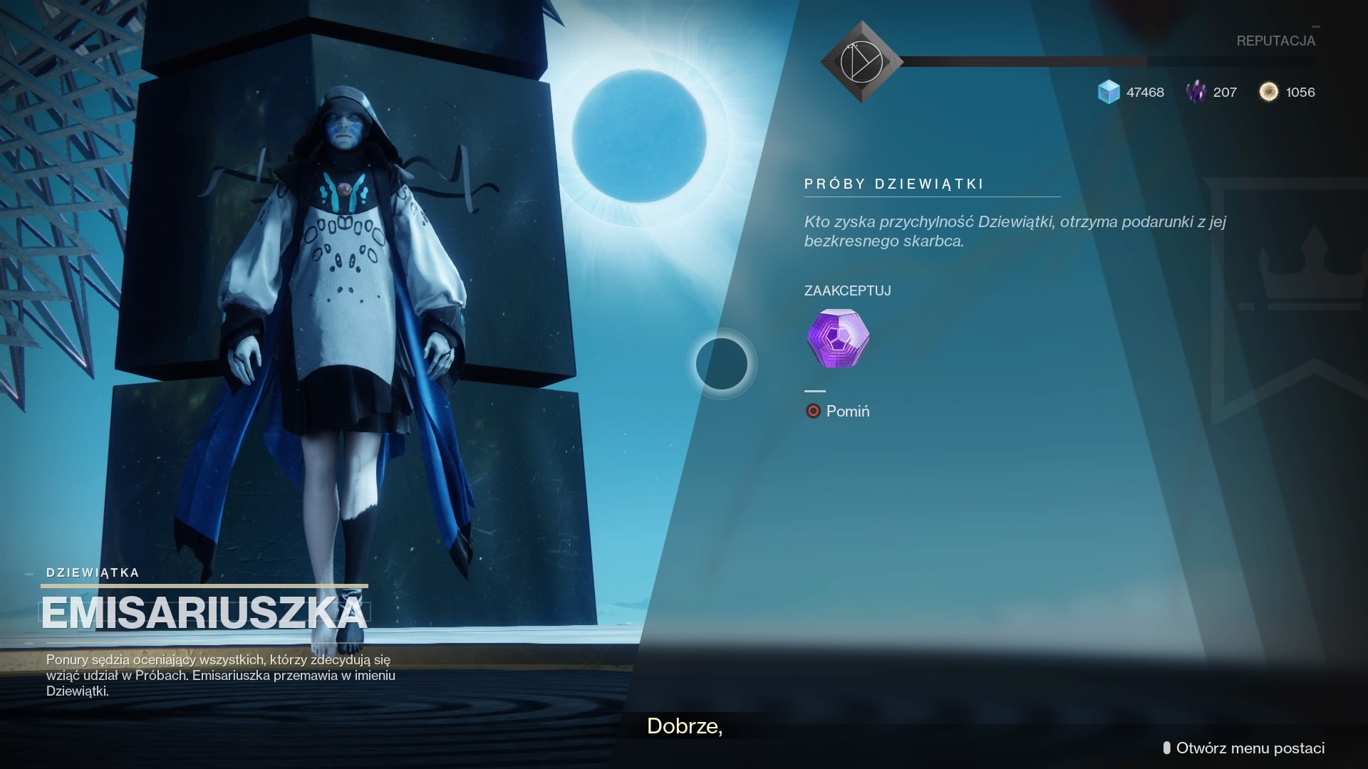 Trials of The Nine to nowe spojrzenie na Trials of Osiris z pierwszego Destiny. Próby Dziewiątki polegają na starciu dwóch drużyn w trybie odliczanie (podkładanie bomby) na nowej mapce. To zmagania kierowane do najlepszych graczy, poziom mocy nie ma tutaj znaczenia liczy się tylko skill oraz zgranie całego zespołu. Ekwipunek jest zablokowany, wiec cały mecz gramy z wyposażeniem, które wybraliśmy przed jego rozpoczęciem. Nagrody otrzymujemy za trzy, sześć i siedem zwycięstw, utrudnieniem jest fakt, że gdy przegramy trzeci mecz, to nasz postęp resetuje się i całą drogę do nagród musimy zaczynać od nowa. Trials of The Nine jest trybem PvP, w którym możemy zdobyć potężne wyposażenie oraz znacznie podniesiemy poziom mocy naszej postaci.