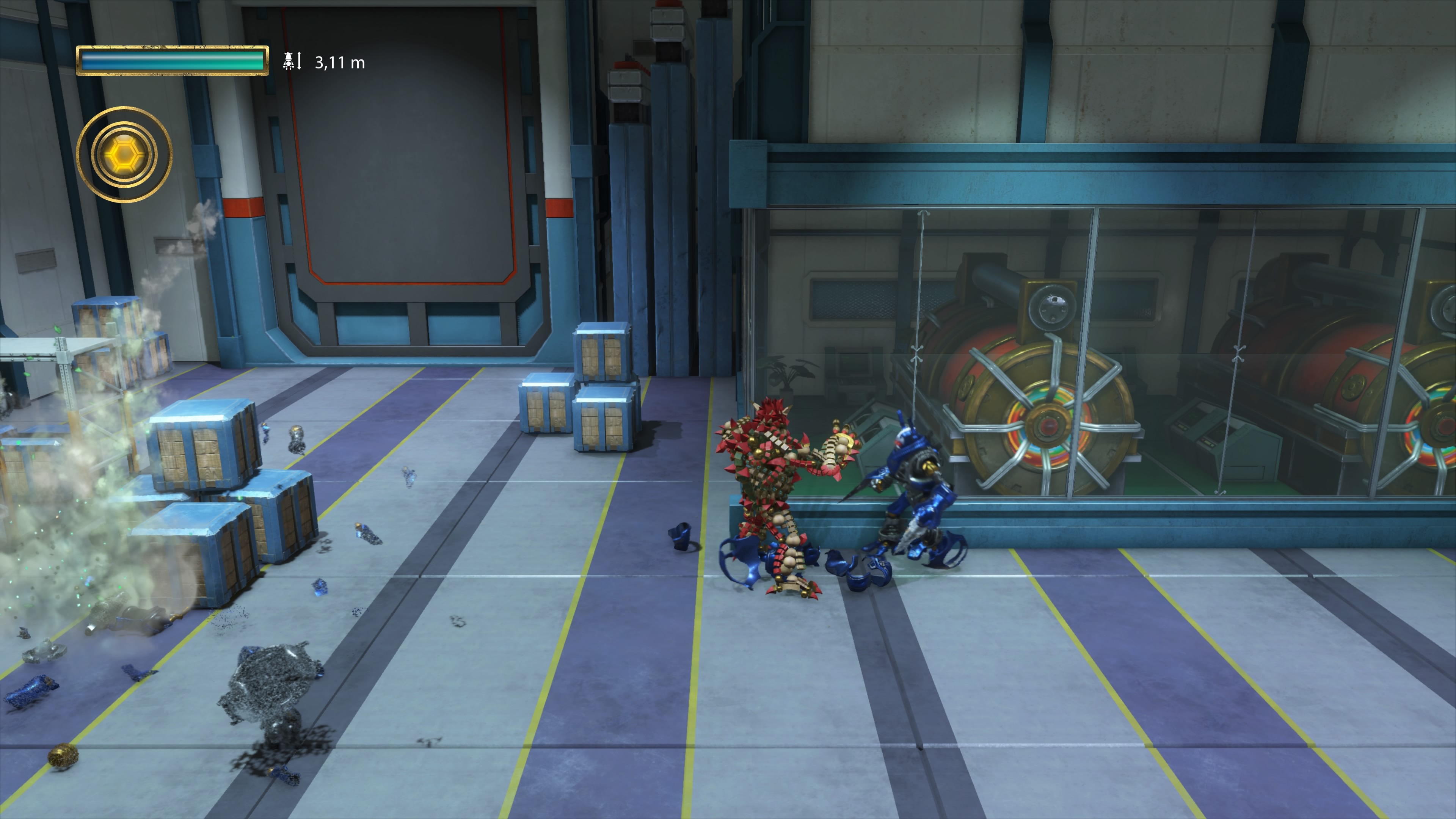 Etapy to zbiory korytarzy, które łączą większe areny z momentami platformowymi. Pod tym względem jest tu poprawnie. Są chowające się platformy, są skoki, które trzeba wykonać w odpowiednim czasie – platformówkowy standard. Jedyne co dość komicznie rzuca się w oczy to nasi współtowarzysze. Otóż pojawiają się oni często znikąd i to w miejscach, do których my musieliśmy dostać się skacząc nad kilkoma przepaściami. Cóż, najwyraźniej oni znają jakieś drogi na skróty.
