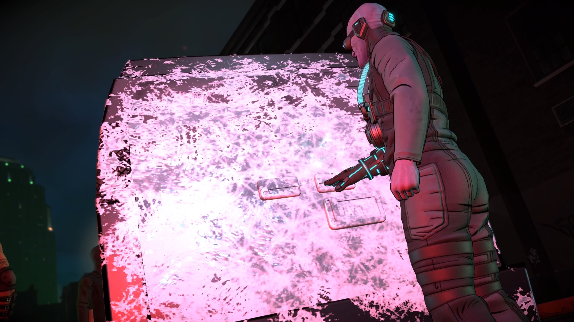 W Batman: The Enemy Within: The Pact nadal występują oczywiście sceny akcji. Nadal stanowią one mniejszość rozgrywki, ale dzięki temu mogły zostać należycie dopracowane. To wciąż właściwie interaktywne przerywniki filmowe, w których nasza rola sprowadza się jedynie do odpowiedniego wychylenia gałki analogowej i wciśnięcia stosownego przycisku. Nie mam jednak z tym problemu – scenki te ogląda się niesamowicie przyjemne, a umożliwienie nam podjęcia decyzji, jak pozbyć się danego przeciwnika – przykładowo, atakując go impulsem elektrycznym lub ciskając nim o stół – skutecznie maskuje ograniczone możliwości interakcji.