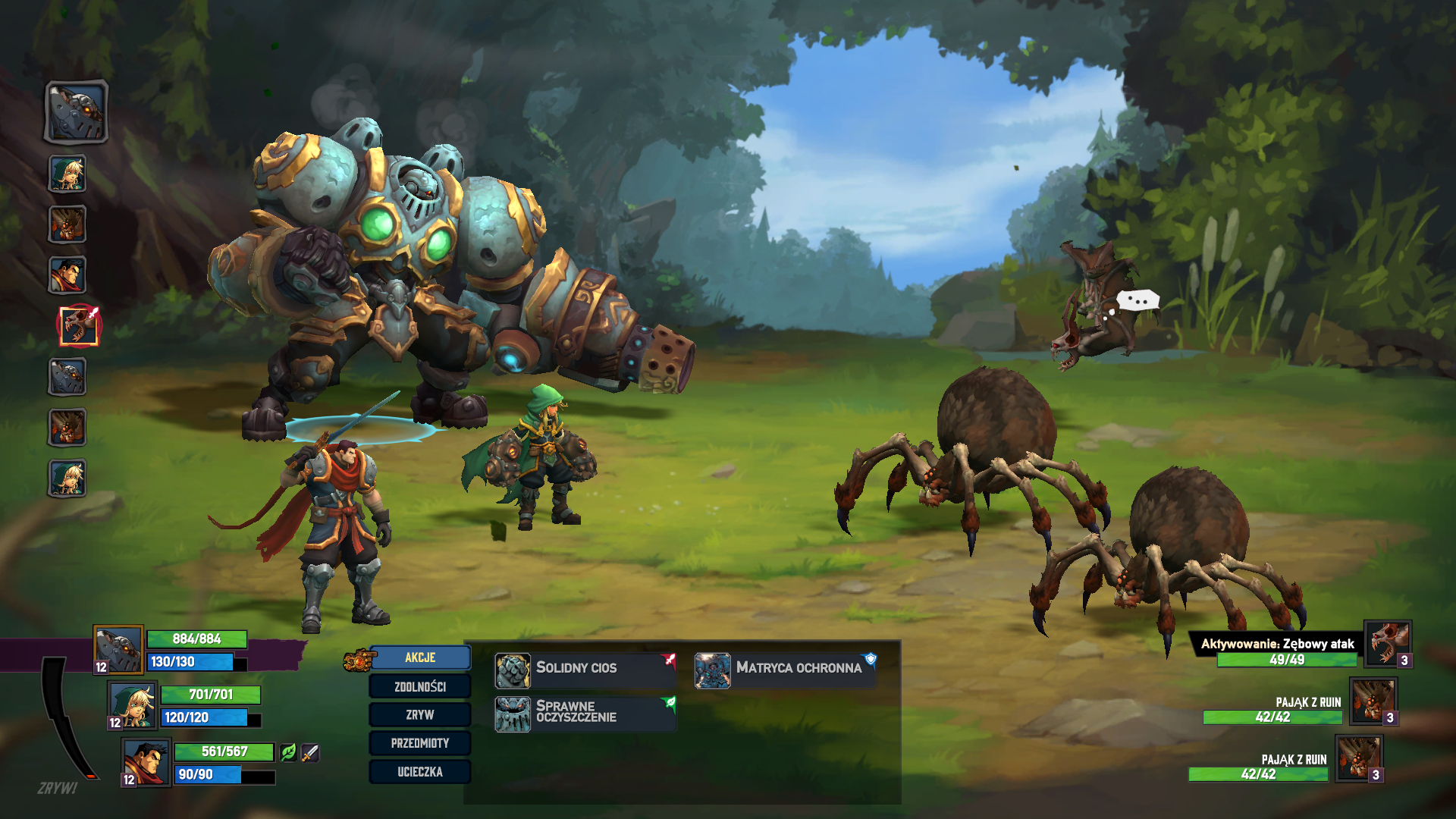 Poza historią spotkamy w niej też zadania poboczne, arenę gdzie możemy wygrać rzadkie przedmioty i kilka sekretów. Nie ma tutaj walk losowych, wybierając ścieżki widzimy co nas na nich czeka. Gdy już zdecydujemy się na walkę to spotkamy się ze znanym z innych produkcji systemem. Stajemy naprzeciwko przeciwnika i wybieramy nasze kolejne akcje. Przypomina to klasyczne jRPGi czy też serie Heores of Might & Magic. Walka jest bardzo taktyczna – bardziej skomplikowane ruchy lub czary wymagają nie tylko many, ale też poświęcenia kilku kolejek. Ważne jest też używanie obrony i innych akcji, które utrudniają wrogom życie – jak nakładanie na nich podpalenia, krwawienia, czy trucizny. Gra jak przystało na zachodnie RPG nie wymaga od nas farmienia doświadczenia i wielu godzin powtarzania pomniejszych walk. Ja jednak musiałam wrócić się do niejednego podziemia i zaliczyć je ponownie na wyższym poziomie trudności. W ten sposób zdobywałam cenne doświadczenie i zbierałam ekwipunek pozwalający mi na komfortowy postęp w fabule. Co ciekawe nawet wracając do poprzednich lokacji nie ma mowy o nudzie. Wybierając najwyższą trudność możemy liczyć na trochę inaczej wyglądający loch z ponownie zablokowanymi zagadkami.