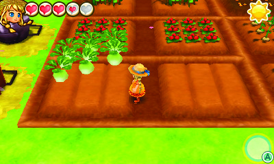 Zajmowanie się roślinami jest bardzo proste, wszystko opiera się po zasianiu głównie o ich regularne podlewanie, najlepiej co najmniej raz dziennie. Dostęp do wszystkich narzędzi oraz posiadanych nasion mamy z dostępnego pod przyciskiem R podręcznego menu. Prace na wirtualnej farmie potrafią w dalszej części gry zajmować całkiem sporo czasu. Z pomocą przychodzą ulepszenia przyrządów, które wymagają często ciężko dostępnych minerałów.