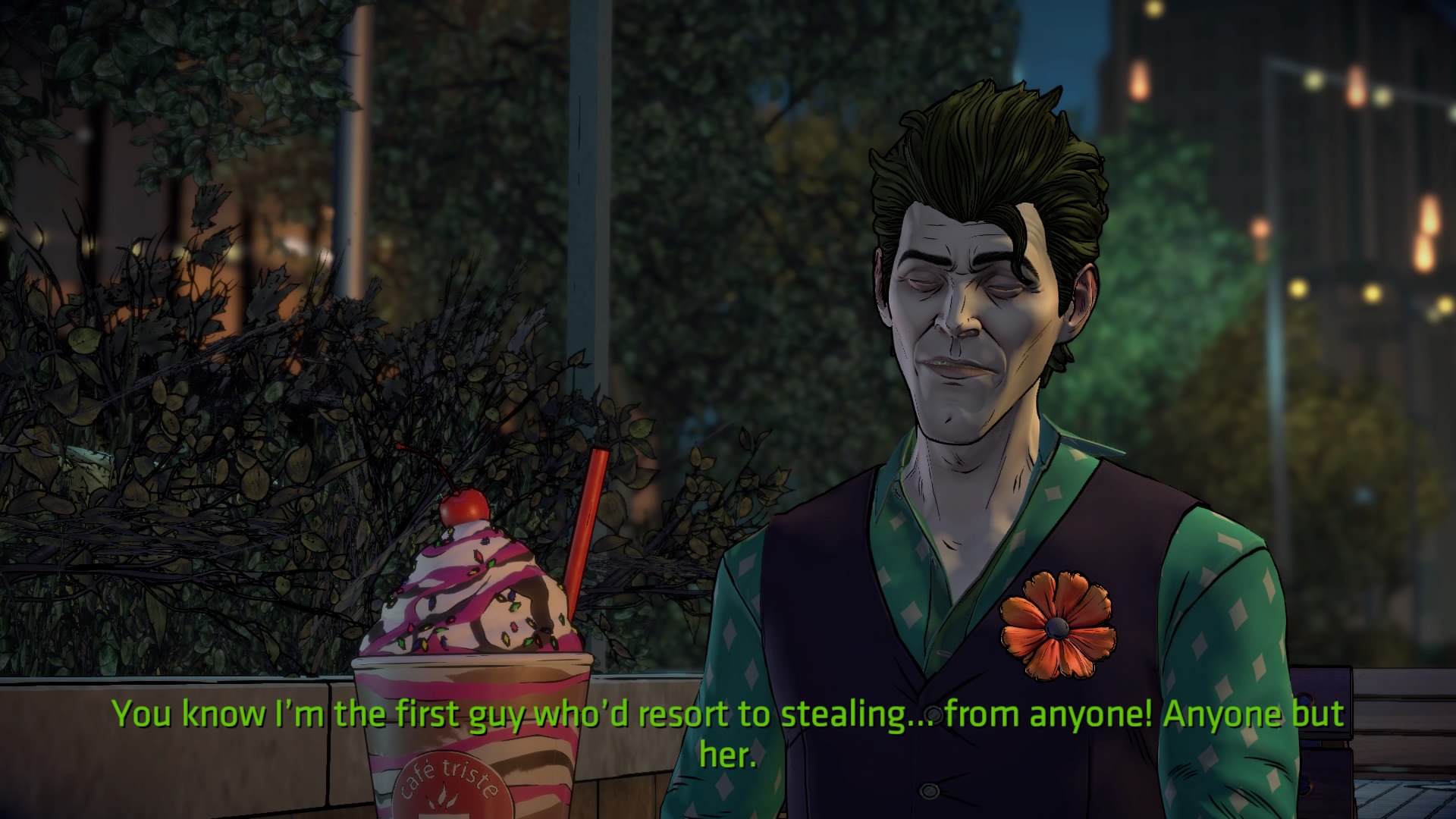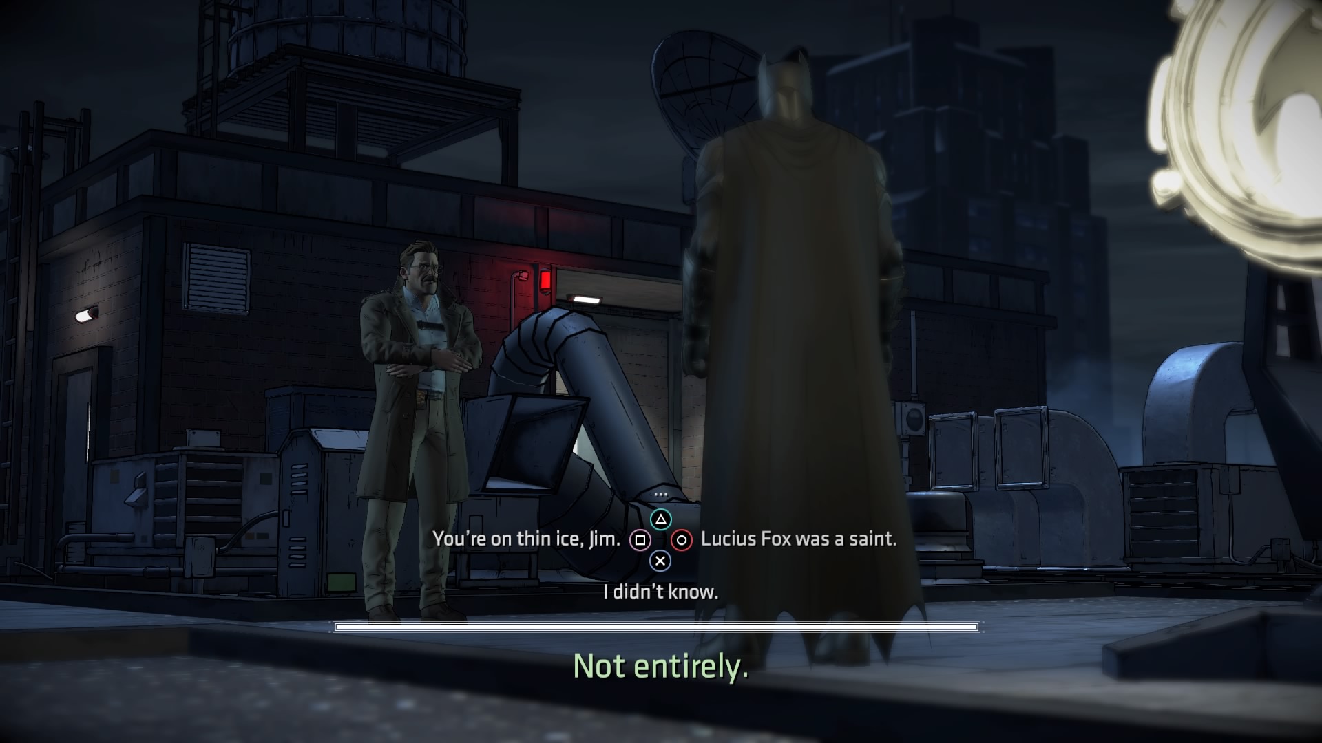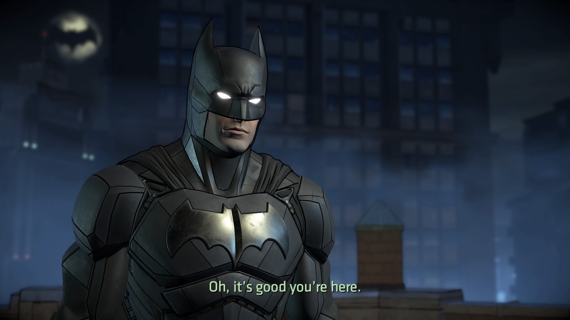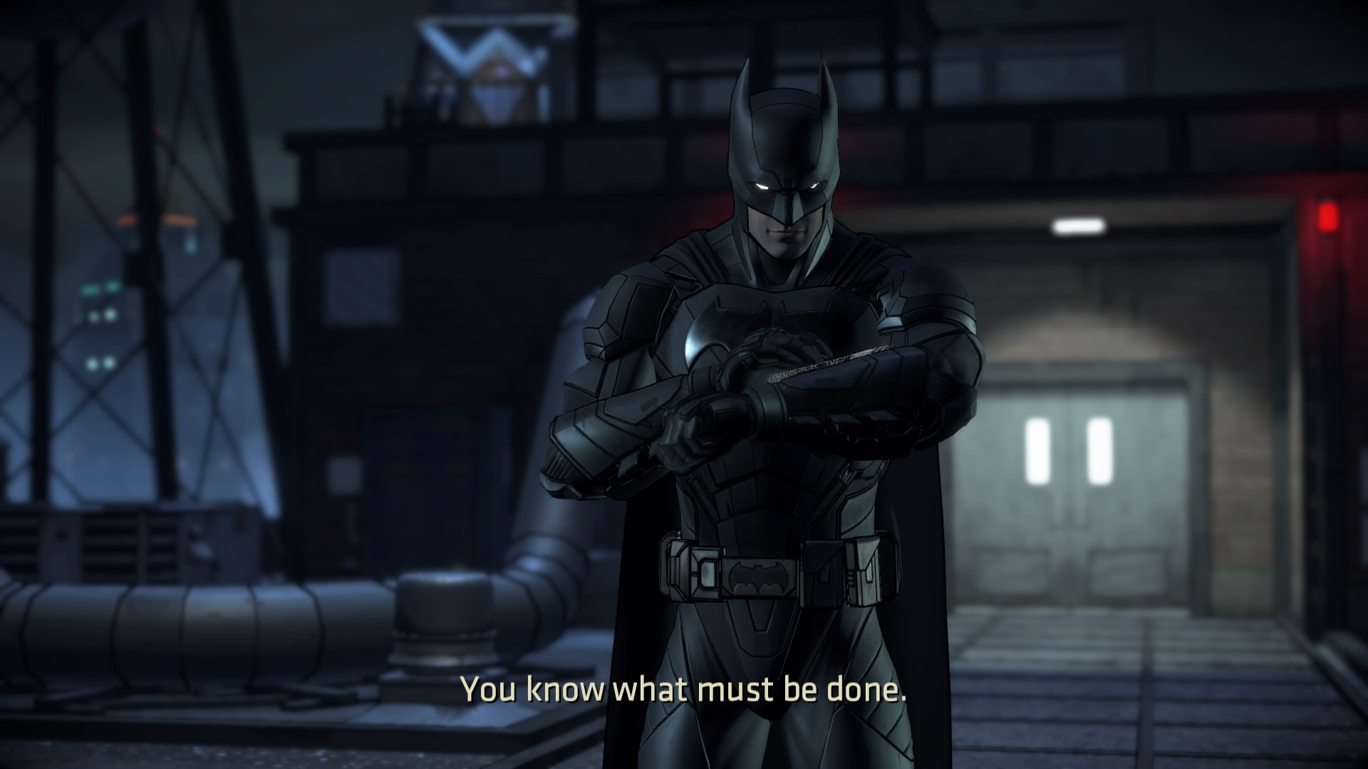 Co do rozgrywki i strony audiowizualnej, to właściwie nic się nie zmieniło – nadal mamy do czynienia z poziomem, jaki był przy poprzednich dwóch odcinkach. Gameplay to wciąż głównie rozmowy (bardzo ciekawe, co należy docenić) i zwiedzanie otoczenia rodem z gier przygodowych. Nie brakuje wybierania opcji dialogowych i kreowania swoich relacji z postaciami niezależnymi (co ma później wpływ na ich podejście do naszego bohatera). Co pewien czas mamy też do czynienia ze śledztwami i badaniem miejsca zbrodni. Nie da się jednak zaprzeczyć temu, że przedstawiana w Fractured Mask historia ma większy wpływ na Wayne’a niż na Batmana i skupia się na ludzkiej części Mrocznego Rycerza. Nie uznaję tego za wadę, bynajmniej. Nie mogę się jednak oprzeć wrażeniu, że pierwszy sezon i pierwszy odcinek obecnej serii były o wiele lepsze. Tu odczuwałem niekiedy znużenie tak poważną, nierzadko nawet sztampową historią.