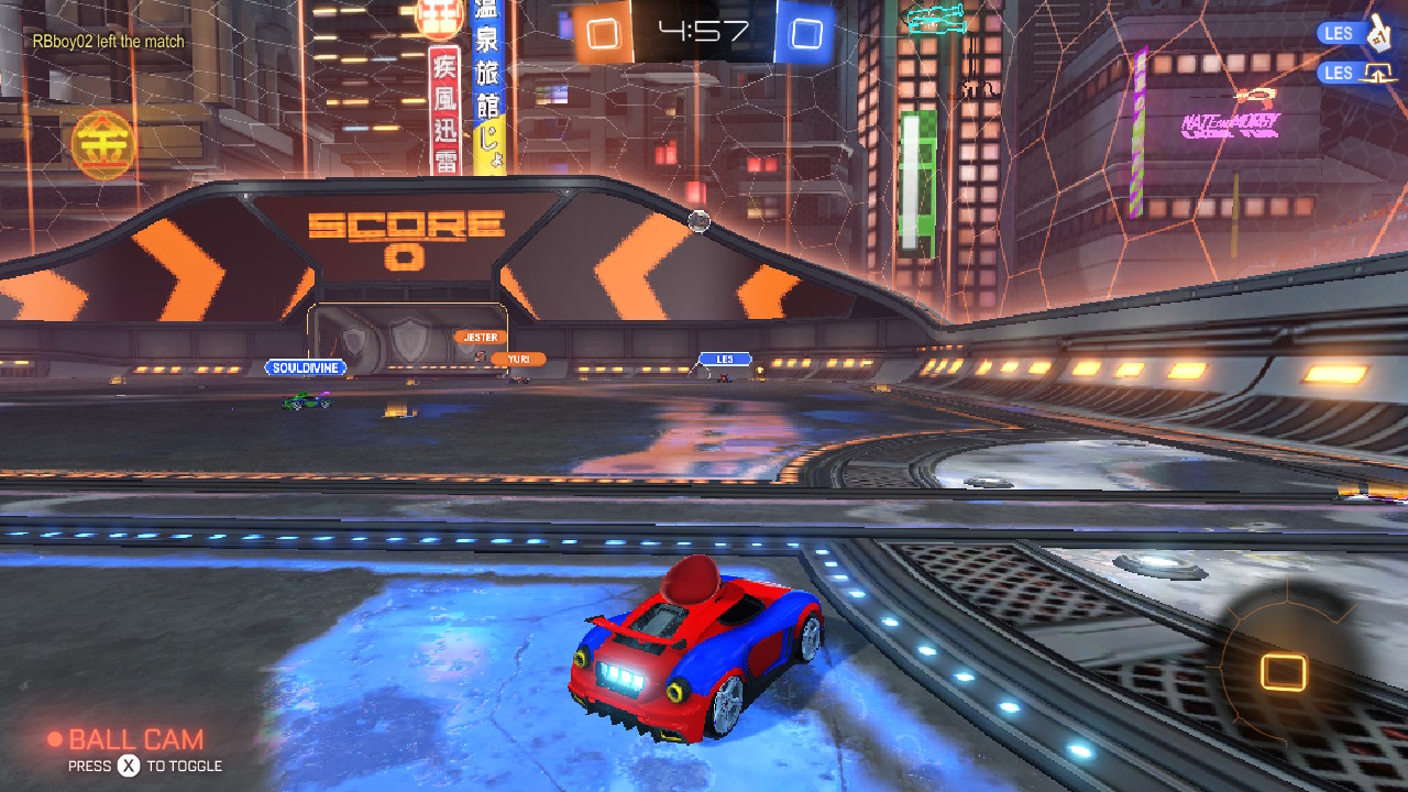 Przy okazji ogrywania tego tytułu nie mogłem sobie nie pozwolić na sprawdzenie trybu cross play. Twórcy Rocket League bowiem pozwalają na wspólną zabawę posiadaczom Nintendo Switch, Xbox One i PC. Oczywiście gra nie ma dostępu do naszych znajomych na innych platformach, ale możemy stworzyć pokój i wysłać namiary do znajomych, którzy dołączą do gry bez najmniejszego problemu, bez względu na to jaki sprzęt w domu posiadają (chyba, że mają PS4 – wtedy nici z tego bo Sony nie pozwala na tego typu praktykę). I to jest niesamowite. Tyle lat czekałem na moment, w którym będę mógł zagrać ze znajomym bez zastanawiania się czy ma odpowiedni sprzęt. Jest to coś niepowtarzalnego i chciałbym żyć w świecie, w którym każda gra coś takiego oferuje. Kto wie, może za parę lat?