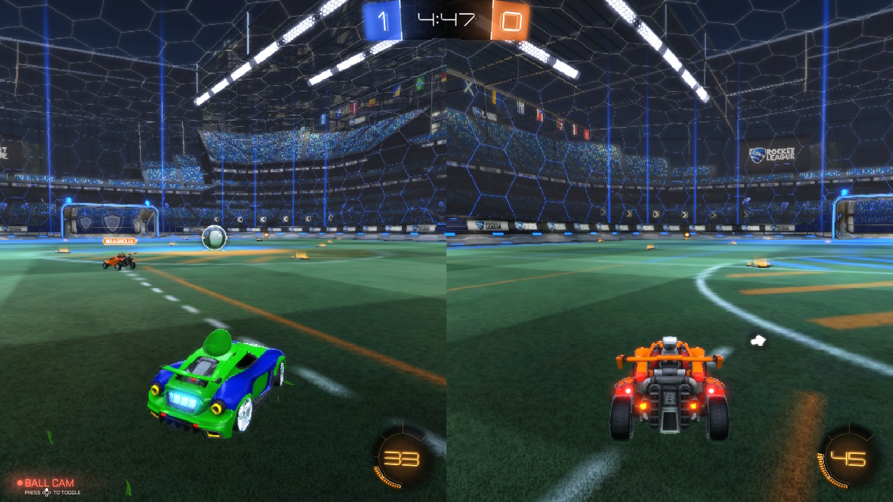 Gra oferuje lokalny tryb split screen i można w niego grać gdziekolwiek. Na screenach poniżej zobaczycie, że gra na tym trochę traci w aspekcie graficznym, ale uwierzcie mi – siedząc obok siebie i grając na małym ekranie w ogóle tego nie odczujecie.