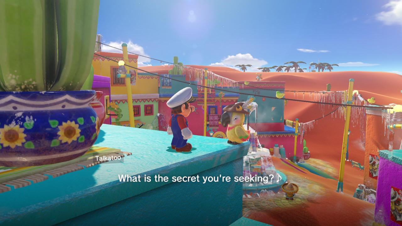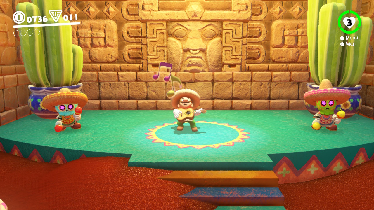 Bawić się możemy nie tylko samodzielnie, ale i ze znajomym. Przy czym multiplayer jest tutaj ewidentnie inspirowany sagą Galaxy, a nie rozwiązaniami z New Super Mario Bros. czy Super Mario 3D world. Drugi gracz nie wciela się tutaj bowiem w Luigiego czy inną postać, ale w samego Cappy’iego. Może w ten sposób poruszać się nim po mapie i pomagać zbierać przedmioty. Przypomina to właśnie serię Galaxy, gdzie drugi gracz mógł strzelać gwiazdkami i pełnił rolę wspomagającą. To dla niektórych może być wada, tym bardziej jeśli w takim Mario 3D World spędziliście sporo czasu. Ale z drugiej strony nowe odsłony Mario, szczególnie te w 3D niekoniecznie dobrze spisują się z multiplayerem. Chyba lepiej, że twórcy skupili się na dostarczeniu świetnej zawartości dla jednego gracza i nie wpychali tu na siłę rozgrywki wieloosobowej do plansz, które do takiego typu zabawy nie zostały przystosowane.