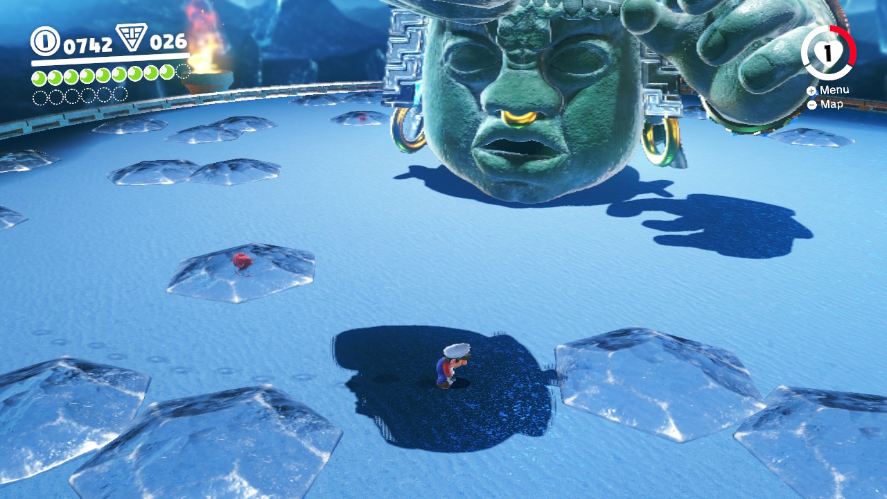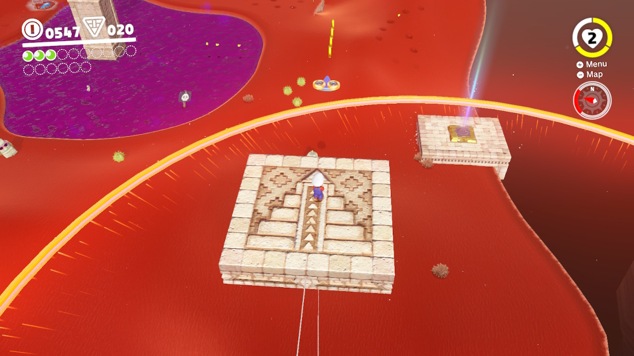 Do poszczególnych krain przelatujemy naszym statkiem, który zasilany jest energią z księżyców. Te porozsiewane są po każdym etapie. Aby pchnąć fabułę dalej i odwiedzić kolejny świat musimy zebrać określoną ilość, potrzebną do dalszego lotu. Oczywiście w każdym przypadku jest to tylko część dostępnych księżyców. Tych czeka nas w sumie ponad 800, więc jest tu całkiem sporo rzeczy do zwiedzania. Księżyce spotkać można dosłownie wszędzie, część jest nagrodą za wypełnienie misji, inne leżą gdzieś ukryta, część można wygrać w różnych konkursach i minigrach. Różnorodność jest całkiem spora i znajdą się takie księżyce, które znajdziecie przypadkiem dosłownie wpadając na nie, inne wymagać będą ruszenia szarymi komórkami, a jeszcze inne przetestują naszą zręczność. Księżyców jest mnóstwo i są na tyle zróżnicowanie poukrywane, że jeden drugiemu nie równy. Chodzi o to, że część wpadnie nam bez żadnego wysiłku, a część jednak może nam zająć chwilę.