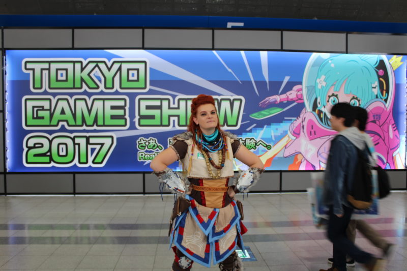 Zależało mi jednak na TGS ze względu na chęć zestawienia mojego cosplayu z cosplayem japońskim. No i doznałam szoku. Wiem, że Japonia to kult spódniczek szkolnych, Final Fantasy i idolek wszelkiej maści, ale nie spodziewałam się, że ichnie stroje są znacznie gorszej jakości niż te europejskie czy amerykańskie. Nawet te gotowe, które można kupić w sklepach! Niestety nie widać tego na pierwszy rzut oka, trzeba podejść do cosplayera/stroju bliżej. Co ciekawe, bardzo mało osób chciało mieć ze mną zdjęcie. Najpierw wynikało to z tego…że nie ustawiłam się w jednym miejscu. Na TGS cosplayer po prostu stoi i ustawia się do niego kolejna fotografów. A mi było głupio tak stanąć i czekać. Przywykłam do bycia wyłapywaną z tłumu (tą formę preferowali też inni turyści spoza Japonii, odwiedzający TGS). Jednak nawet po decyzji o tym, aby na chwile przystanąć nie miałam takiego brania, jak pozostałe lolitki i inne kawaii postacie. Czemu? Bo Aloy nie jest kawaii.