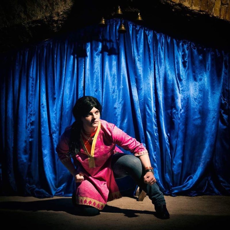 Postanowiłam uszyć strój Chloe Frazer, w którym można było ją zobaczyć w zapowiedzi pokazanej podczas PlayStation Experience w grudniu 2016. Mowa o hinduskiej kurcie (o tym, jak się ten ciuch nazywa, wiem dzięki koleżance z Indii), która była przeogromnym wyzwaniem. Po pierwsze: nie miałam zdjęć referencyjnych tylko ciemny filmik (dla kontrastu – Guerrilla Games wypuściła pdf dla cosplayerów), po drugie: tkanina na kurtę wymagała własnoręcznego zaprojektowania wzoru i oddania projektu do druku w firmie specjalizującej się w drukowaniu tkanin (pierwszy wypust się nie udał, wzór był praktycznie niewidoczny na tkaninie), po trzecie: musiałam założyć perukę, a ja z perukami nie mam żadnego doświadczenia, po czwarte: musiałam znaleźć hak do wspinaczki, który się…rozkłada a także własnoręcznie zrobić kaburę, bo koszt druku tkaniny – w tym tej nieudanej – tak mnie przygniotły, że nie chciałam wydawać więcej pieniędzy niż to naprawdę konieczne. Jakimś cudem udało się stworzyć kompletny strój i…PlayStation zaprosiło mnie na imprezę przedpremierową Uncharted: The Lost Legacy w Warszawie!