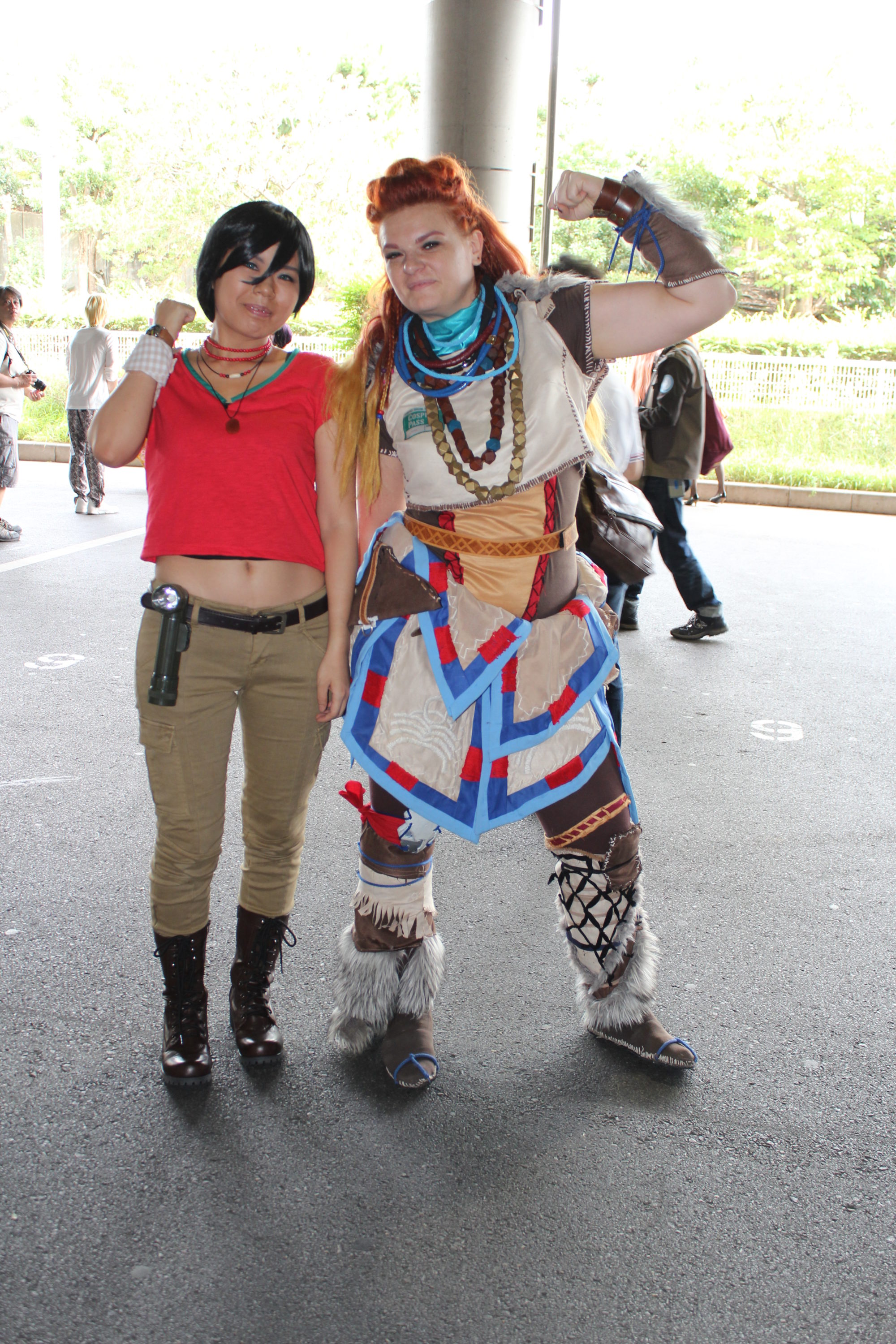Zależało mi jednak na TGS ze względu na chęć zestawienia mojego cosplayu z cosplayem japońskim. No i doznałam szoku. Wiem, że Japonia to kult spódniczek szkolnych, Final Fantasy i idolek wszelkiej maści, ale nie spodziewałam się, że ichnie stroje są znacznie gorszej jakości niż te europejskie czy amerykańskie. Nawet te gotowe, które można kupić w sklepach! Niestety nie widać tego na pierwszy rzut oka, trzeba podejść do cosplayera/stroju bliżej. Co ciekawe, bardzo mało osób chciało mieć ze mną zdjęcie. Najpierw wynikało to z tego…że nie ustawiłam się w jednym miejscu. Na TGS cosplayer po prostu stoi i ustawia się do niego kolejna fotografów. A mi było głupio tak stanąć i czekać. Przywykłam do bycia wyłapywaną z tłumu (tą formę preferowali też inni turyści spoza Japonii, odwiedzający TGS). Jednak nawet po decyzji o tym, aby na chwile przystanąć nie miałam takiego brania, jak pozostałe lolitki i inne kawaii postacie. Czemu? Bo Aloy nie jest kawaii.