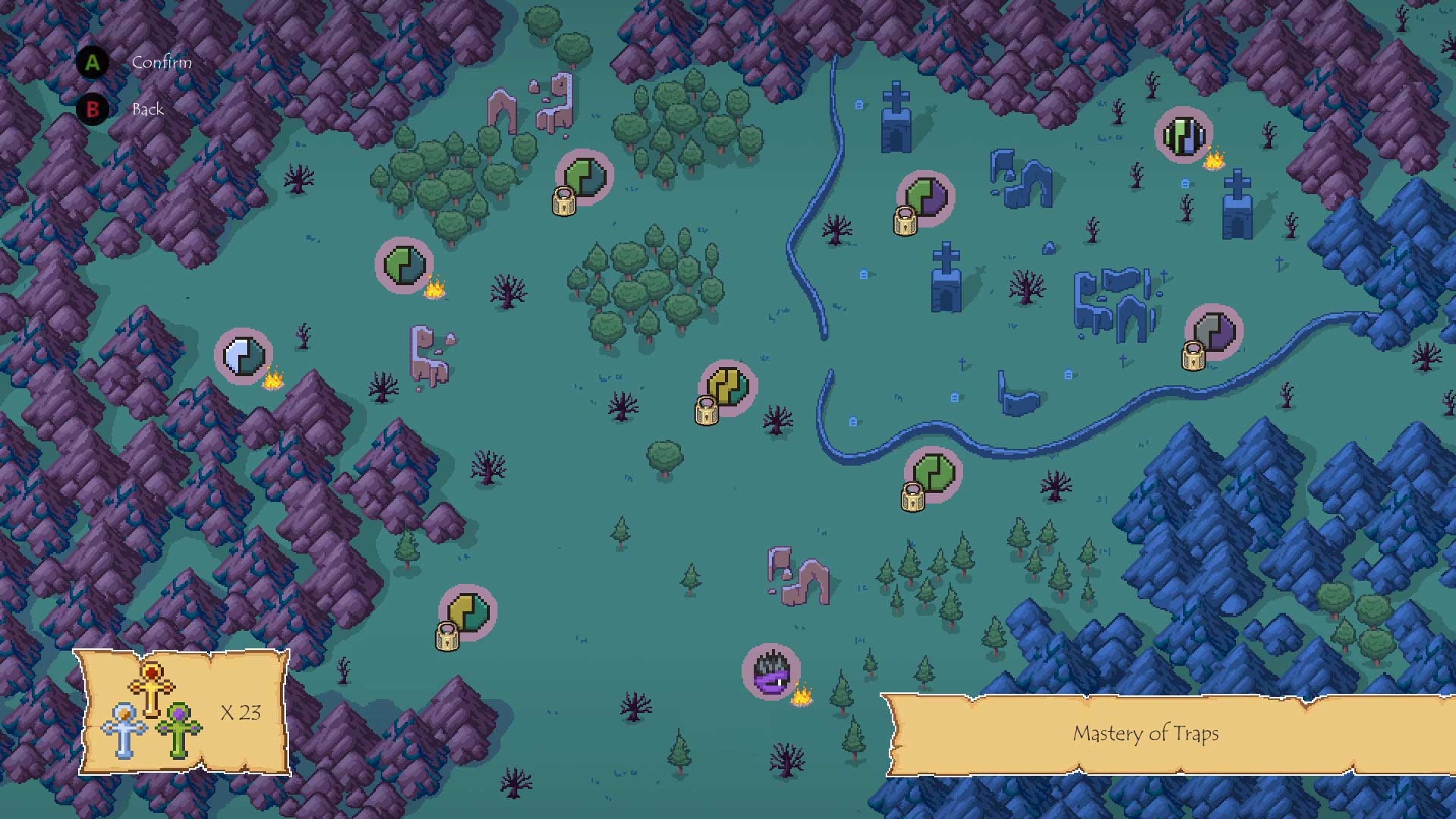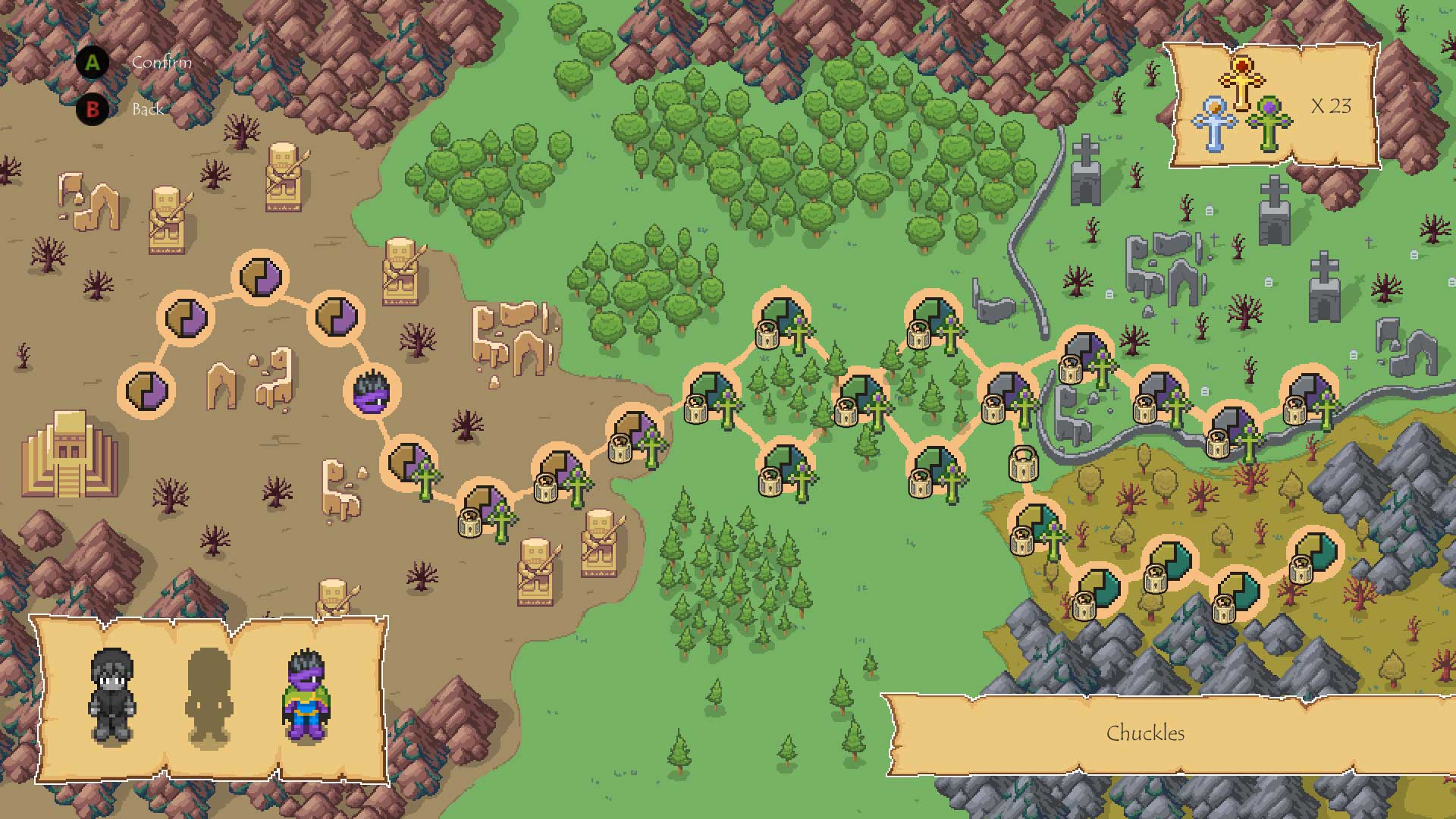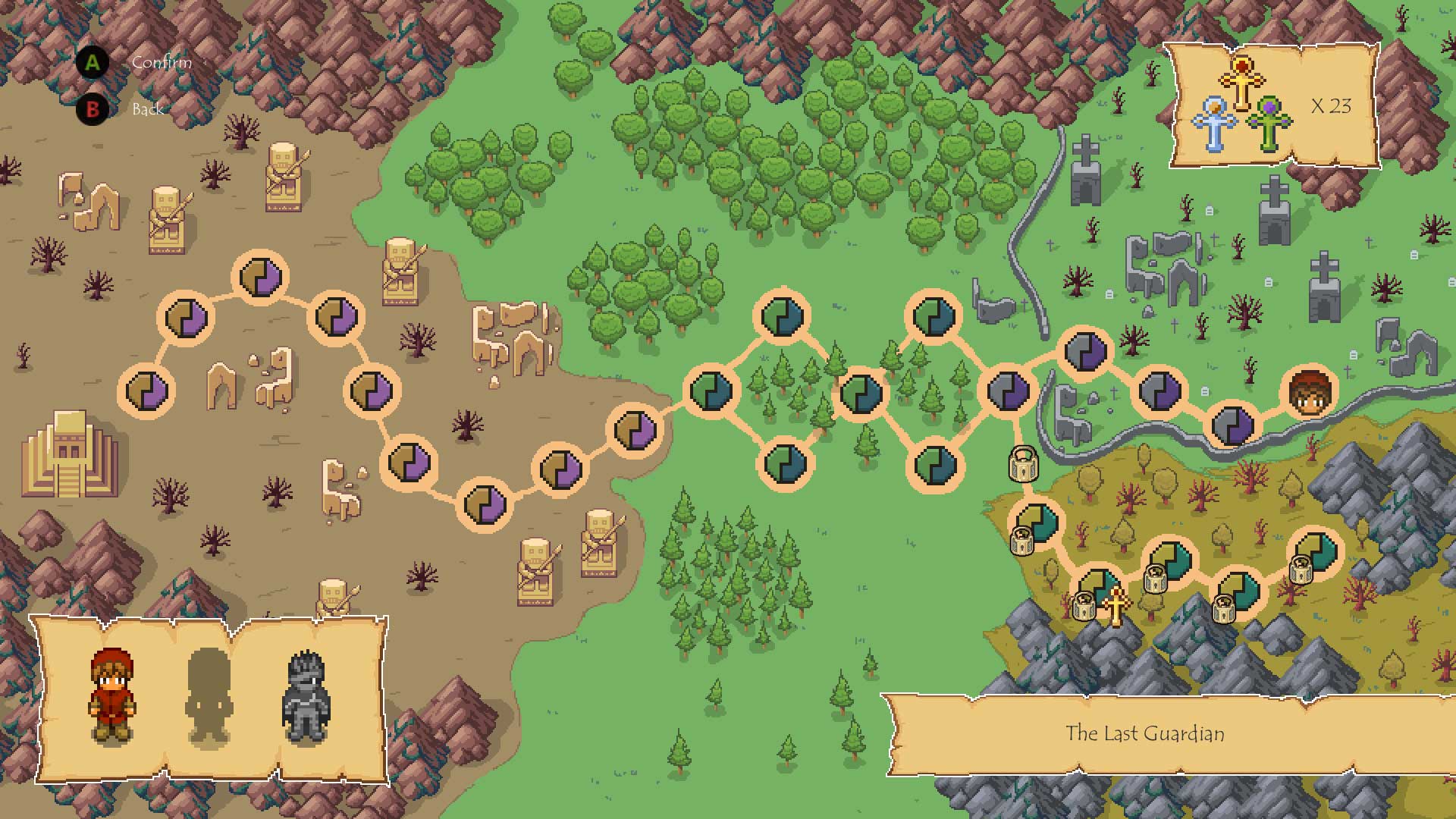 “Zadanie” jest proste. Żeby ukończyć planszę trzeba dotrzeć na przeciwną krawędź ekranu. Po drodze czekać na nas będą strzelające groszkiem roślinki, po drugiej stronie ręce wystawiane przez zombie. Będzie płonąca podłoga, pochodnie, kolce przebijające się przez buty (i nogi, i postać), studnie bez dna, magiczne kwadraty, które zabiją nas po wejściu, jeśli się świecą i do tego różnej maści stworki. Jest też kamienny totem, który rusza się wraz z postaciami, ale w jedynie lustrzanym odbiciu.