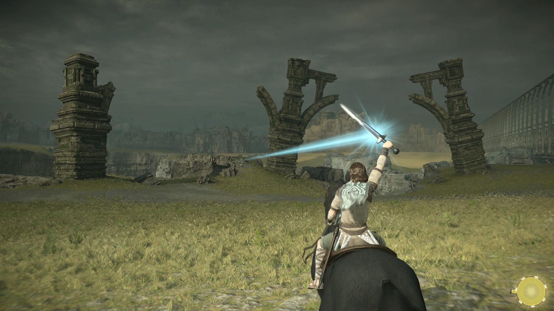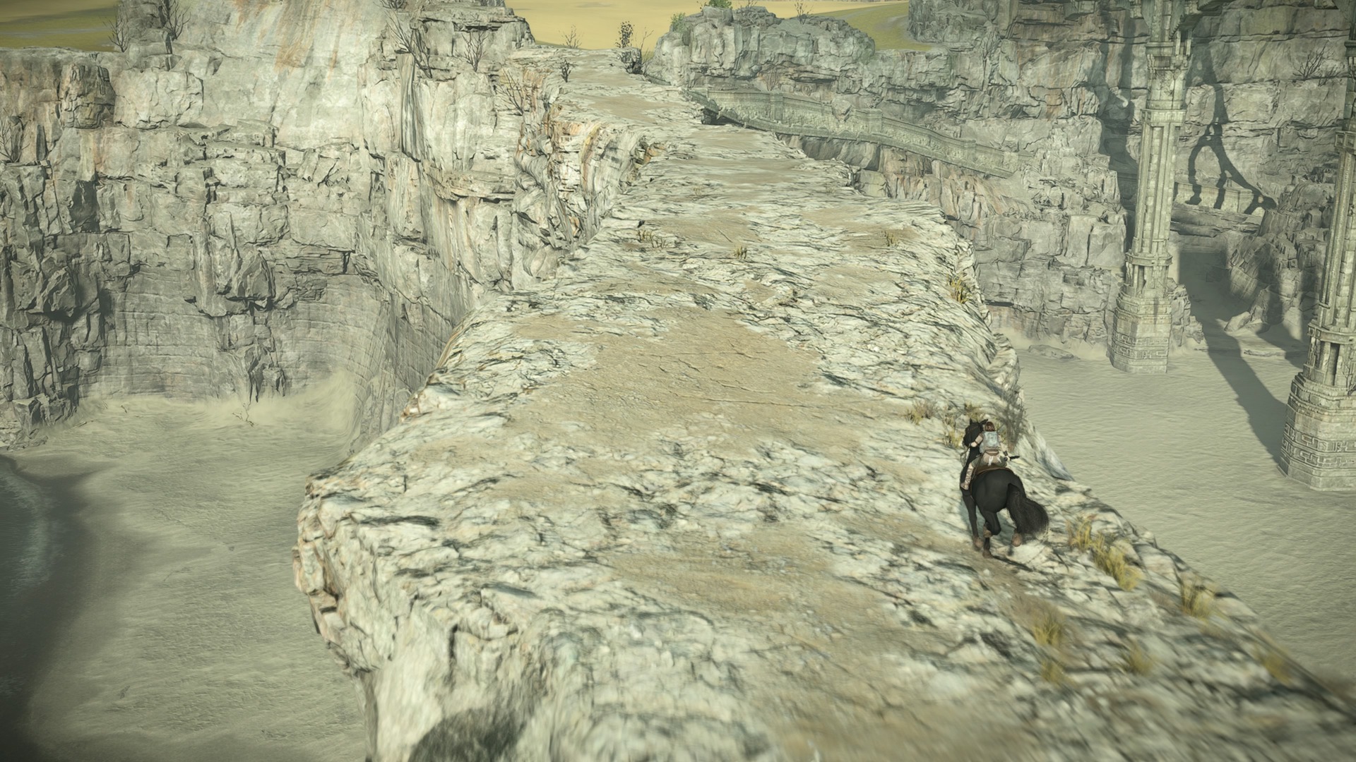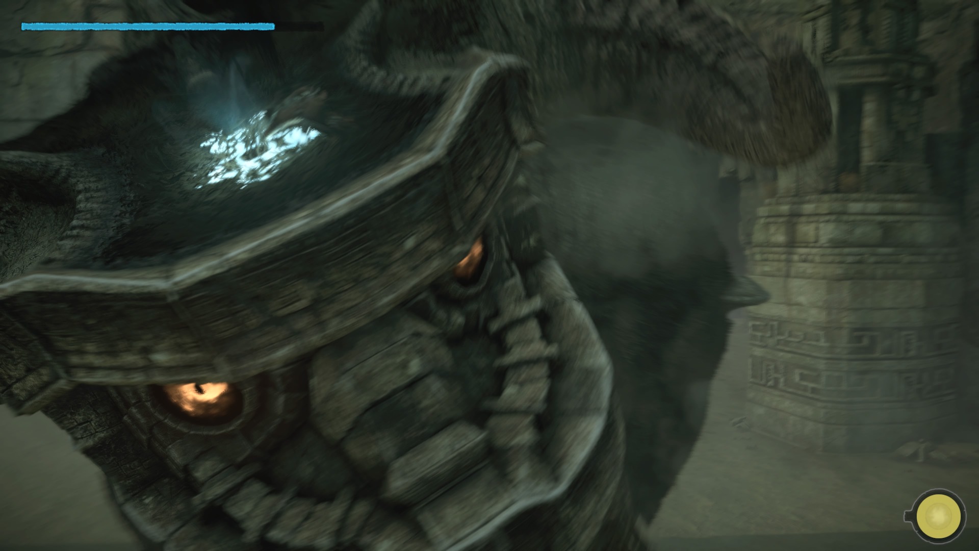 Nie ma drugiego takie uczucia niż to gdy stajesz oko w oko z pierwszym Kolosem. Chociaż jako gracze przyzwyczajeni jesteśmy do walki z bossami, którzy są od nas więksi, tak nie ma drugiej takiej gry jak Shadow of the Colossus. Wielki stwór przewyższa nas wielokrotnie, jakby chciał mógłby nas po prostu zgnieść. Aby powalić bestię musimy najpierw wpaść na pomysł jak na nią w ogóle wejść. Musimy zaobserwować jej ruchy, sposób chodzenia. Jak już znajdziemy dogodne wejście na grzbiet stwora rozpocznie się poszukiwanie czułych punktów na jego ciele. Te świecą się na niebiesko, ale tylko jeśli się do nich zbliżymy. Oznacza to, że Kolos nie świeci się z daleka i nie ma na ciele wielkiej strzałki “bij tutaj by mnie zabić”.